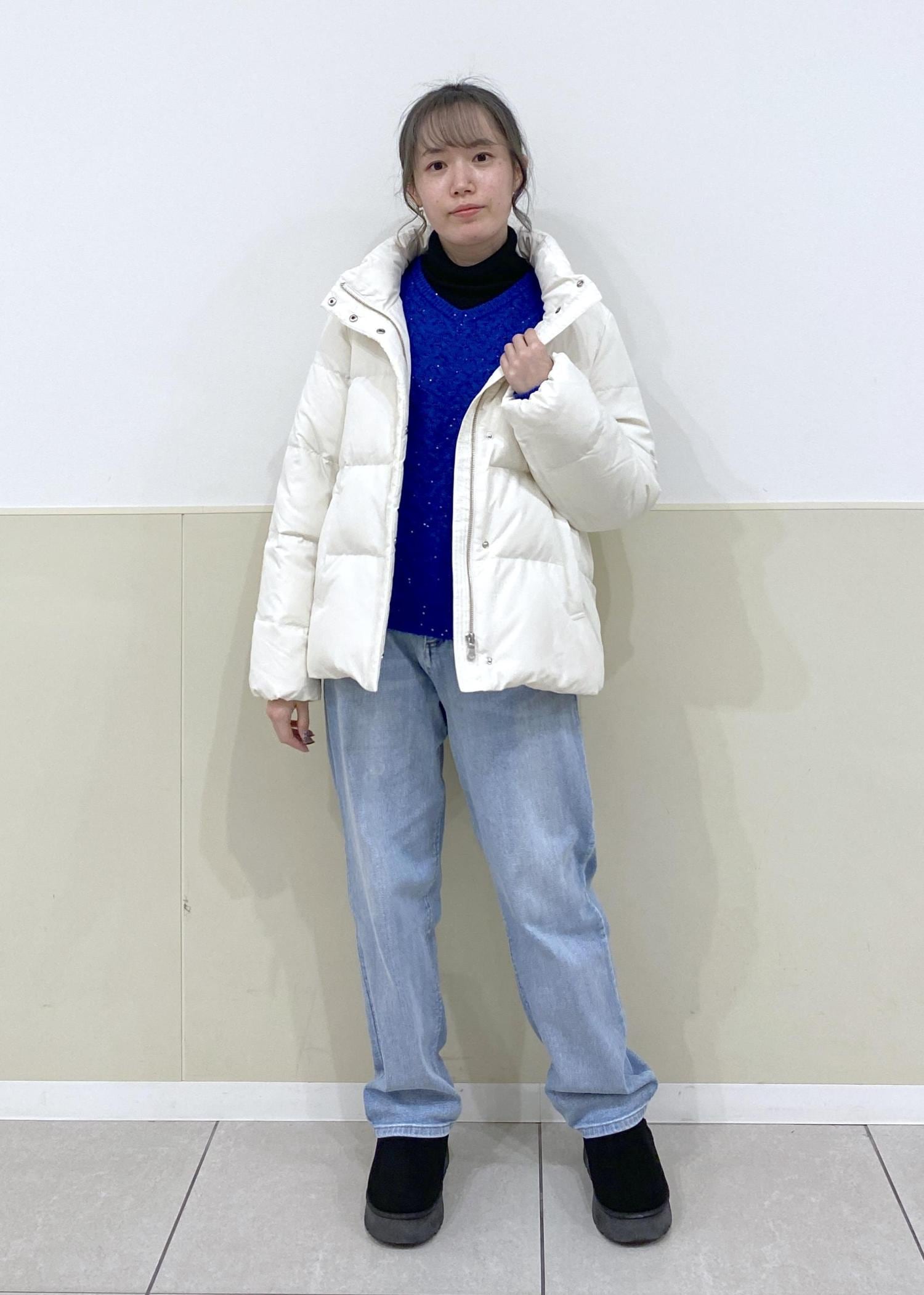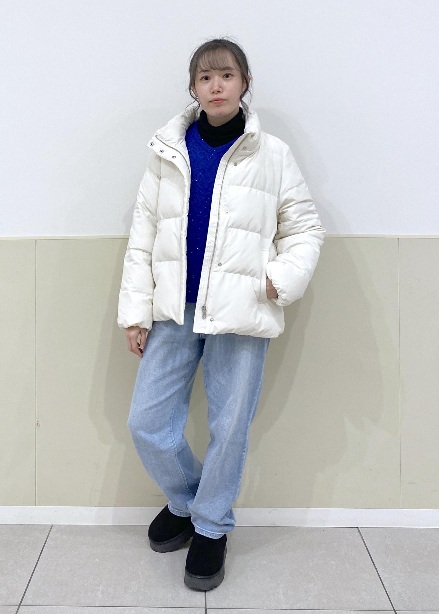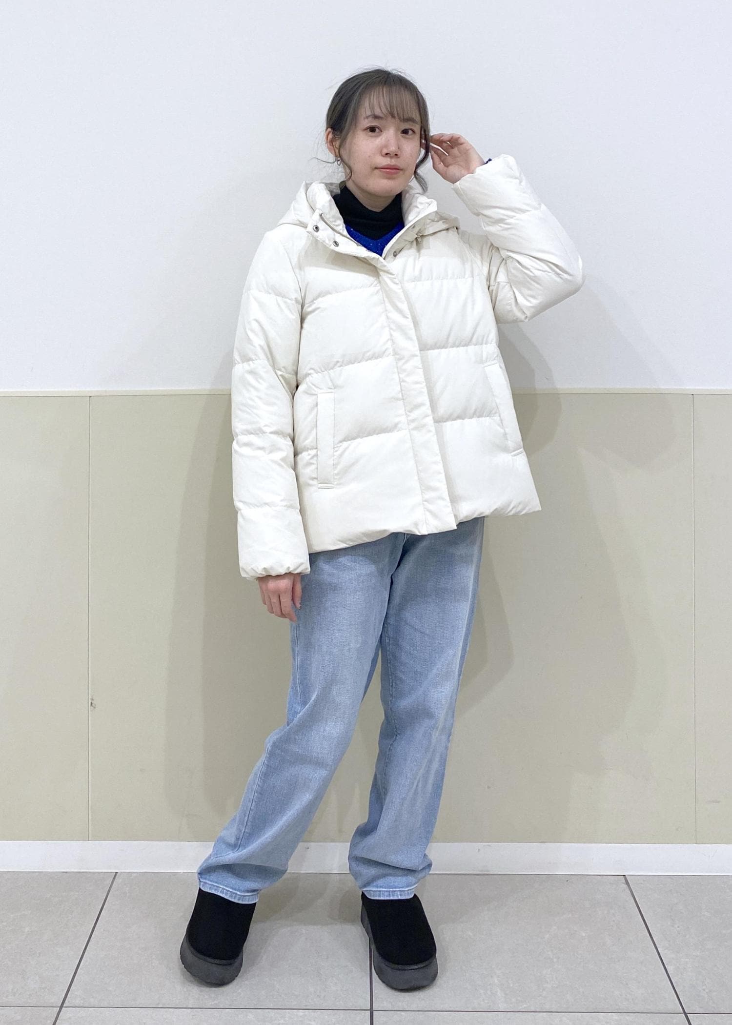 ダウンコートのようにボリュームのあるアウターを着るときは、ヘアスタイルをまとめ髪にするとすっきりとした印象になります♪