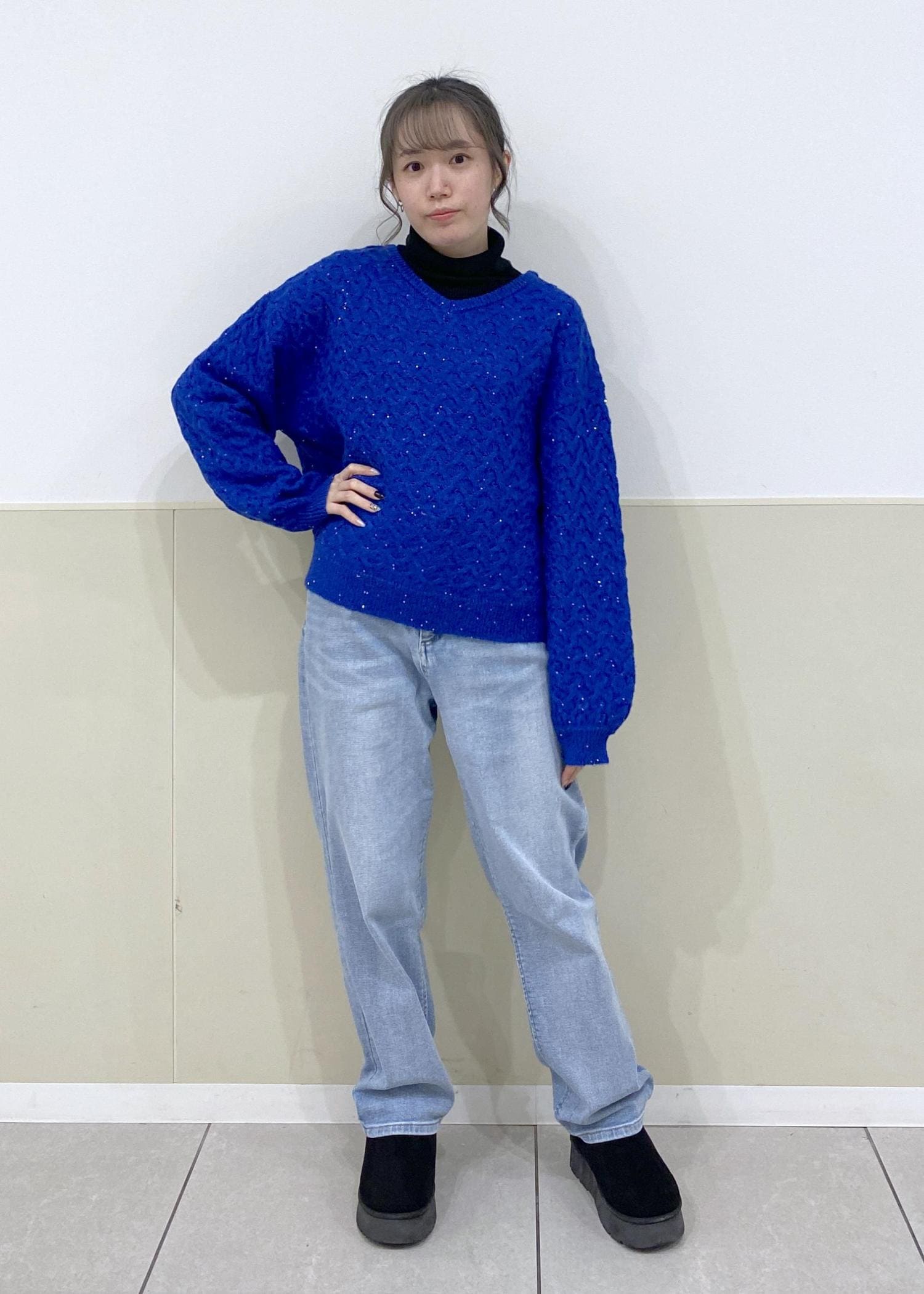 ROPÉ PICNICミニフラワースパンコールニットブルー / F¥5,995レビュー花型のスパンコールがキラキラ輝く存在感のあるデザイン。コーディネートの主役にぴったりです。