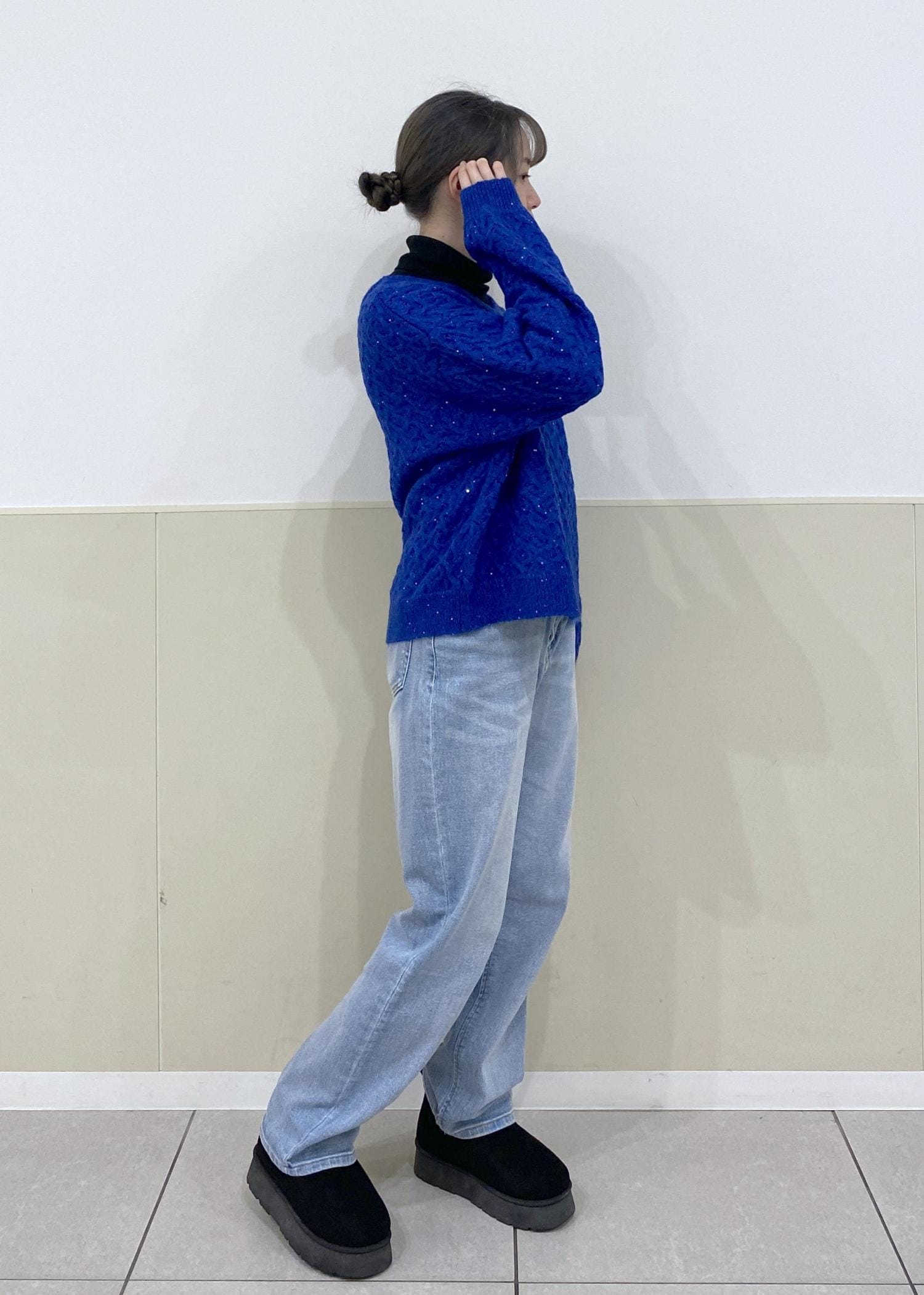 ニットの存在感があるのでその他のアイテムはシンプルにまとめました。