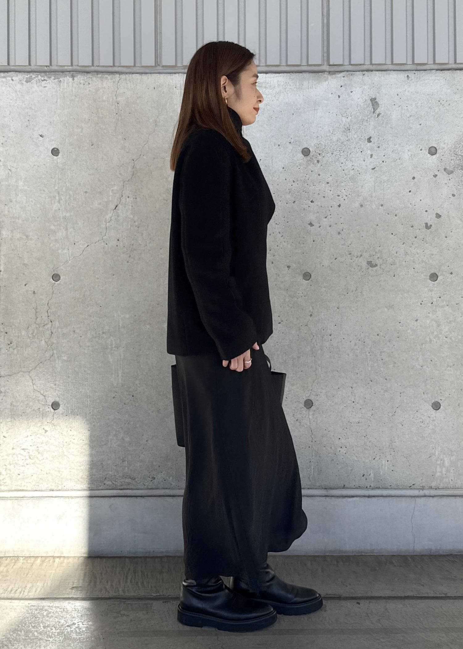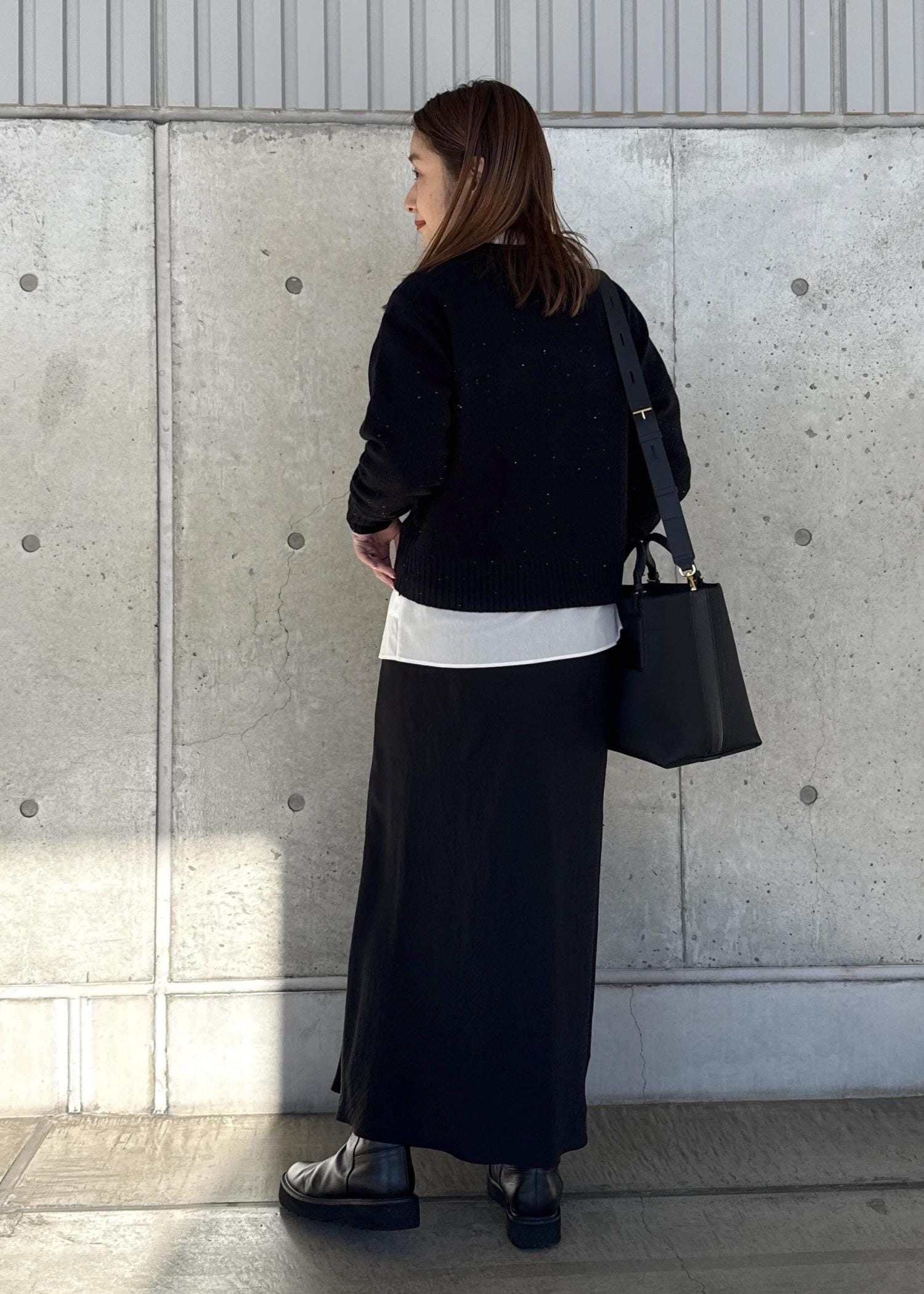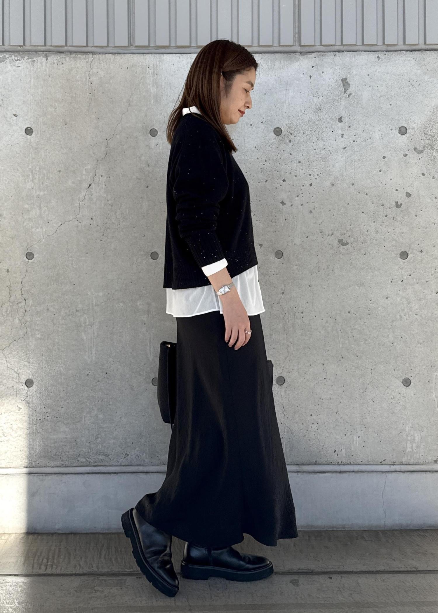 程よいマーメイドラインで、細めのウエストゴムなので着心地よくストレスフリーでお召しいただけます◎