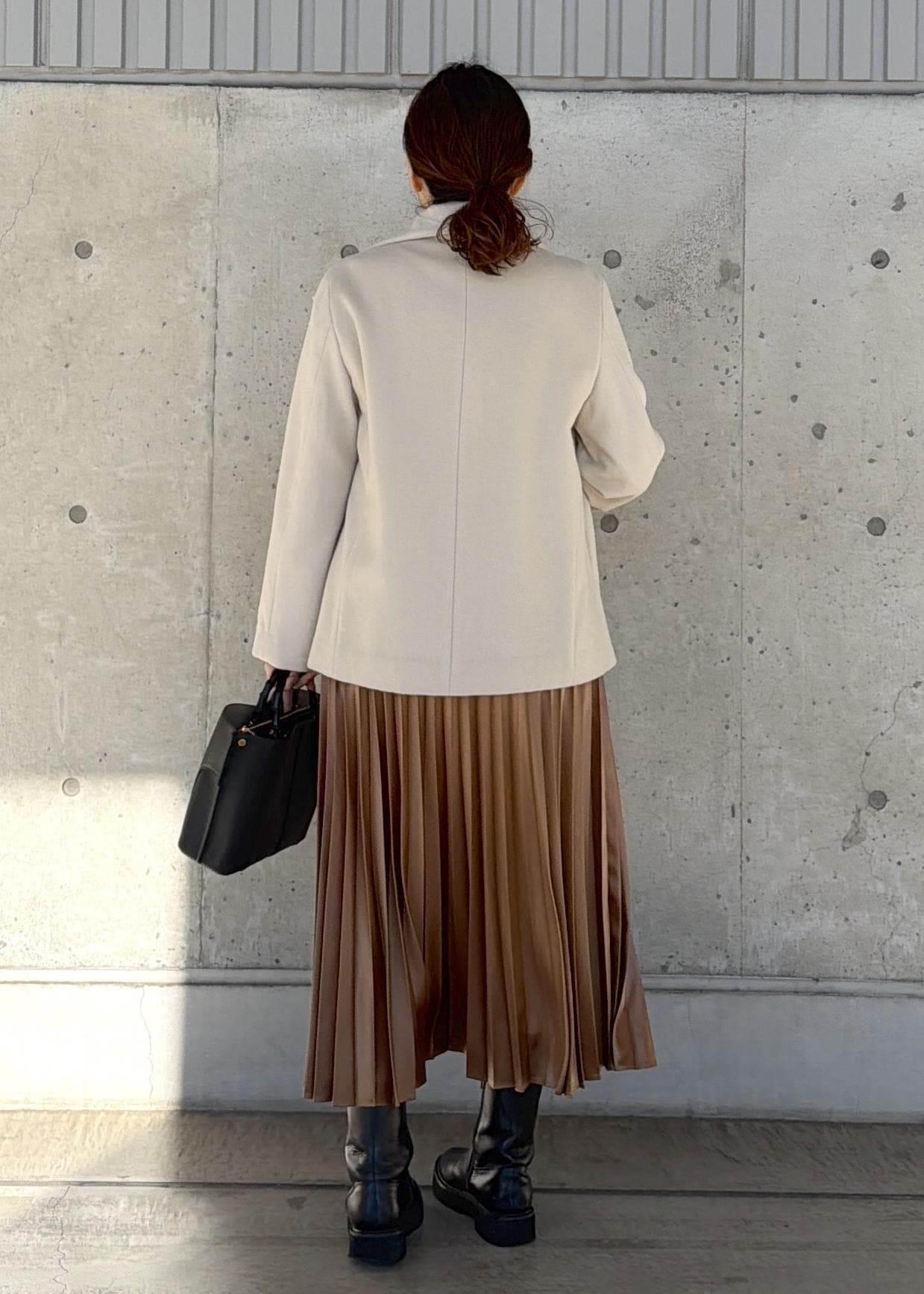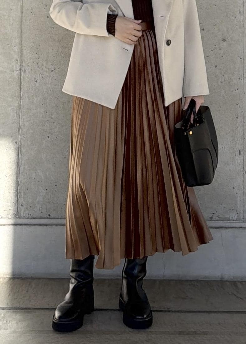 ROPÉシャイニープリーツスカート/イージーケアキャメル / F¥26,400レビュー身長161㎝で普段38サイズを着用。