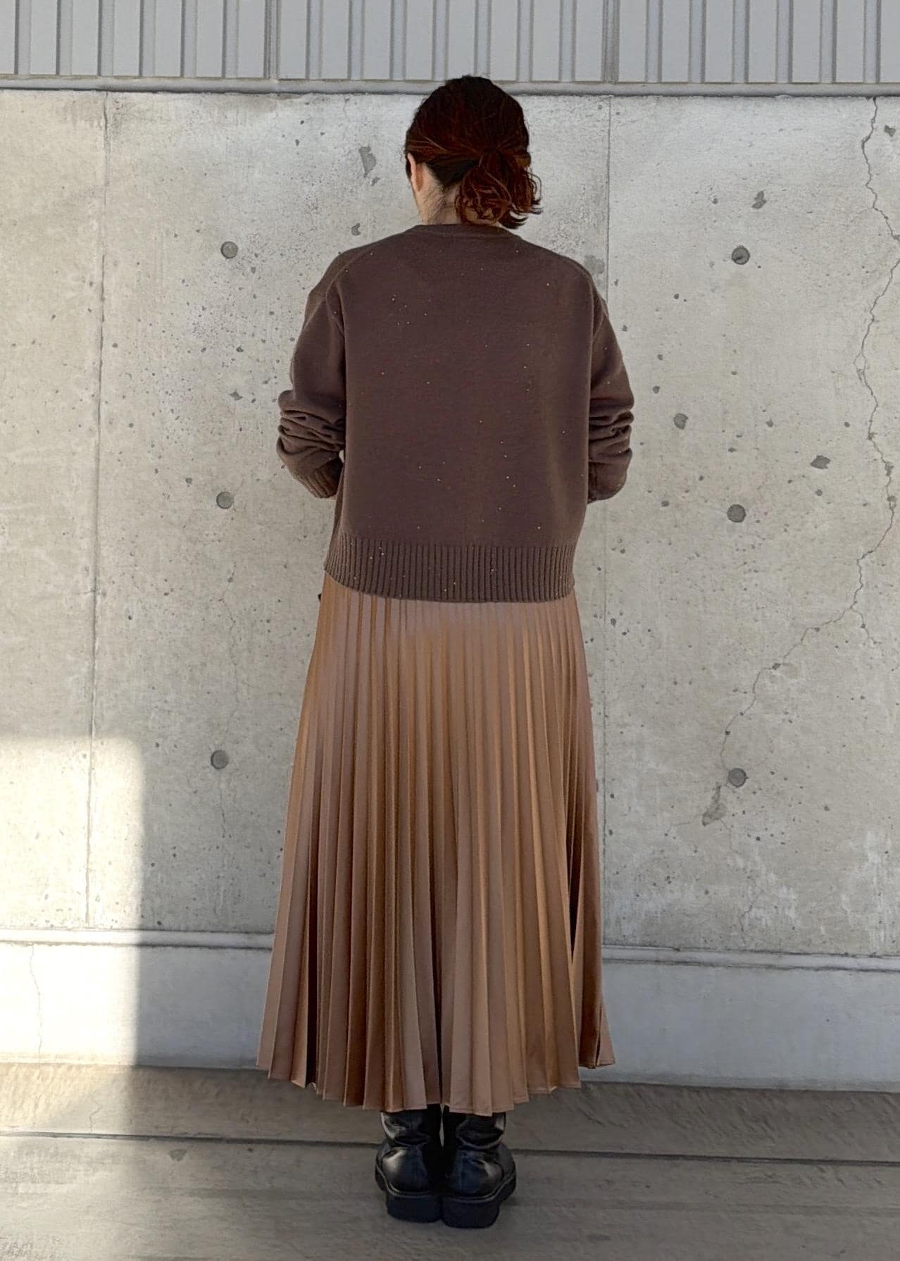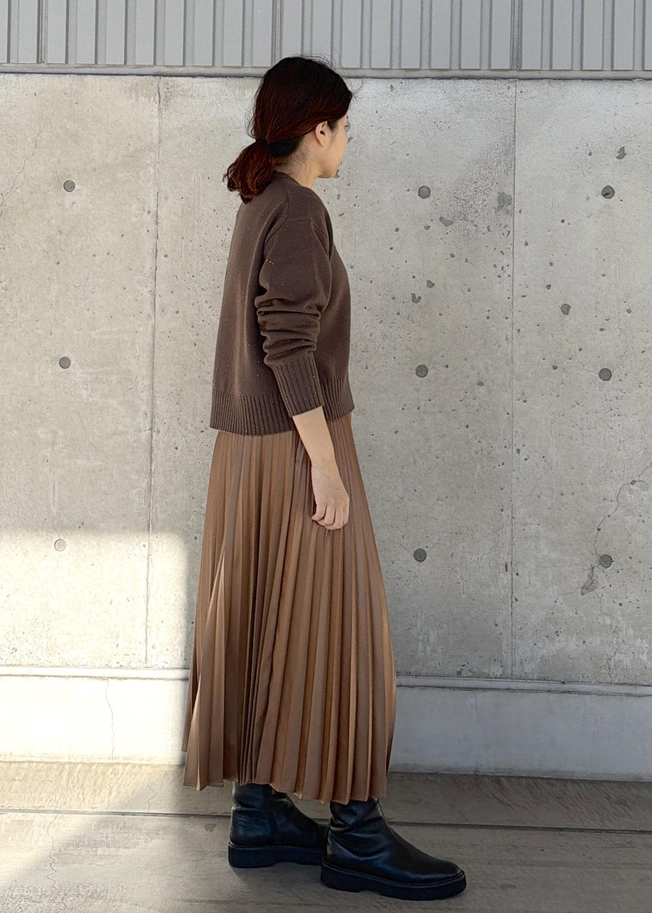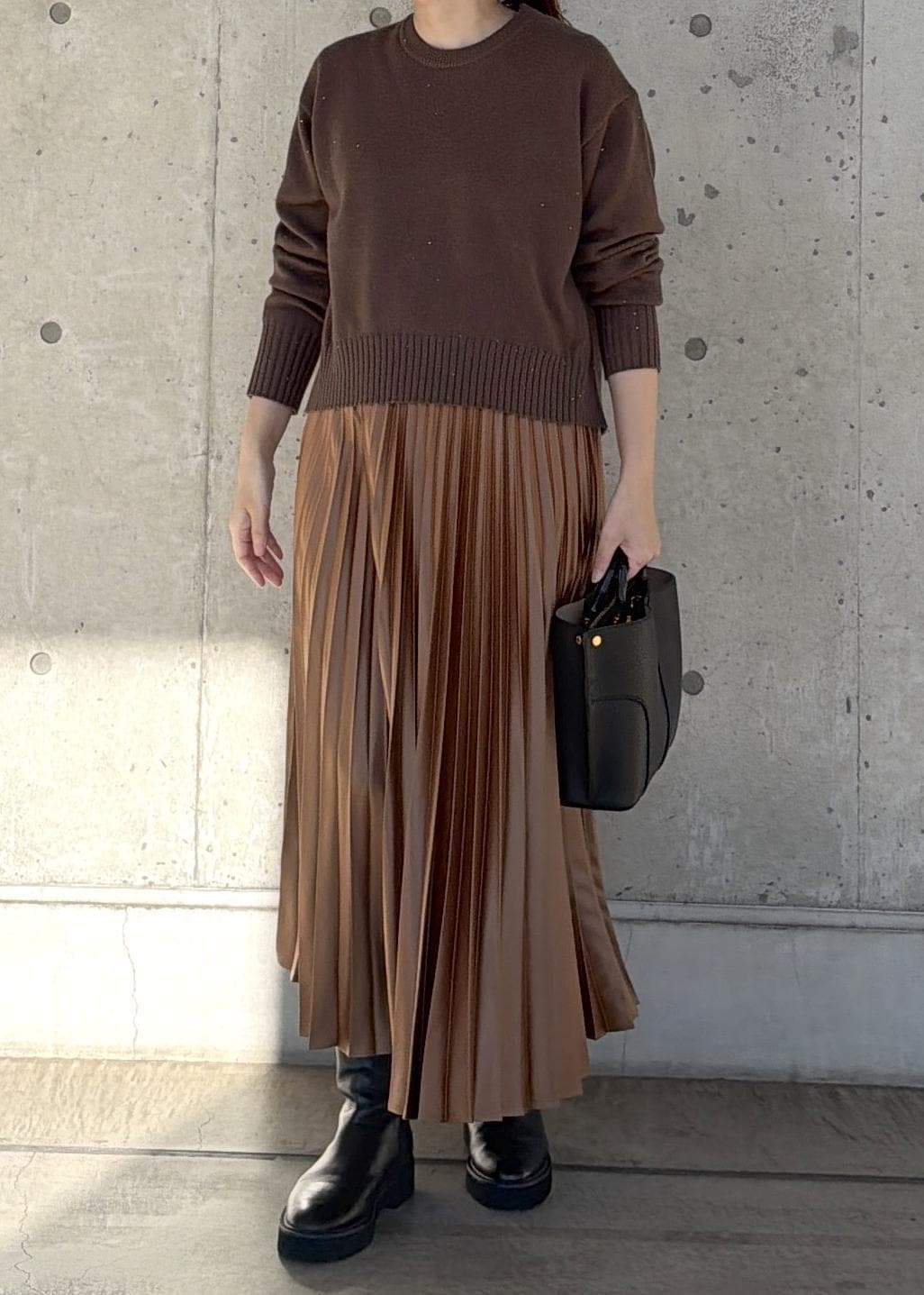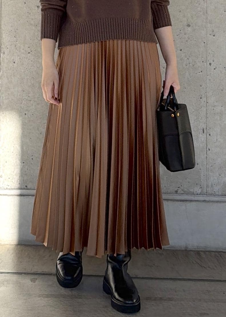ROPÉシャイニープリーツスカート/イージーケアキャメル / F¥26,400レビュー身長161㎝で普段38サイズを着用。