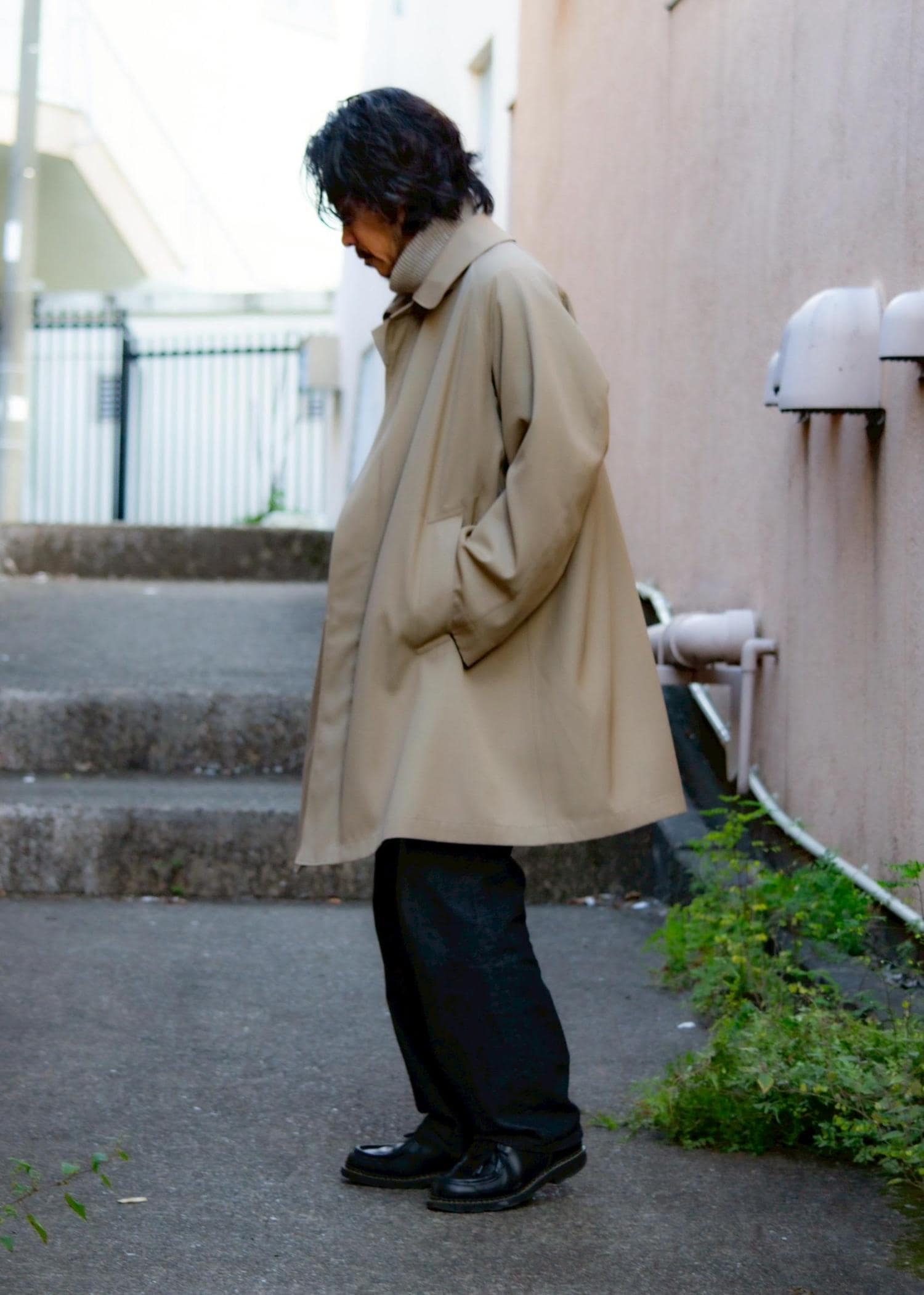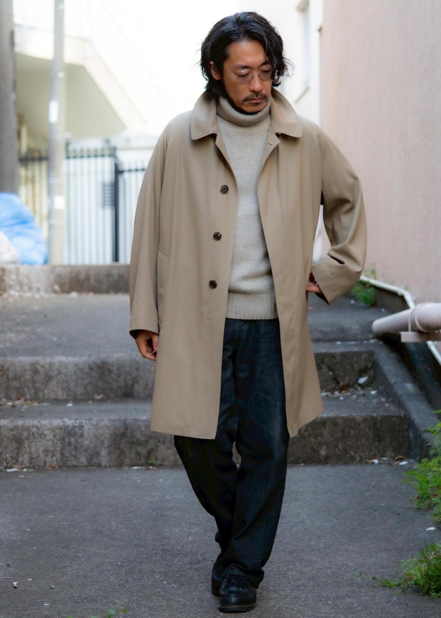 HEUGNのステンカラーコート"アルバート"を用いたスタイリングです。