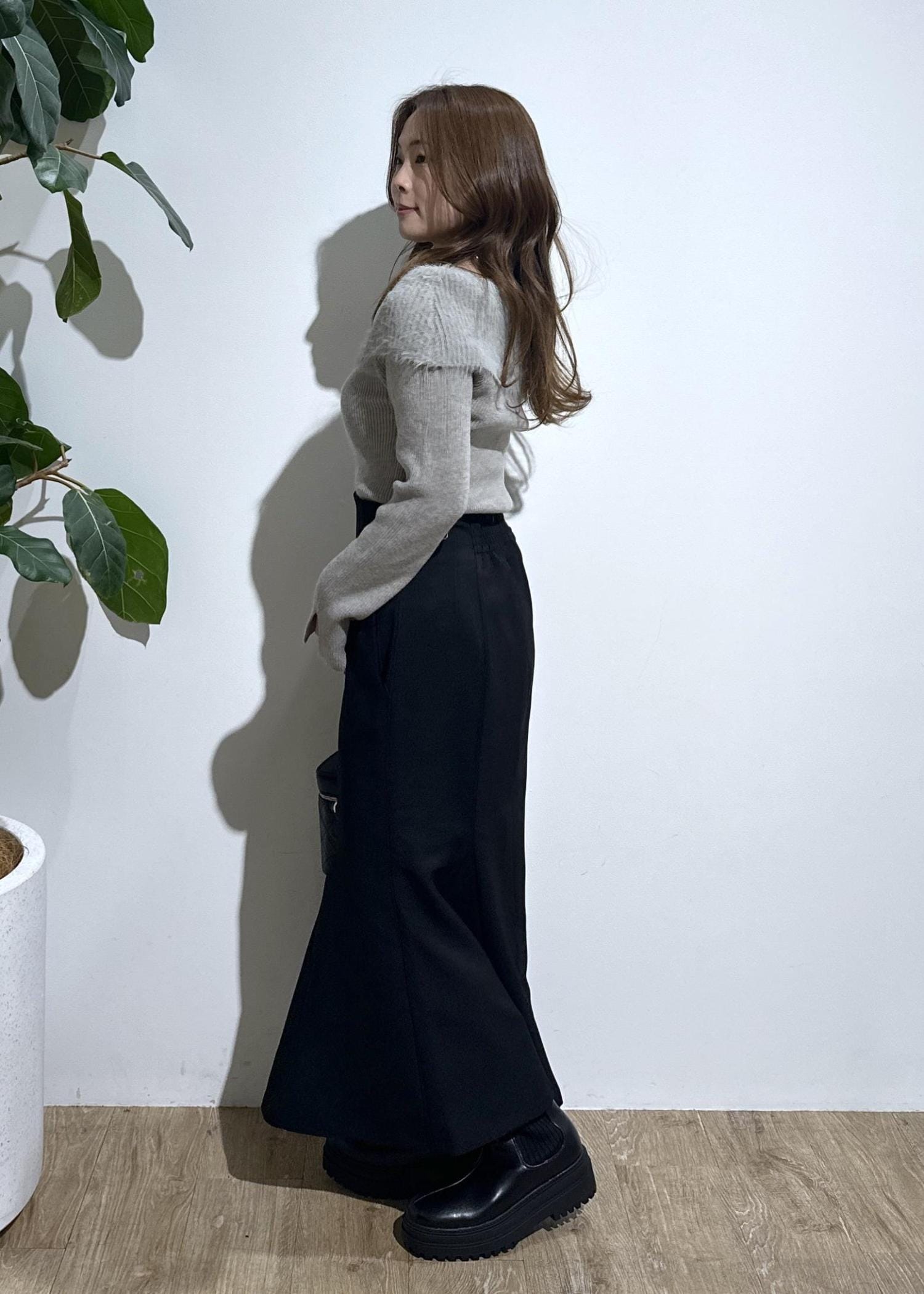 暖かみのある生地感で、マーメイド具合も動いた時にフレア感が可愛いです。 -