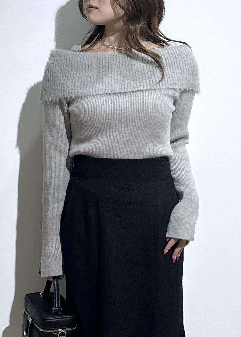 NEW!VISフェザーヤーンオフショルもちもちリブニット/イージーケアライトグレー / F¥5,929レビュー肌の露出が少ないオフショル風のトップスで、デコルテラインを綺麗に見せてくれます。