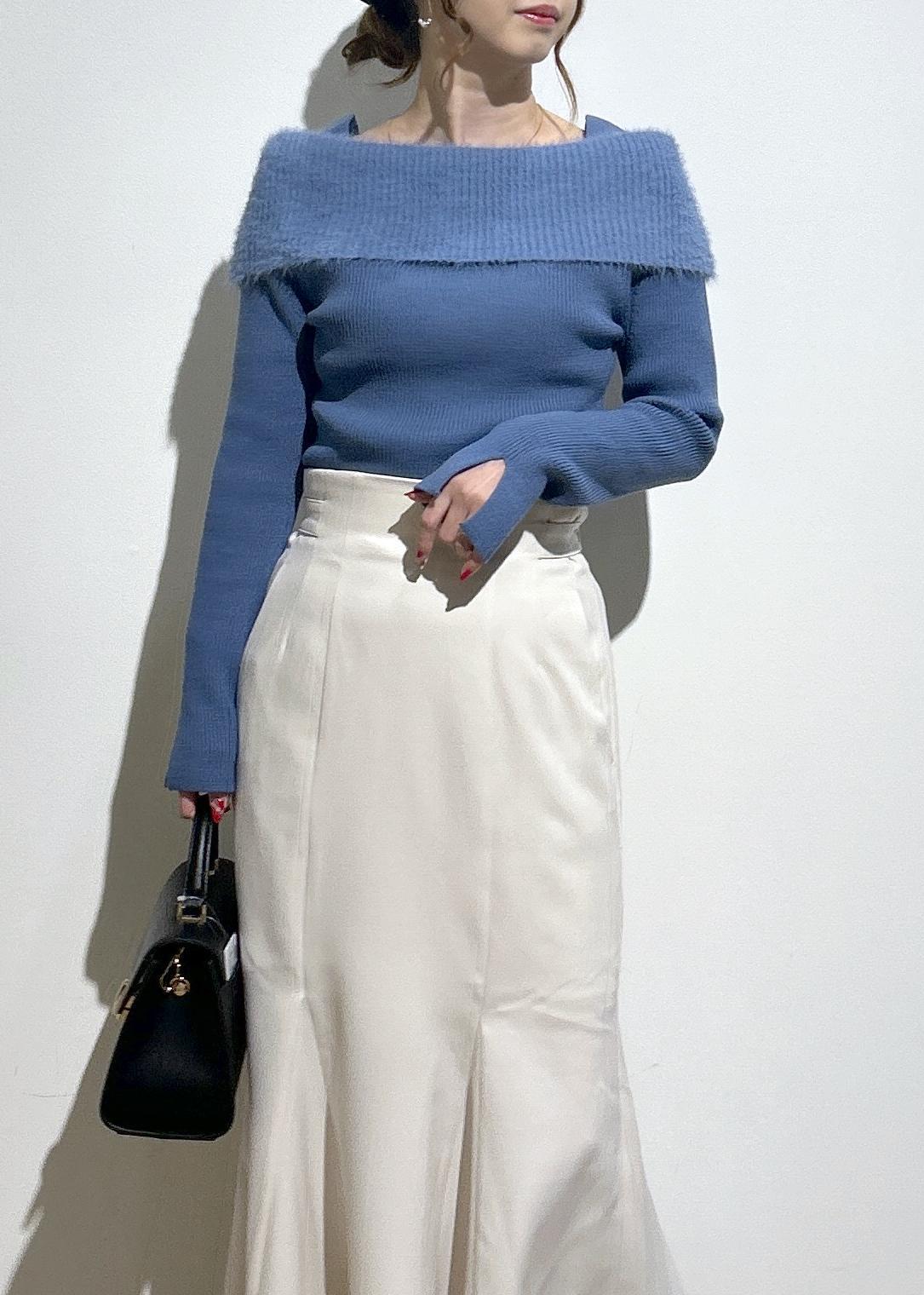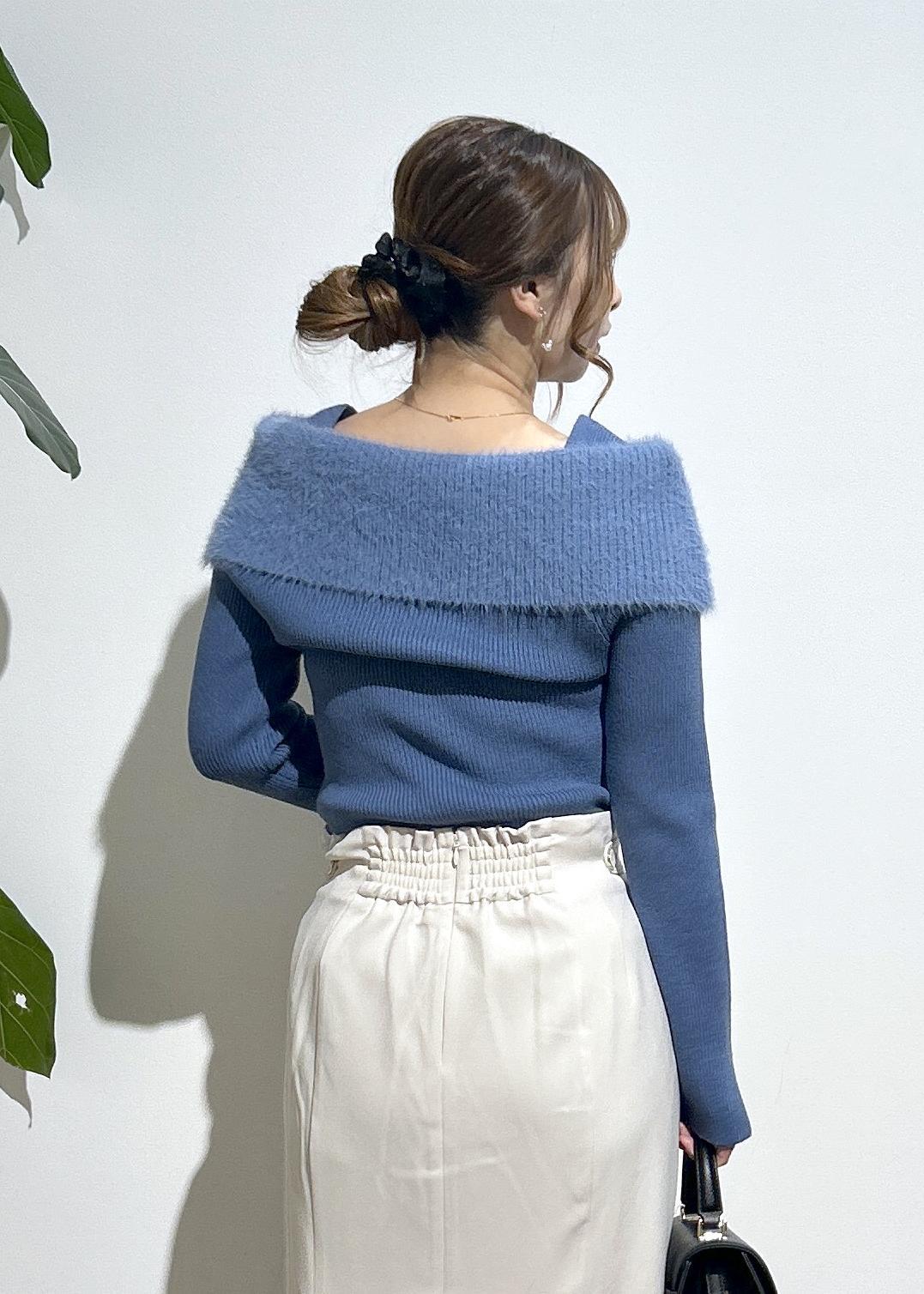 NEW!VISフェザーヤーンオフショルもちもちリブニット/イージーケアブルー系 / F¥5,929レビューフェミニンな印象のフェザーヤーン♡