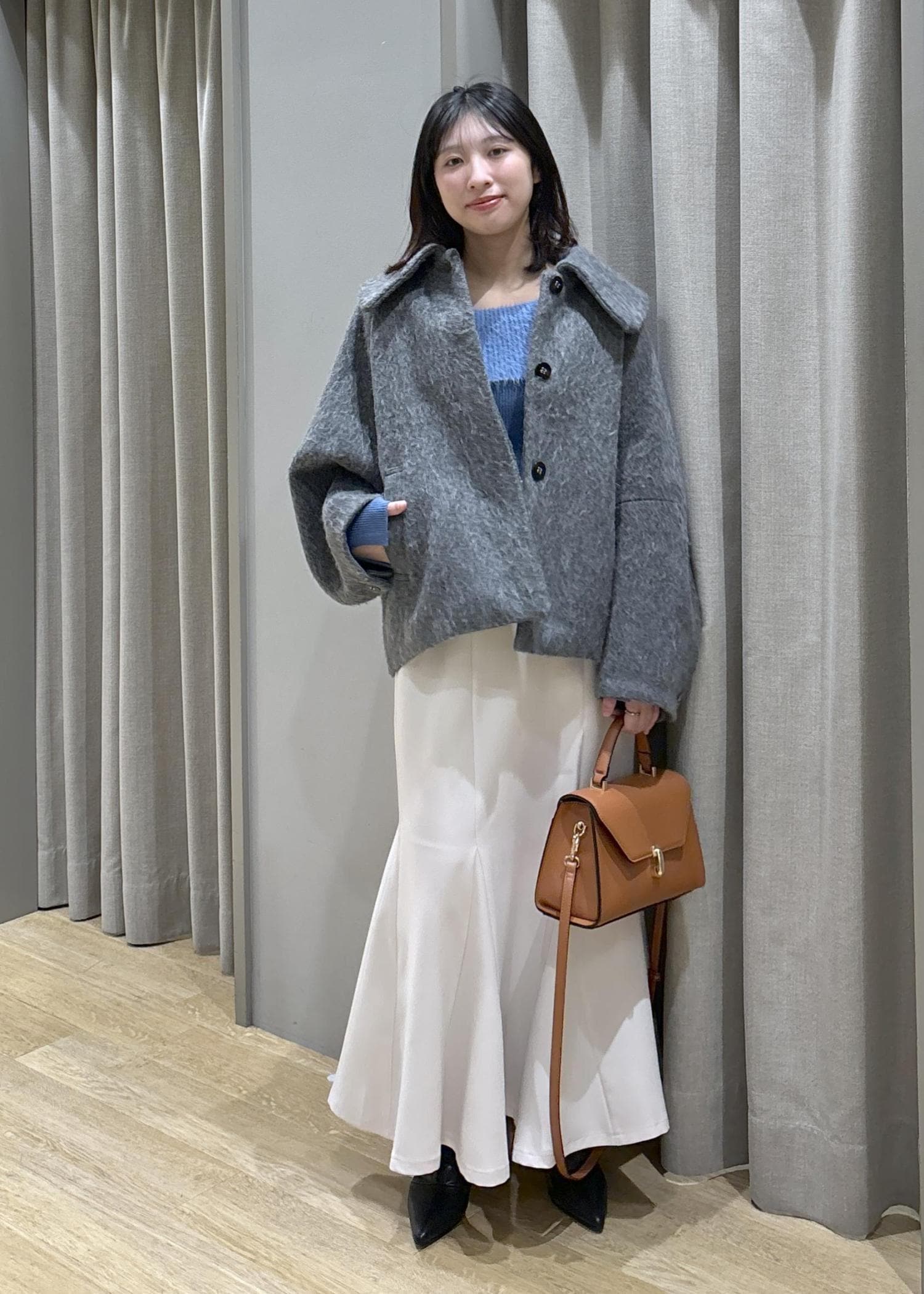 予約VIS【アウター総選挙1位】ビッグカラーモモンガシャギーショートコートグレー / M¥10,989レビュー身長158cm、Mサイズ着用。