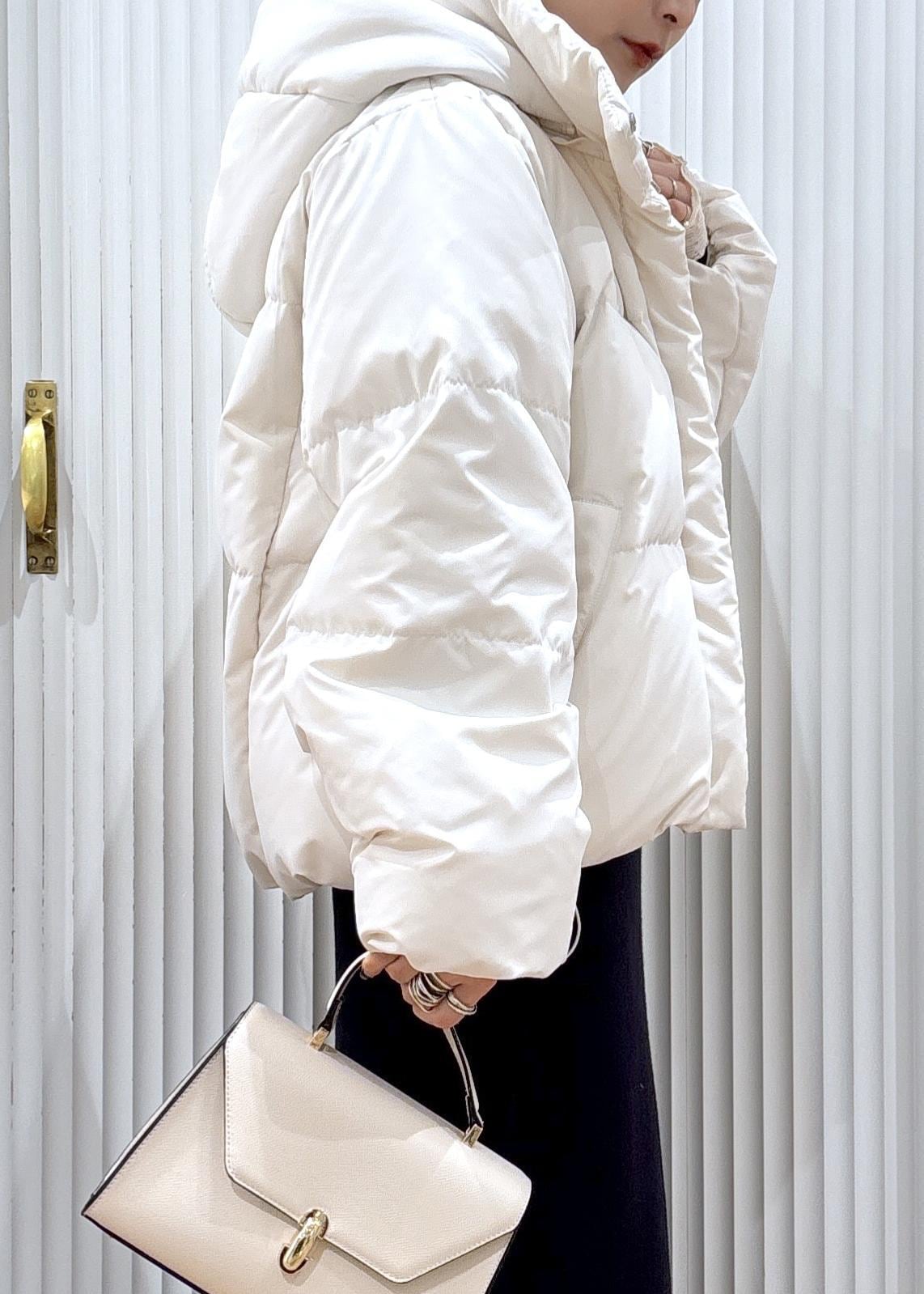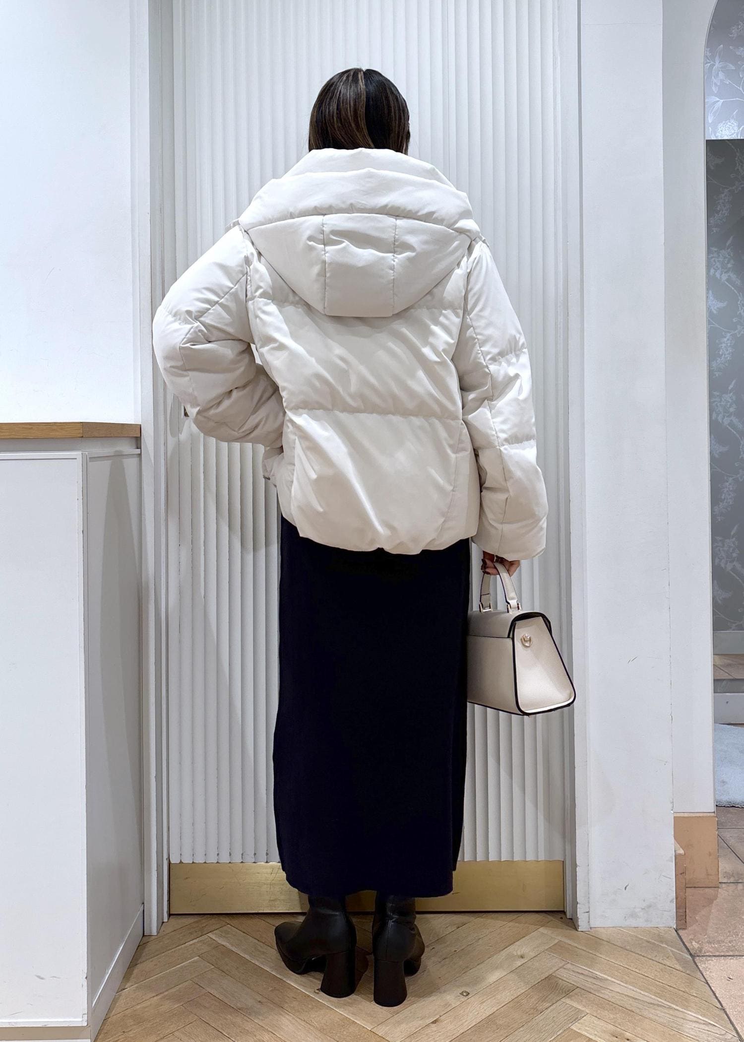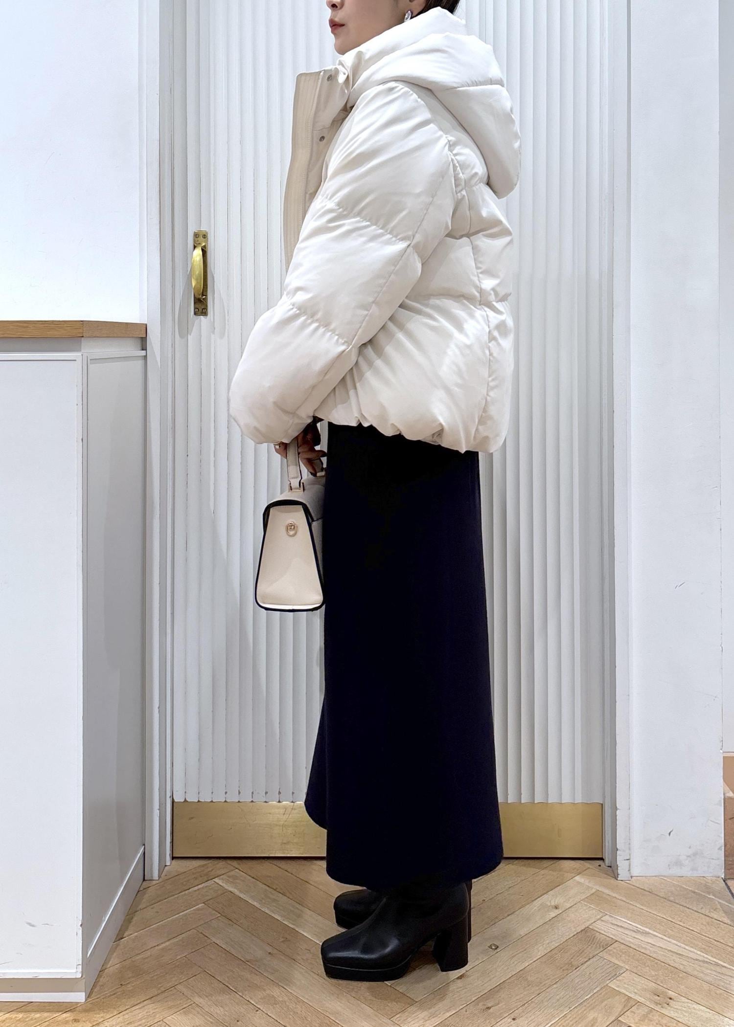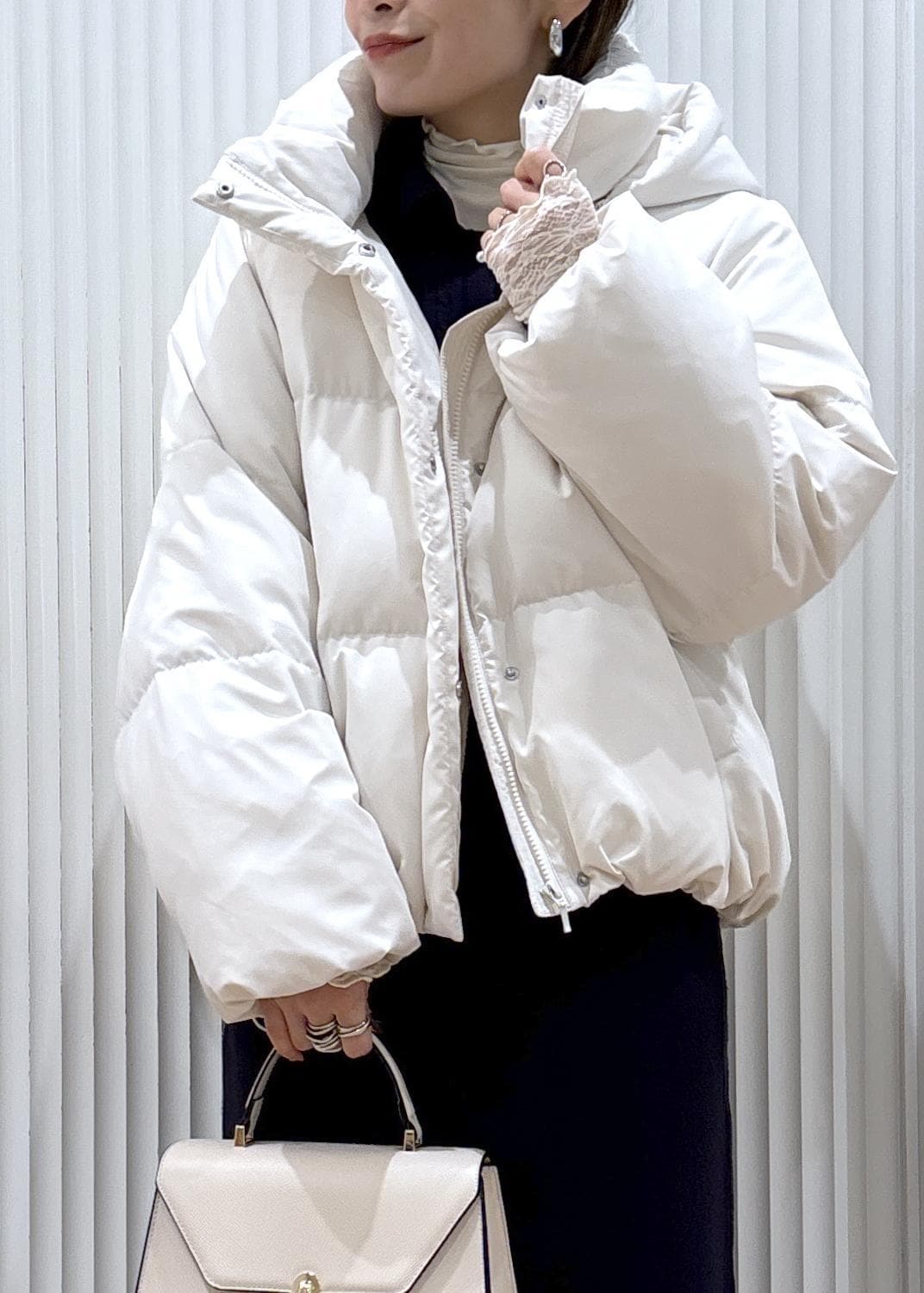 ホフホワイトのダウンジャケットならカジュアル過ぎず柔らかな雰囲気でちょっと可愛く、綺麗めワンピとも馴染むのでお仕事にもお勧め♫
