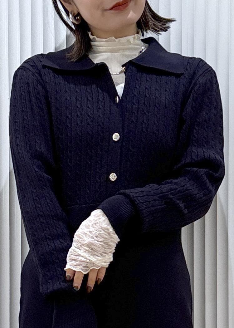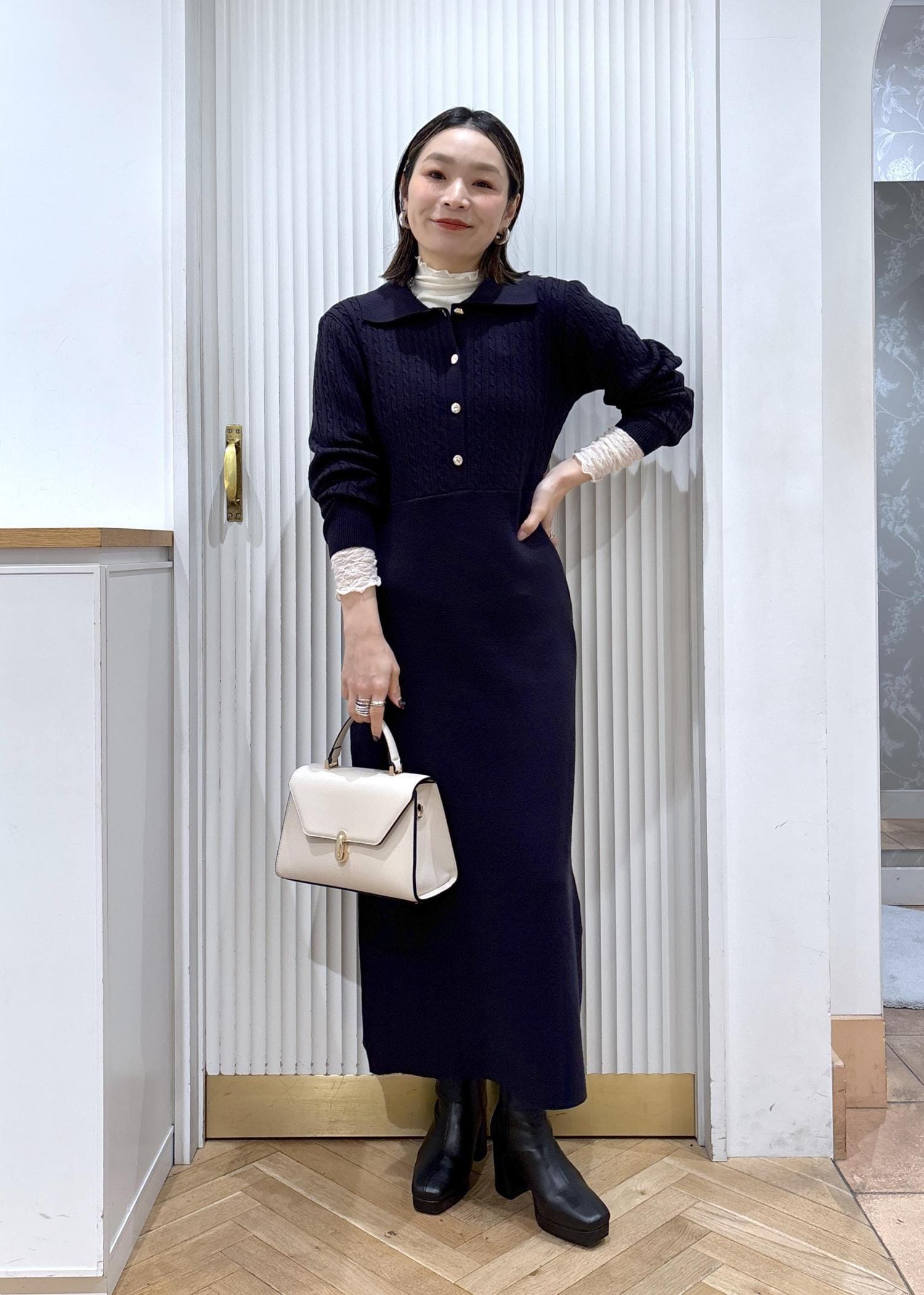 VISポロケーブルモチモチニットワンピースネイビー / F¥8,899レビュー157cmで着丈は足首よりやや上の長さです。しっかりロング丈で安心感があります。