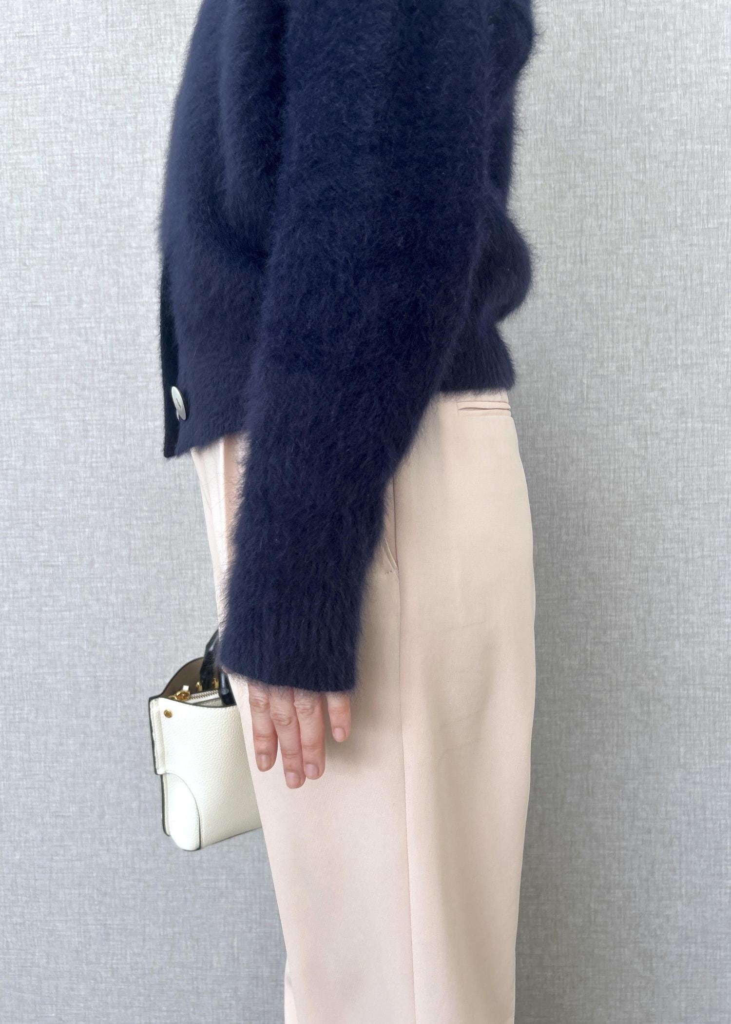 NEW!ROPÉフォックスカシミヤニットカーディガン/イージーケア・アンサンブル対応ネイビー / F¥33,000レビュー着丈はヒップの少し上辺りまでの長さです。