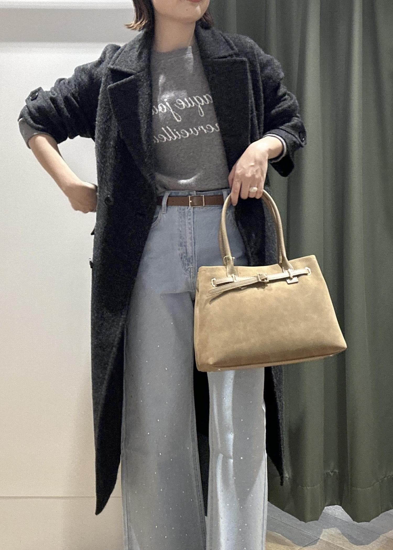 スウェットニットとデニムというカジュアルな組み合わせも、ロングコートを合わせればたちまち冬の大人カジュアルコーデに♪ とても軽くてゴワゴワ感が無いので、着たままの移動もしやすいです。