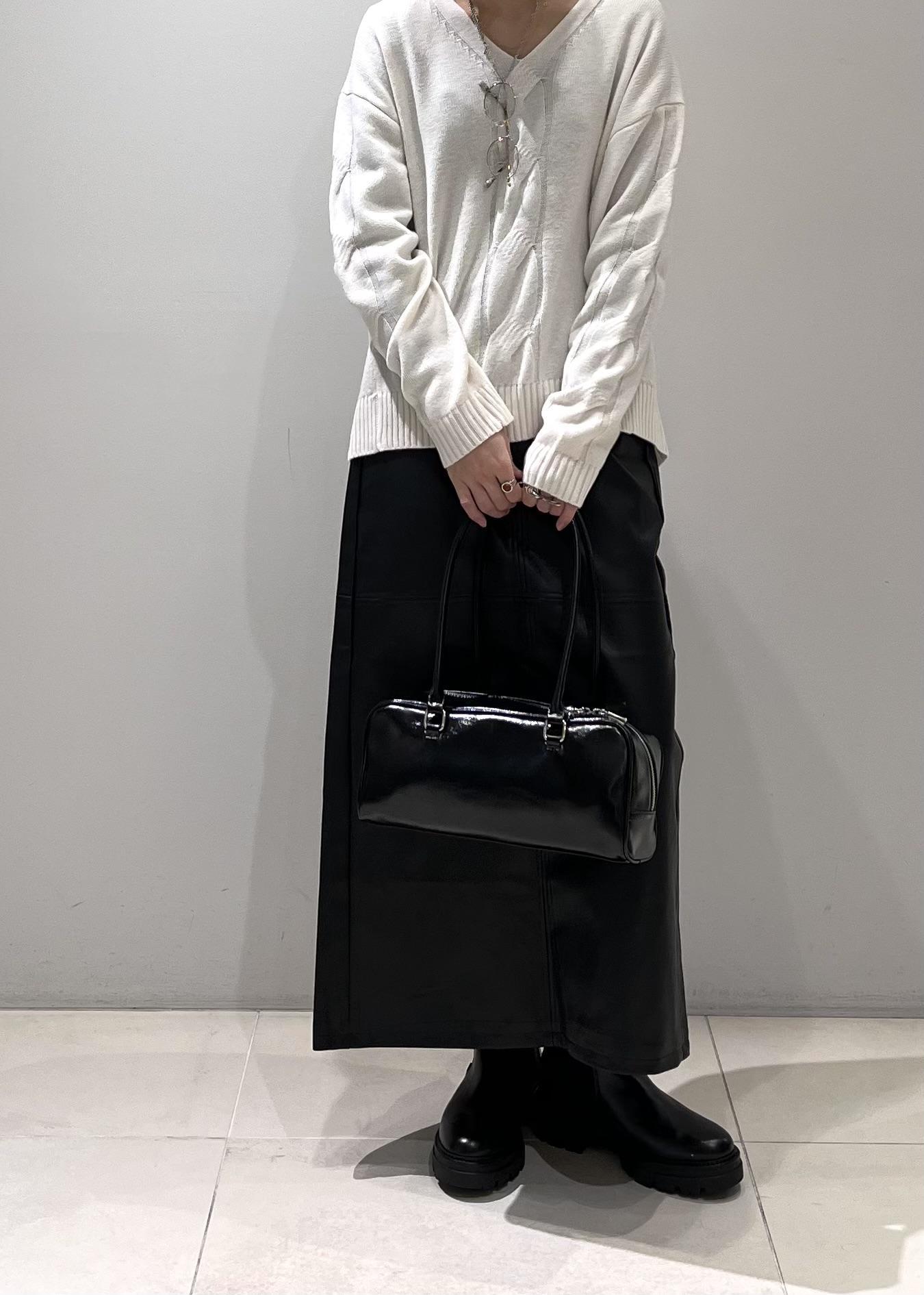 素材は艶やかエナメルフェイクレザーでモードからカジュアルまで幅広く使いやすい♪