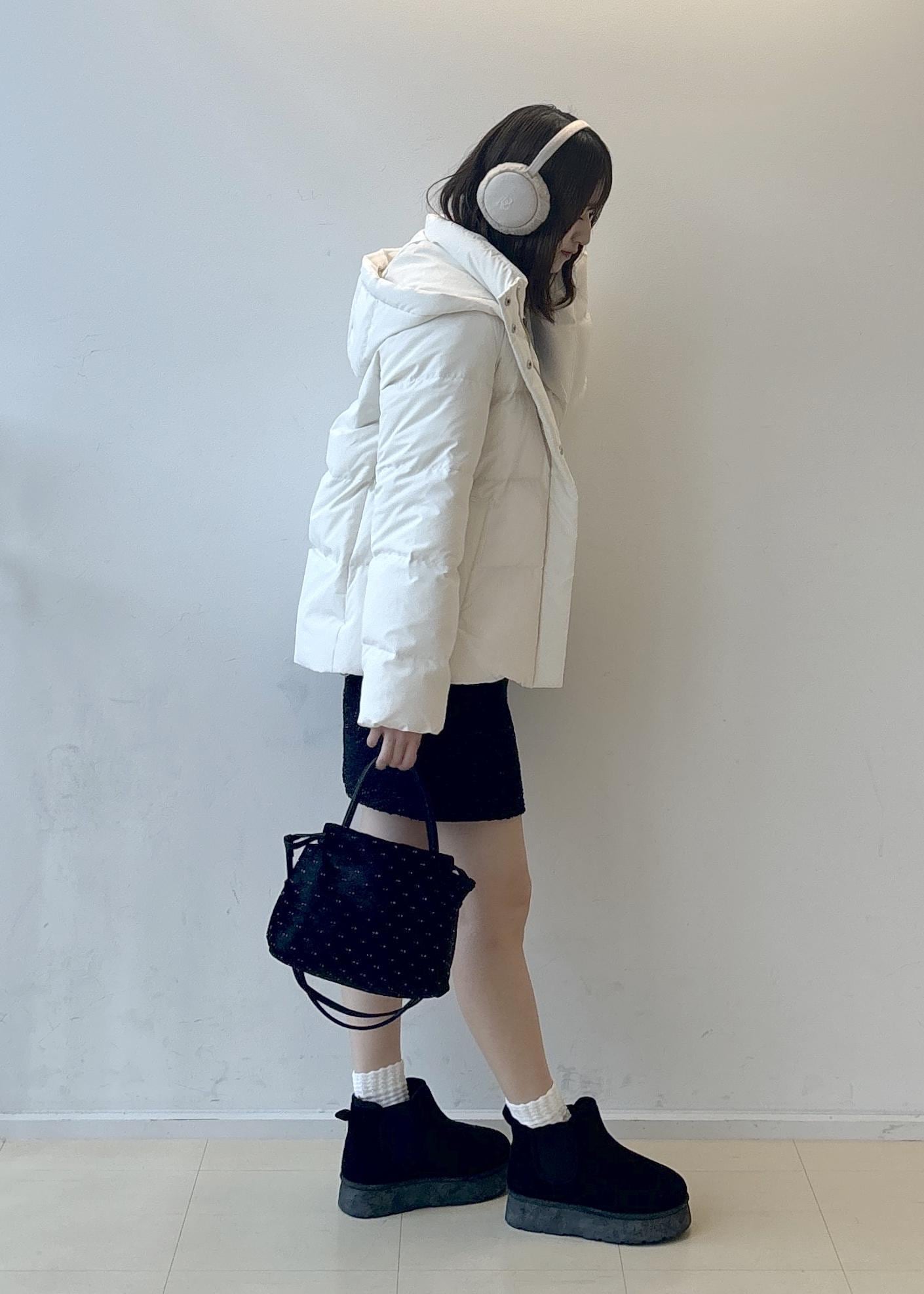 ダウンも短めの丈のものを合わせてスタイルアップ効果!