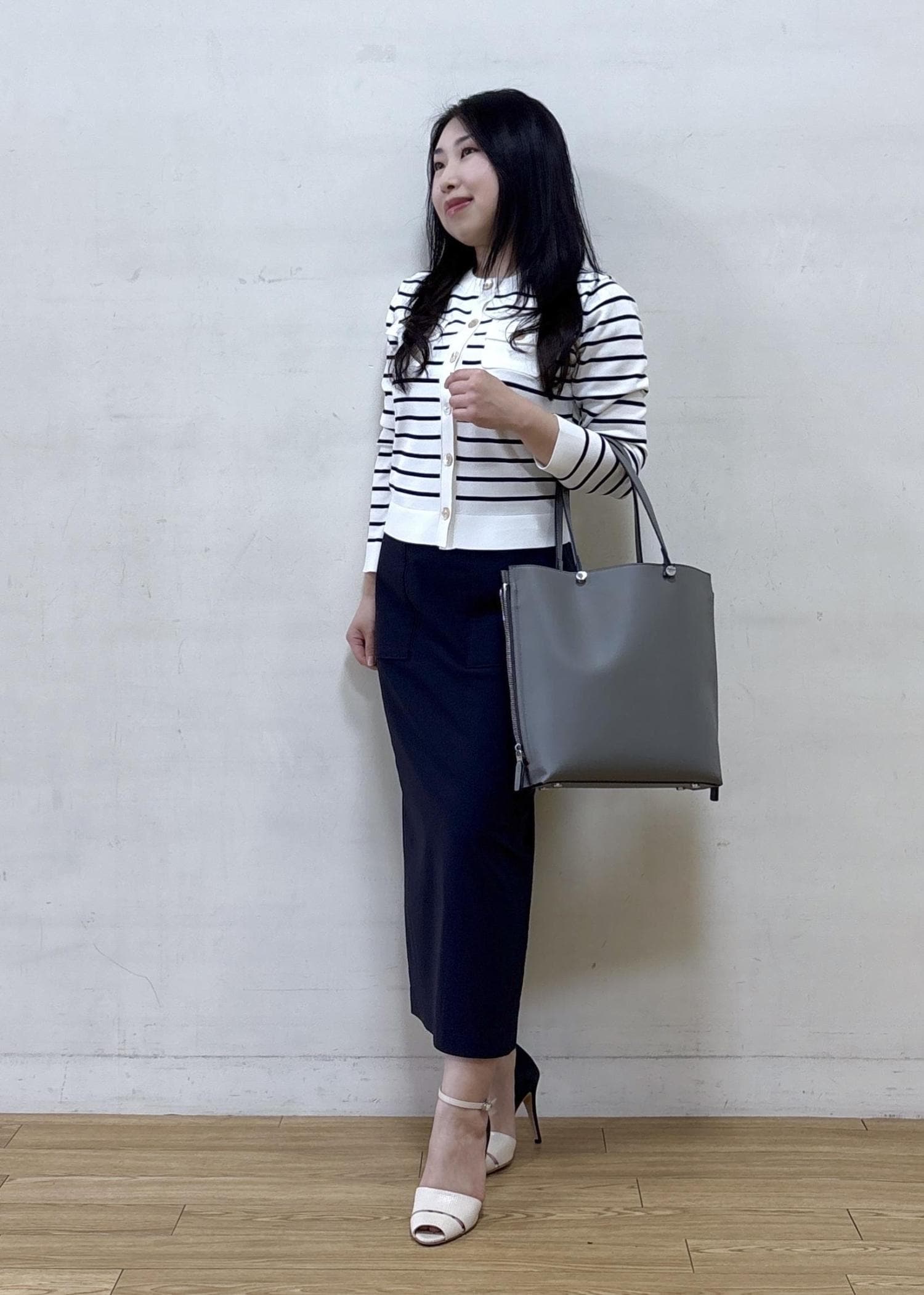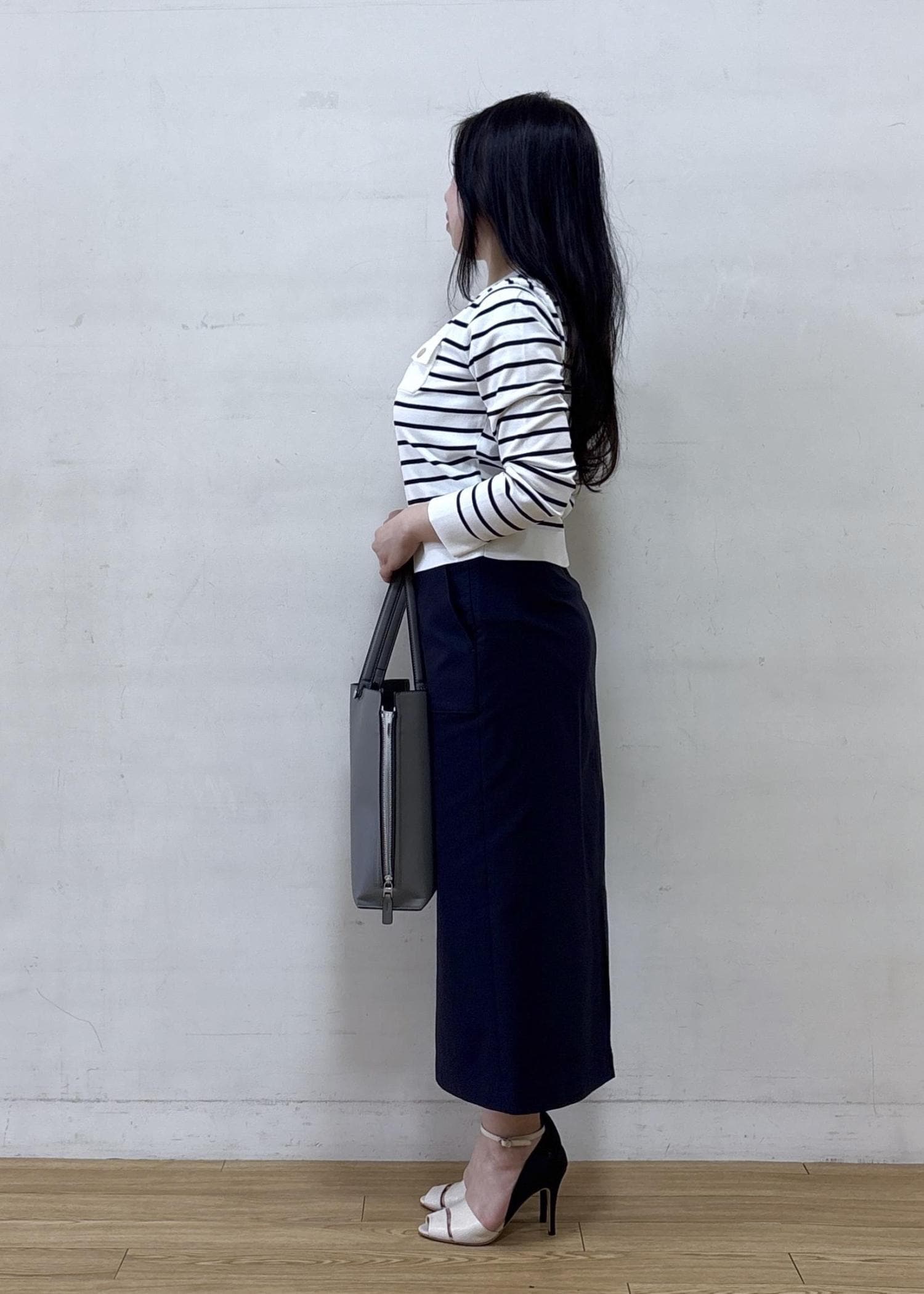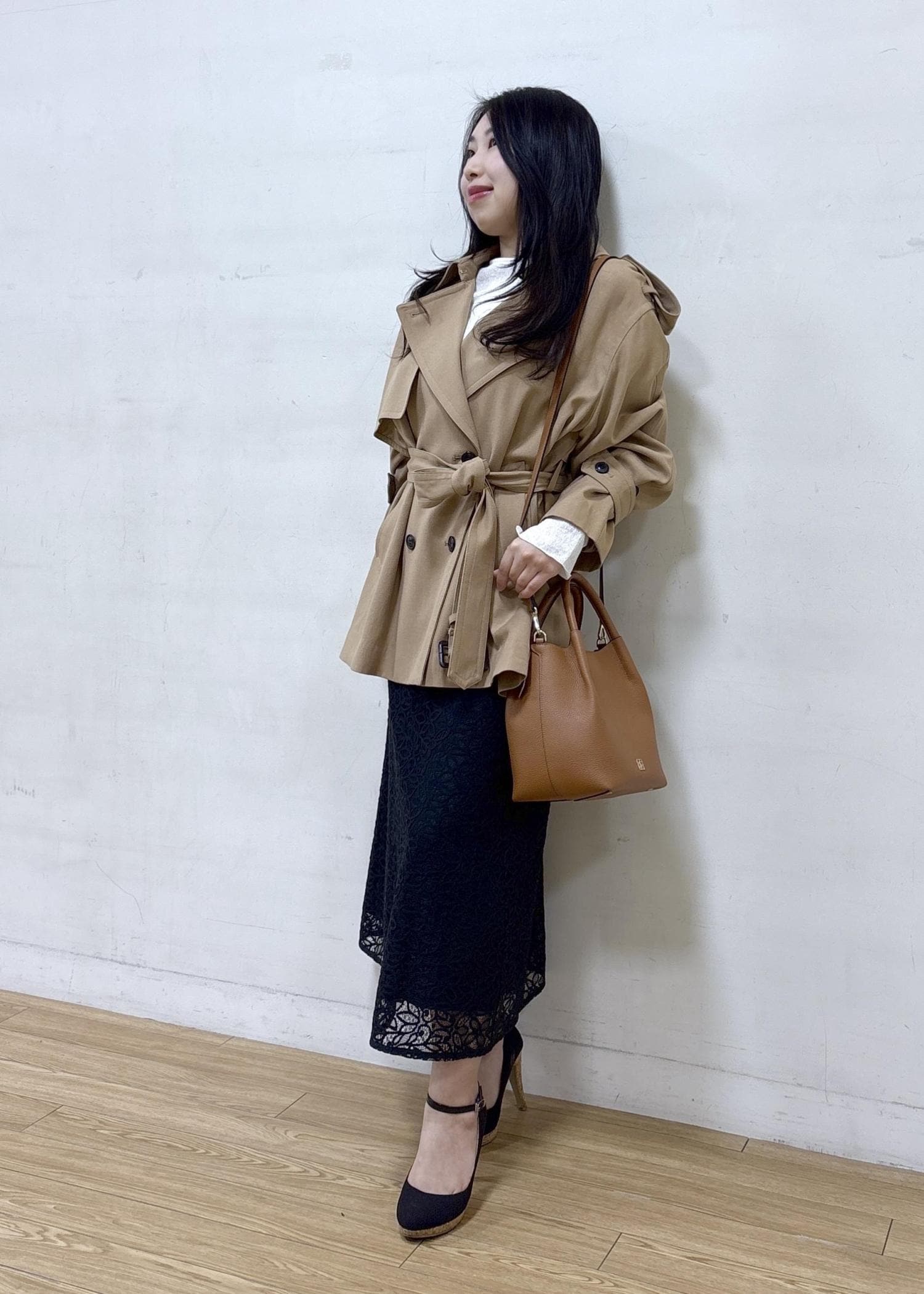 着丈は腰骨ほどでスタイルアップできる丈感です。