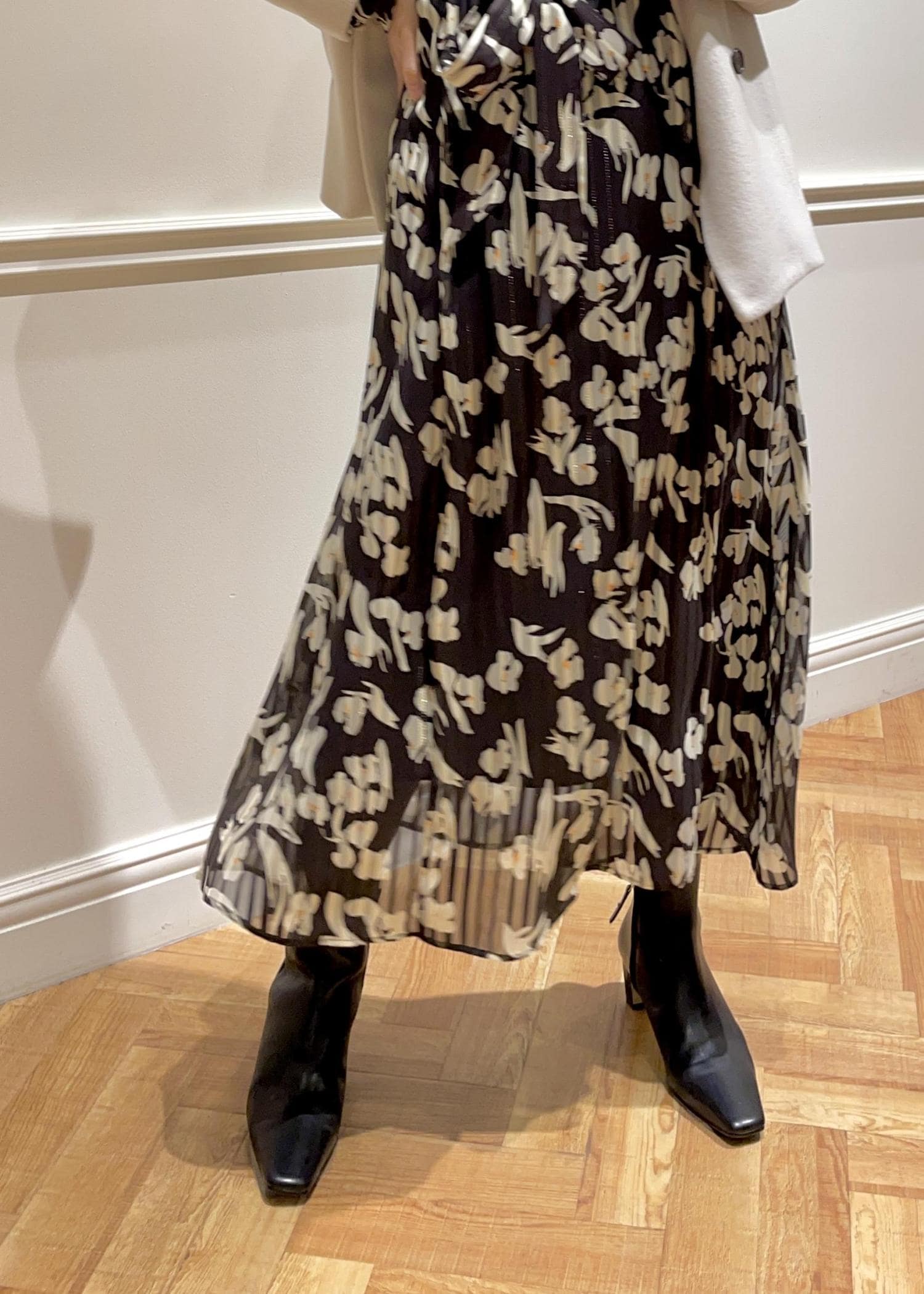 ROPÉフラワープリントタックワンピース/イージーケアダークブラウン系 / F¥47,300レビュー花柄にさり気ないラメがポイントの華やかなワンピース。