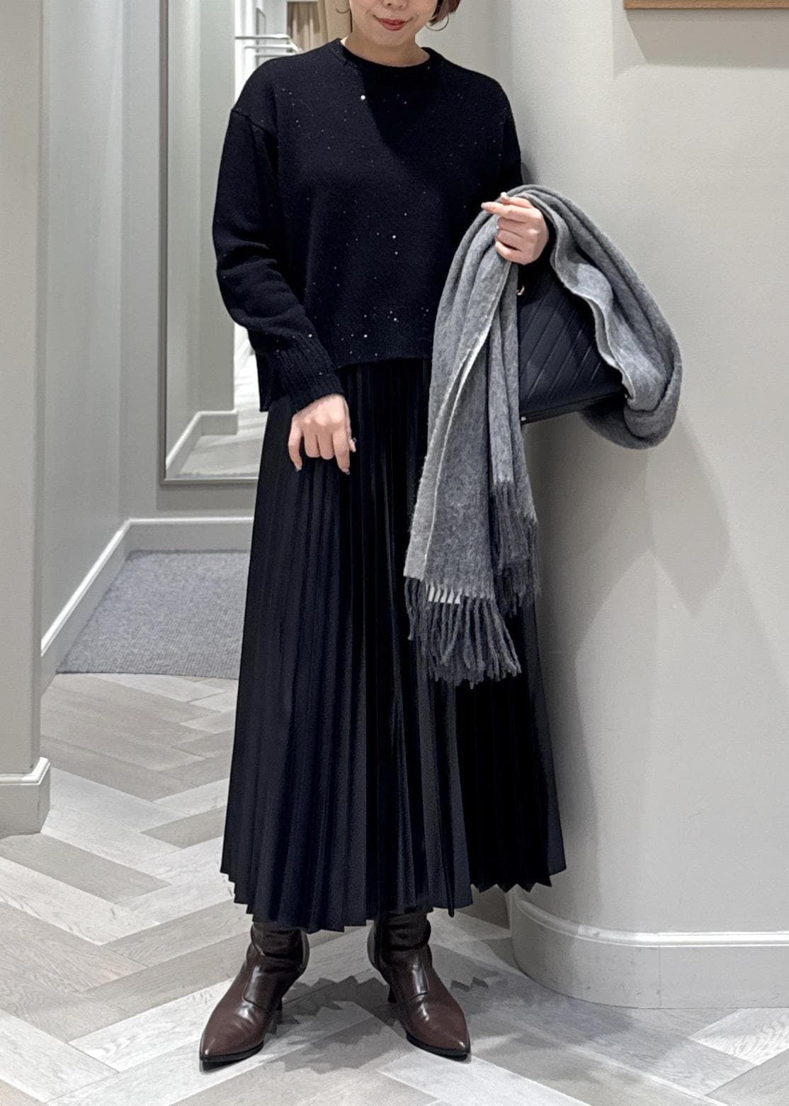 NEW!ROPÉスーパーファインメリノウールスパンコールニットブラック / F¥25,300レビュー控えめなスパンコールが可愛い1枚。