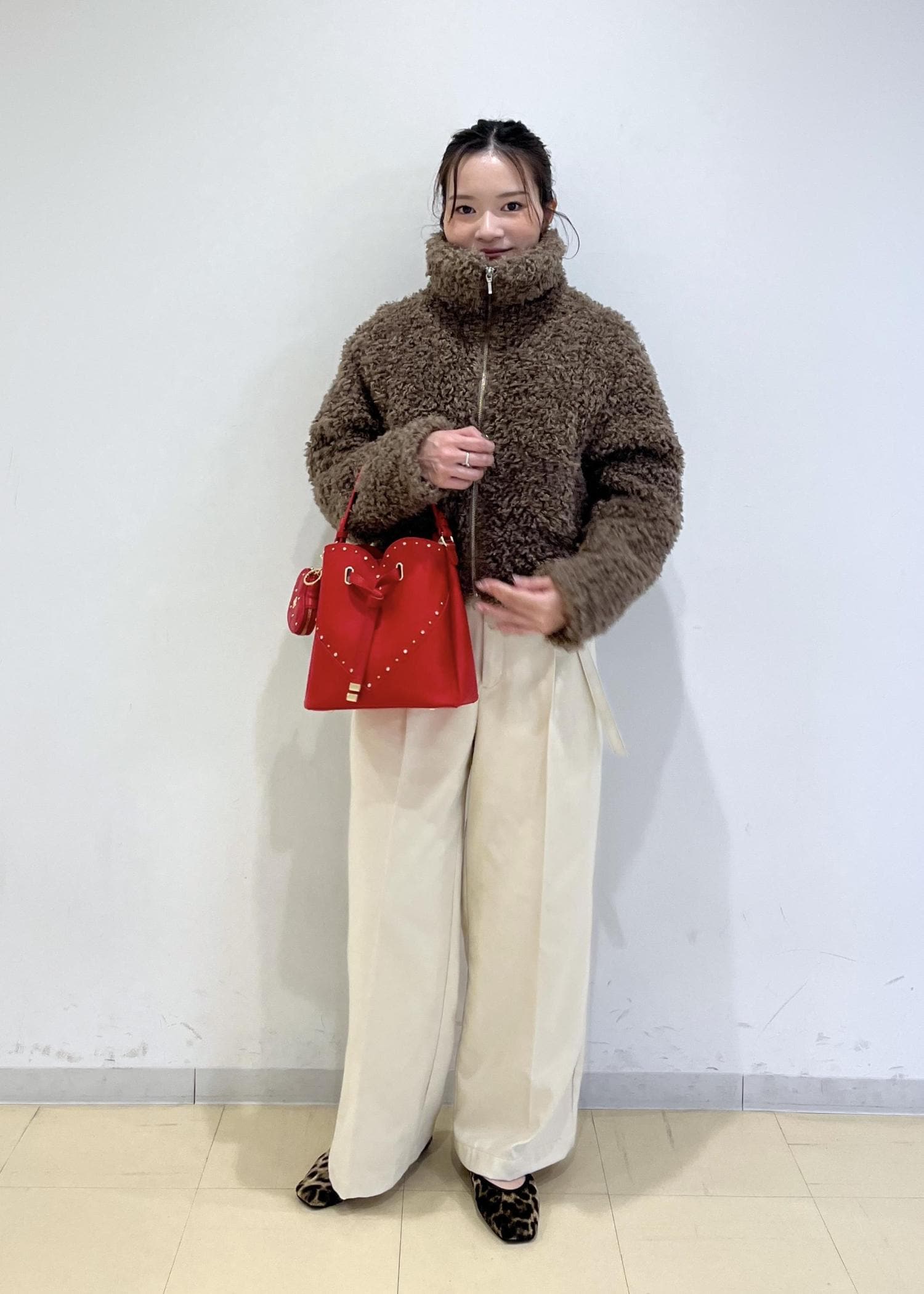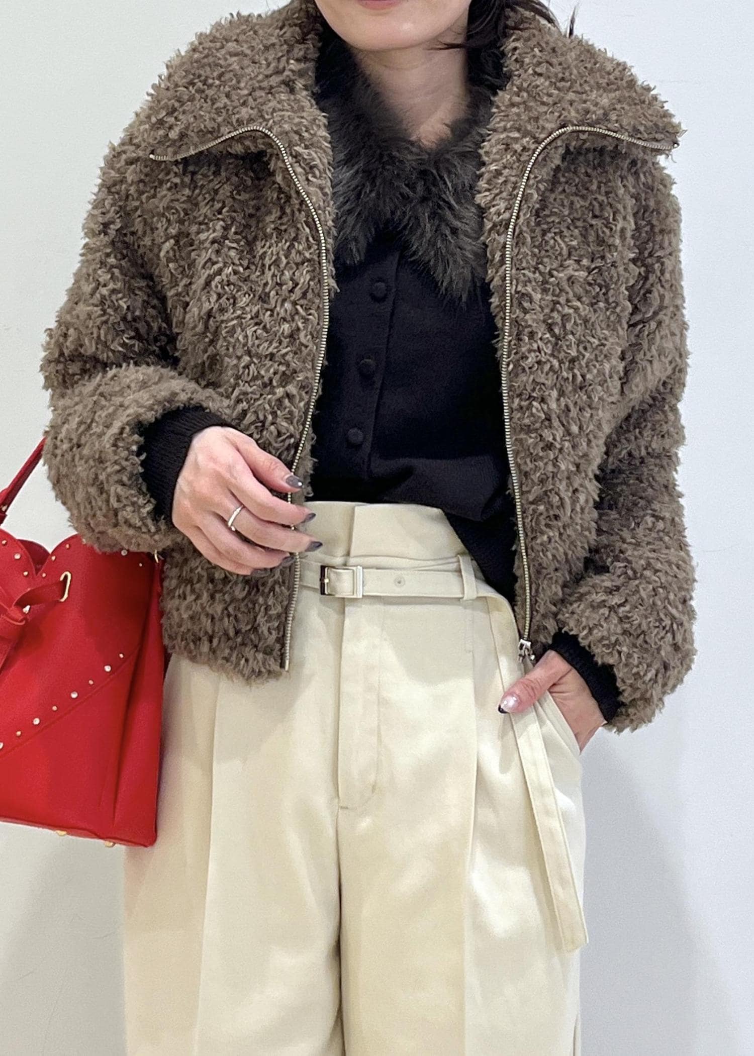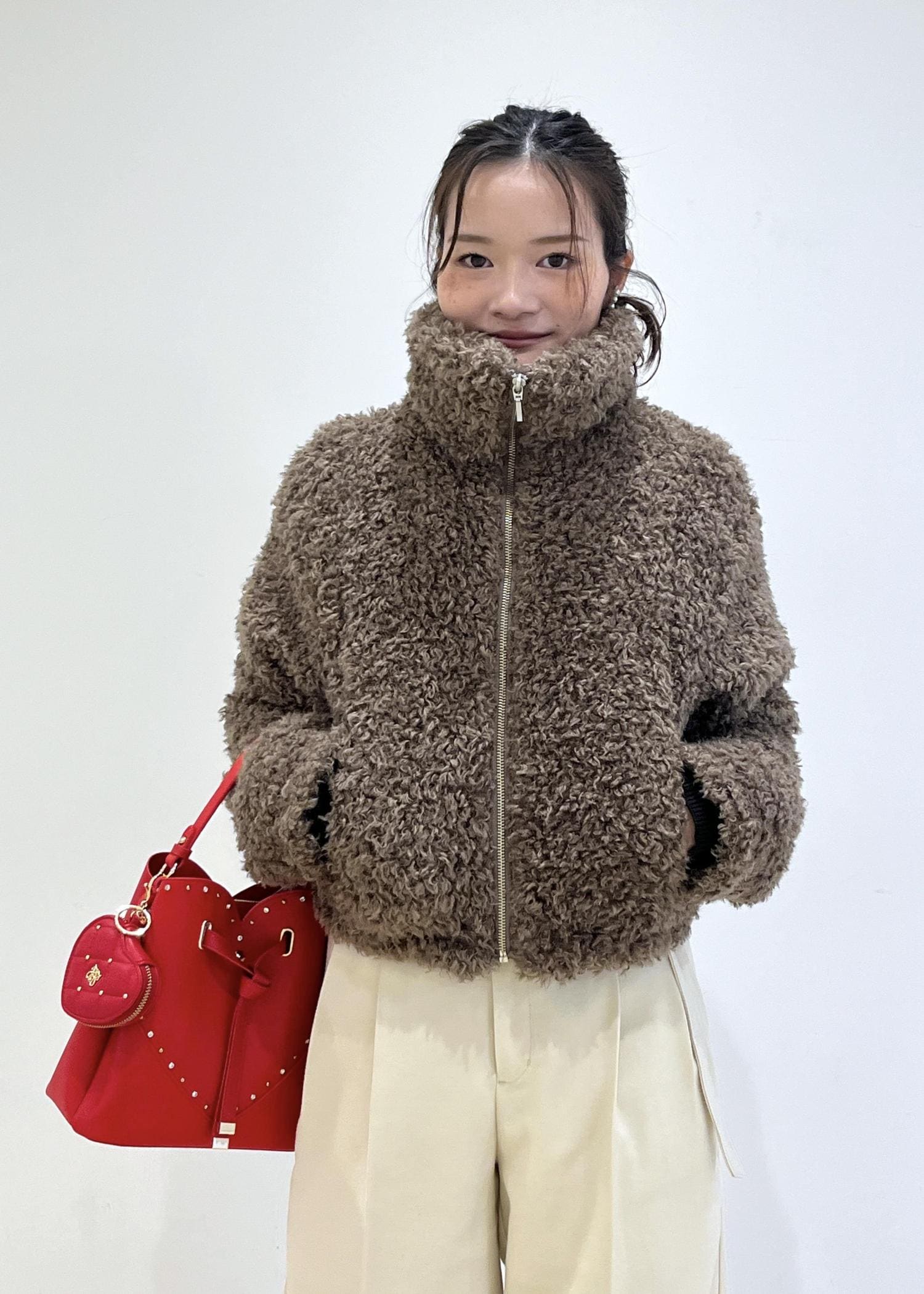 VISブローチ付きアソートファーブルゾンブラウン / F¥14,080レビュー158㎝でFサイズ着用。