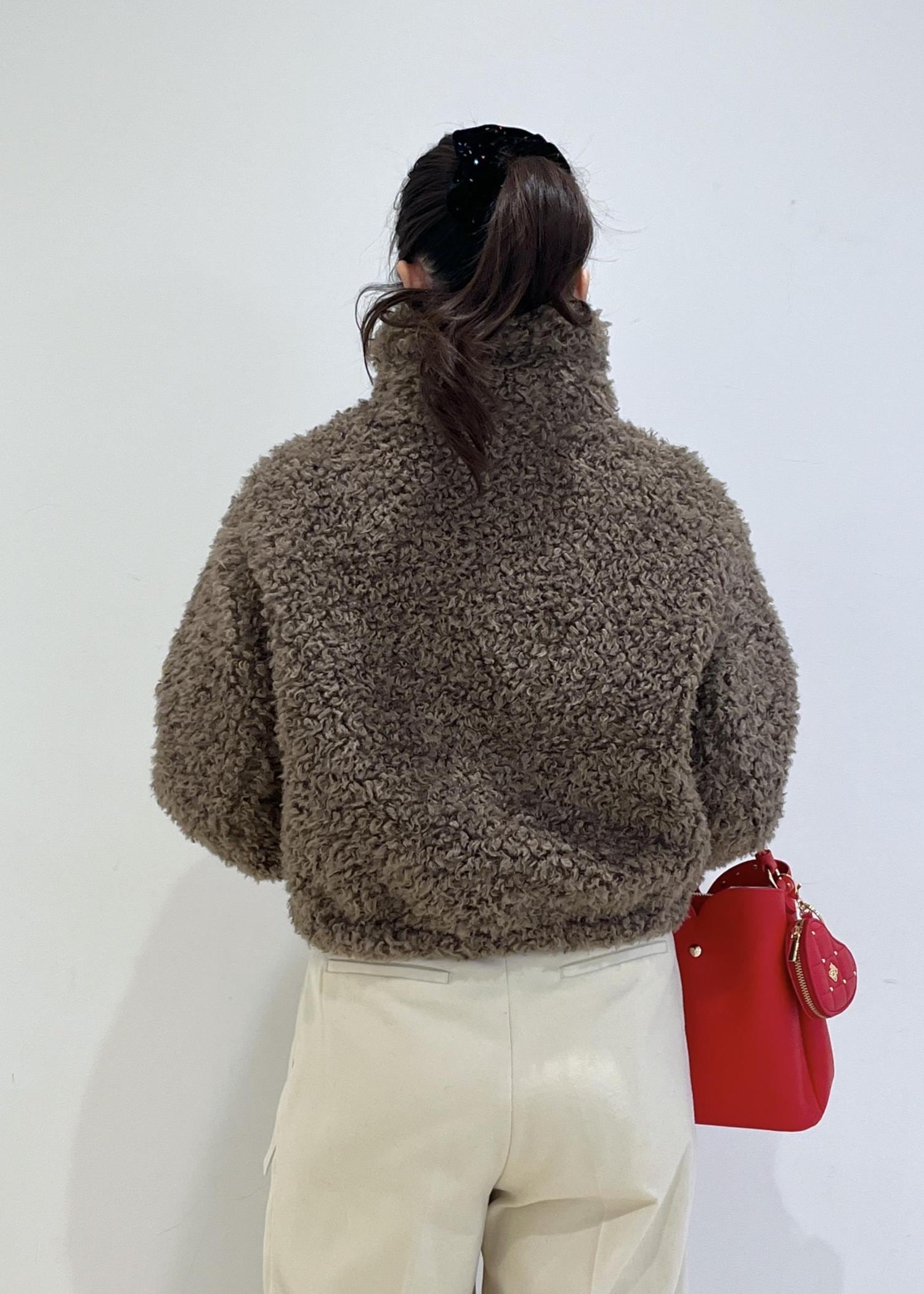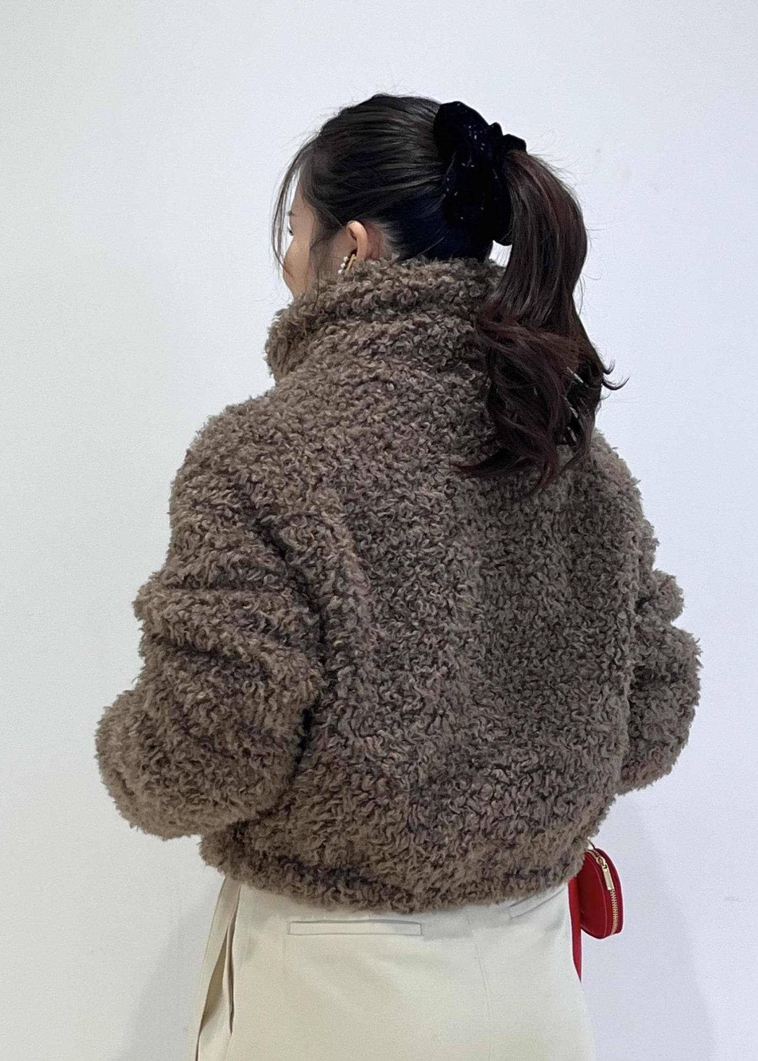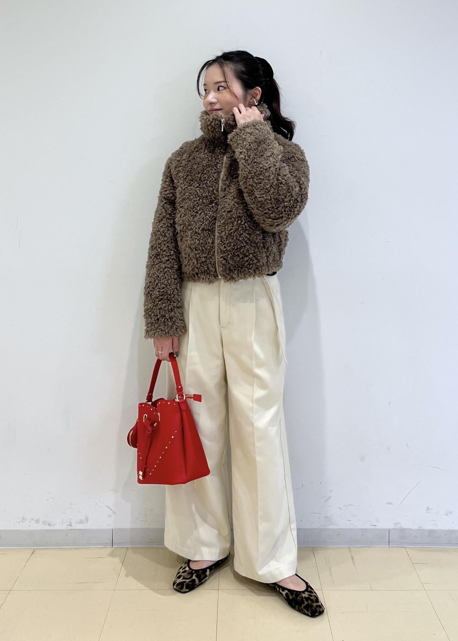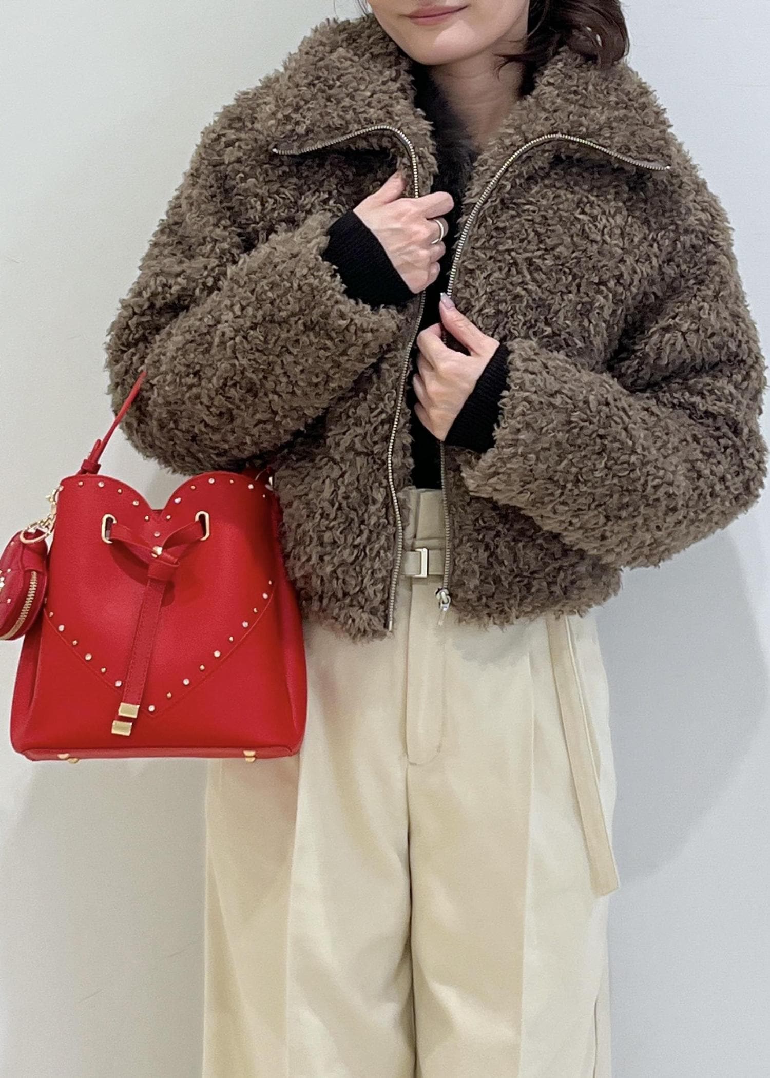 VISブローチ付きアソートファーブルゾンブラウン / F¥14,080レビュー158㎝でFサイズ着用。