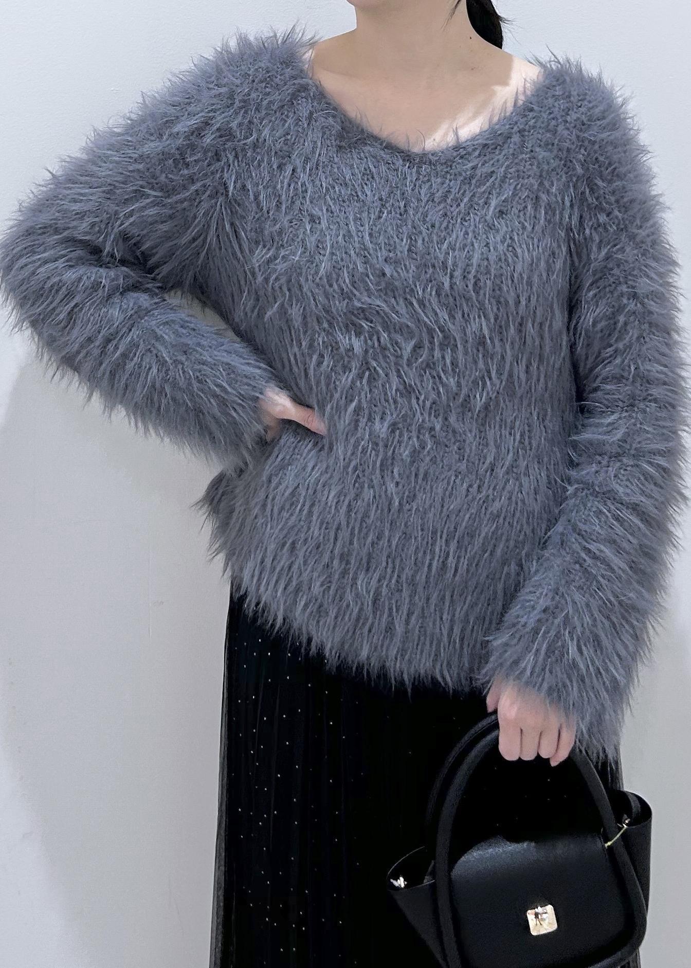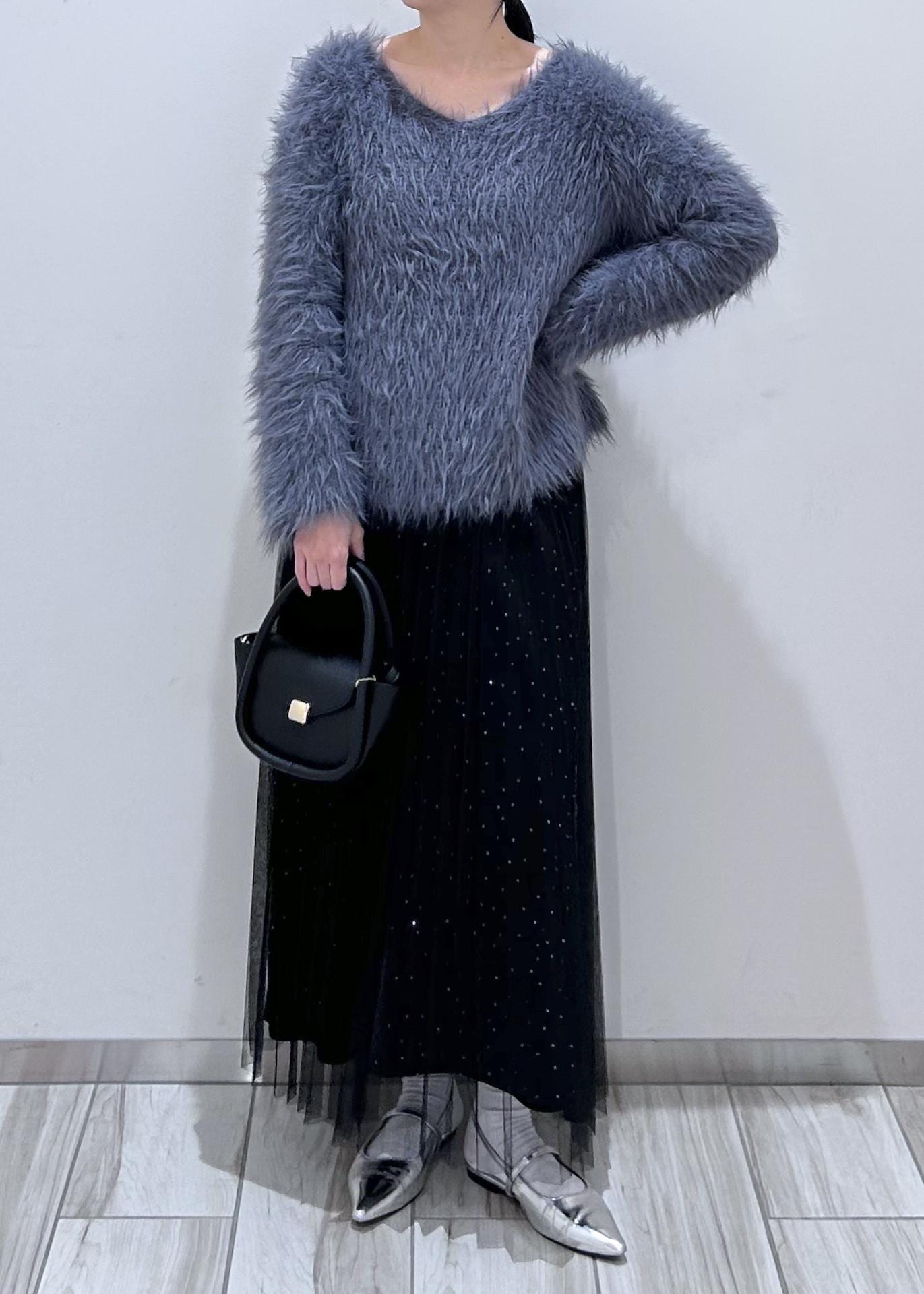 ROPÉ PICNICフェザーVネックニットチャコール / F¥5,489レビューチクチク感なし!