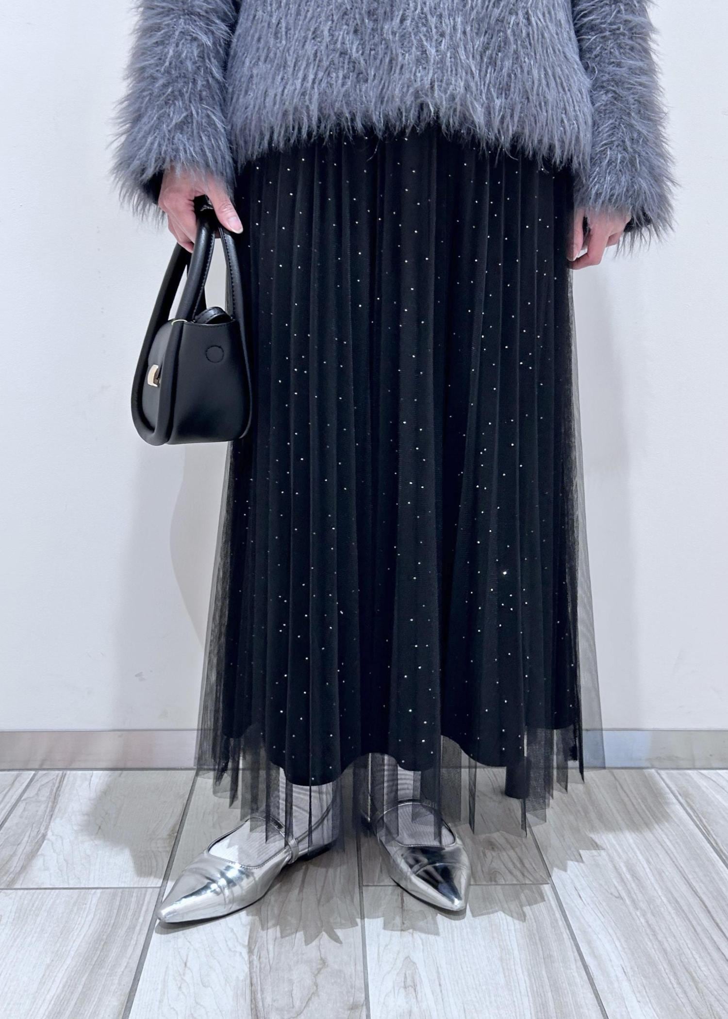 ROPÉ PICNICキラキラチュールプリーツスカート/着丈が選べるブラック / MT¥6,490レビューチュールの長さは足首ぐらいの長さ