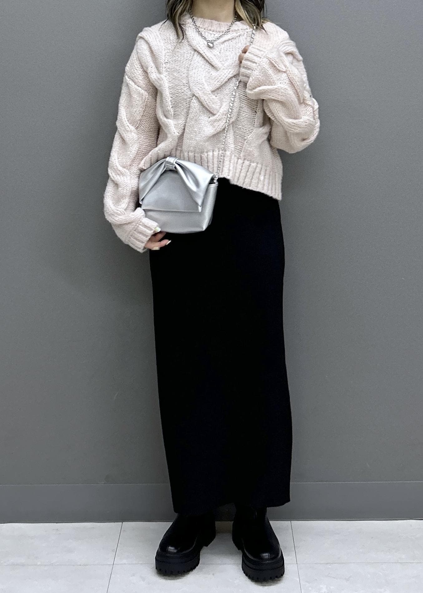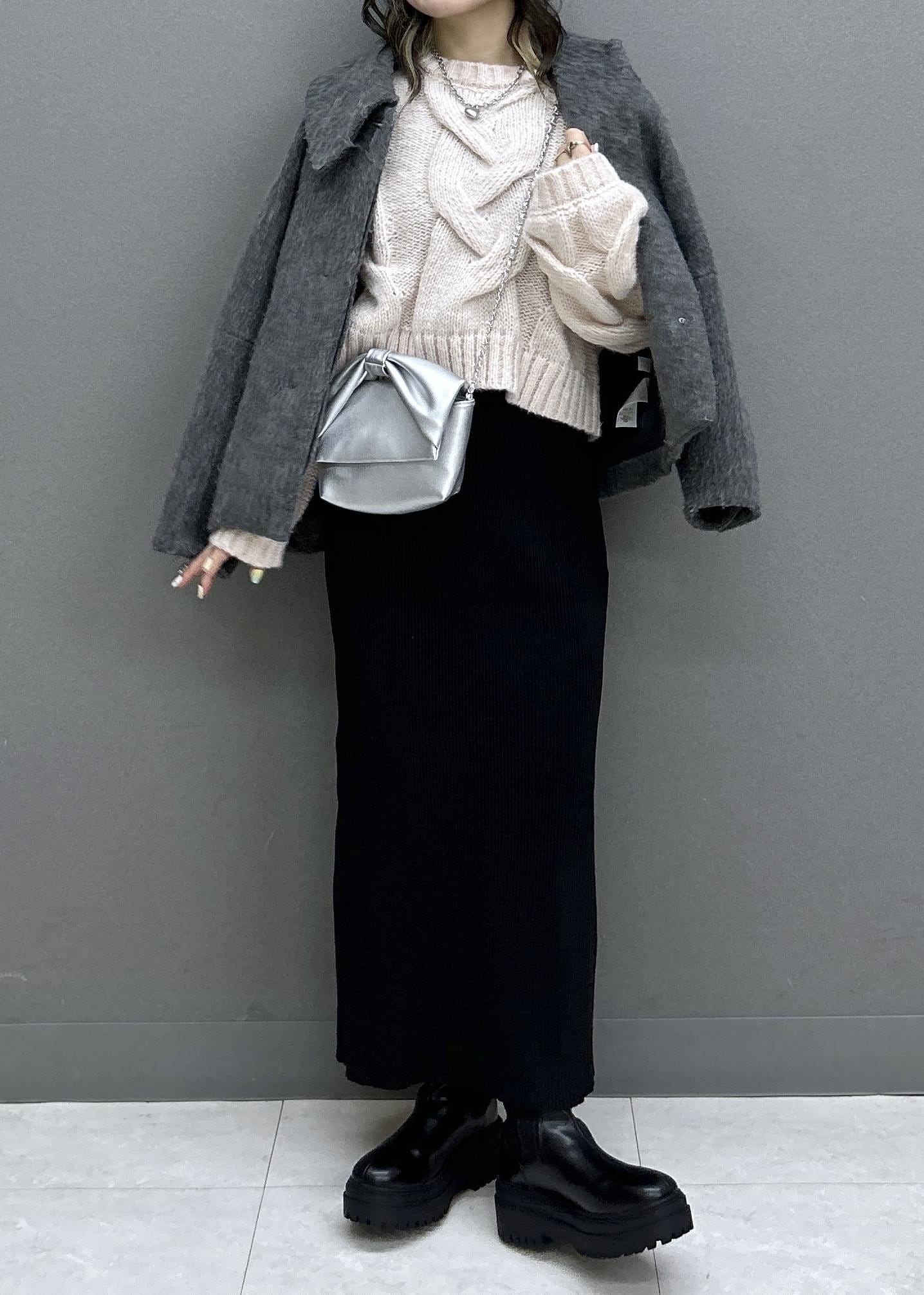 ヒップ周りのラインが気になる場合はレイヤードニットを着丈長めのトップスに変えて着用するのもオススメです◎