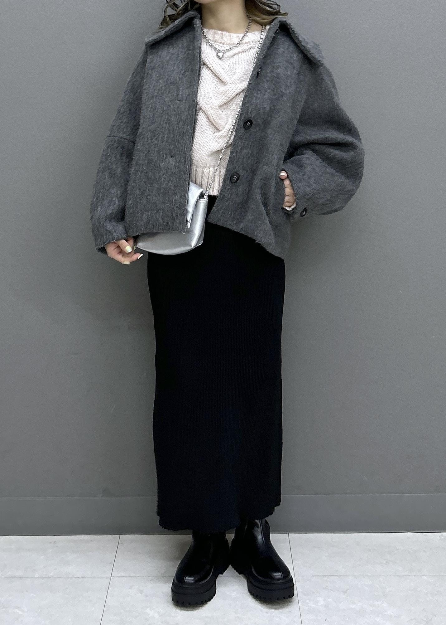 予約VIS【アウター総選挙1位】ビッグカラーモモンガシャギーショートコートグレー / S¥10,989レビュー157cmでSサイズでもお尻にかかるくらいの着丈でした。