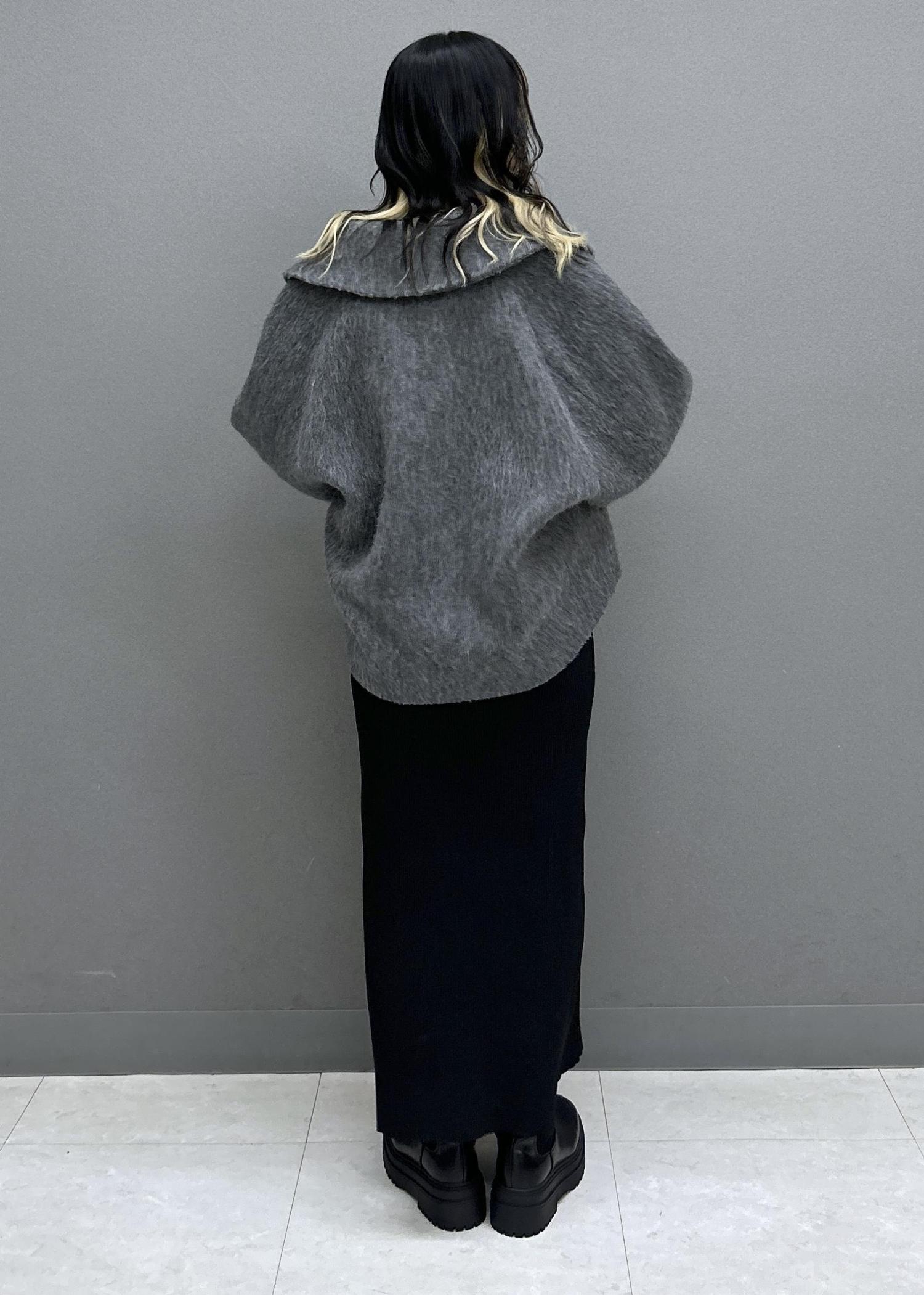 襟が肩のラインにかかるくらい大きめなので、なで肩でもシルエットが綺麗に決まります◎ -