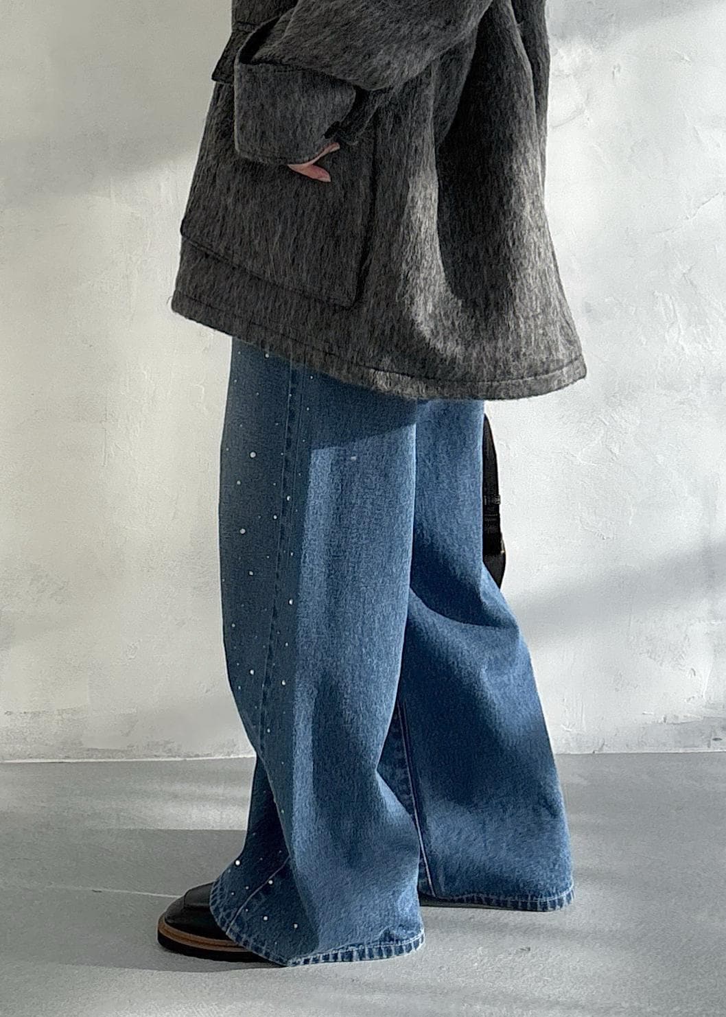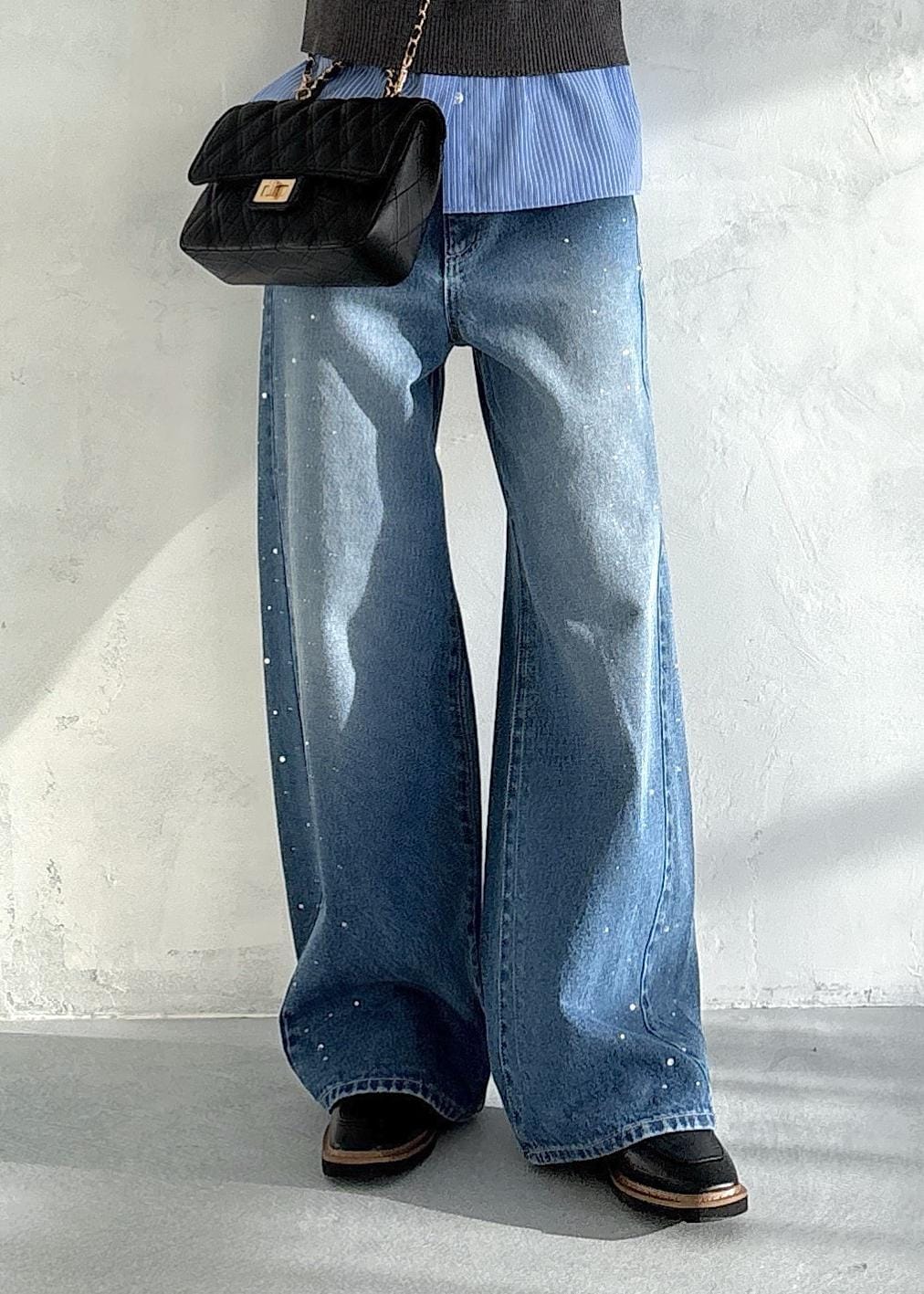 VISビジューデニムパンツブルー / M¥7,909レビューキラキラビジューが目を惹く大人可愛いデニム♪大きさの異なったビジューが正面サイドにあしらっている、カジュアルだけど女性らしい印象見えするデザイン。シルエットは広がり過ぎないストレートラインなので、コーディネートもバランスまとまります。厚過ぎず、薄過ぎずと通年使いやすい素材です◎サンプルの為Mサイズ着用、全体的にゆったりめ、着丈は足首くらいの長さでした。