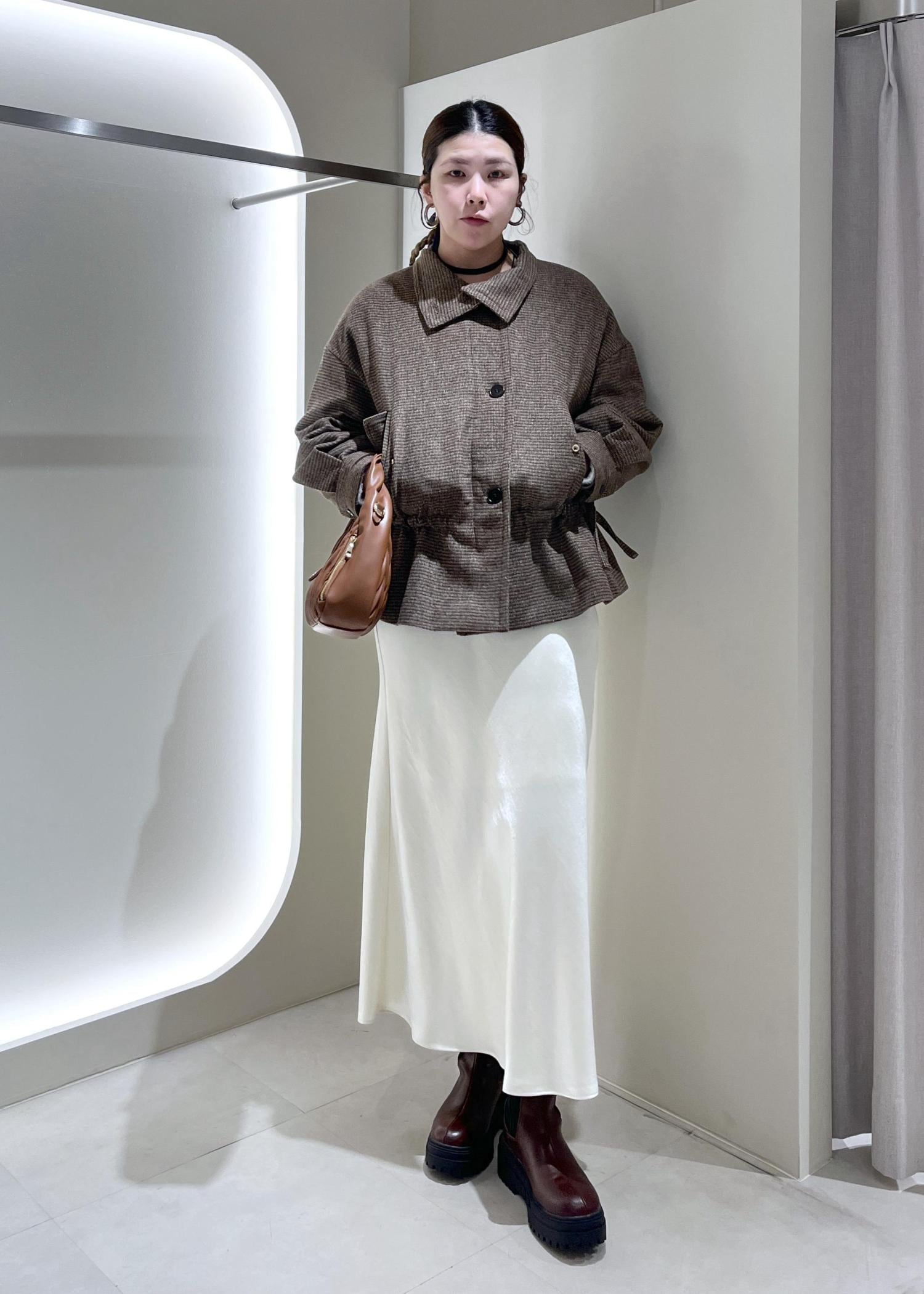 VISドロストペプラムブルゾンブラウン系 / F¥14,080レビュートレンドのペプラムシルエットを作れるブルゾン!高身長でもヒップまでかかる着丈があり、袖丈は手首ジャストでした。ウエストをお好みで絞れるので雰囲気を変えての着用も◎首元での変化も楽しめるのでいろんなコーデに合わせやすそうです。