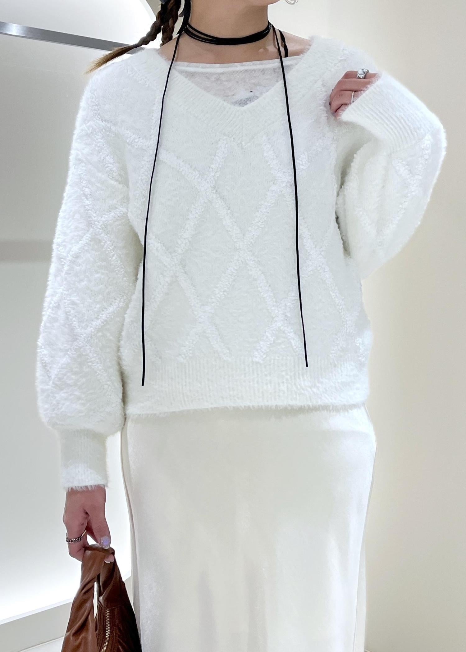 VISアーガイルフェザーニット/2WAY・イージーケアオフホワイト / F¥6,589レビュー高身長でもゆるっと着れるシルエットで、さりげないアーガイル柄で大人可愛いニットです!