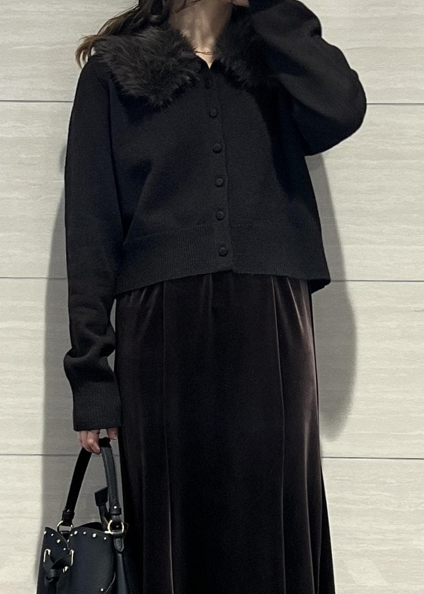 VIS衿ファー取り外しカーディガンダークブラウン / F¥6,589レビュー152cmで腰くらいのショート丈のニットです。