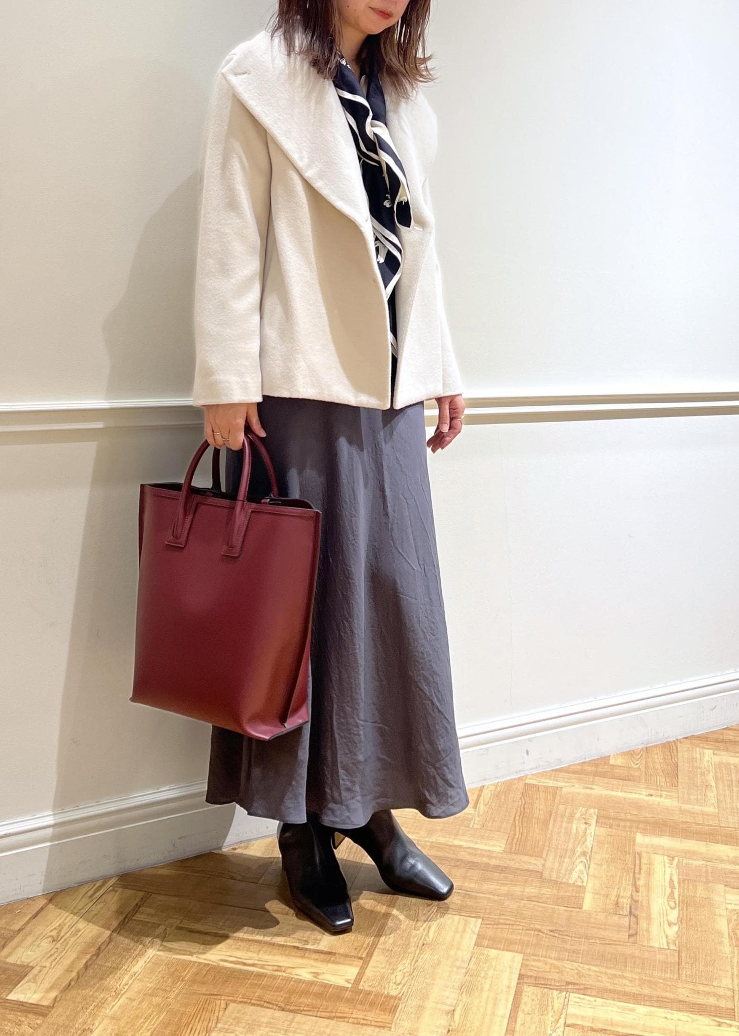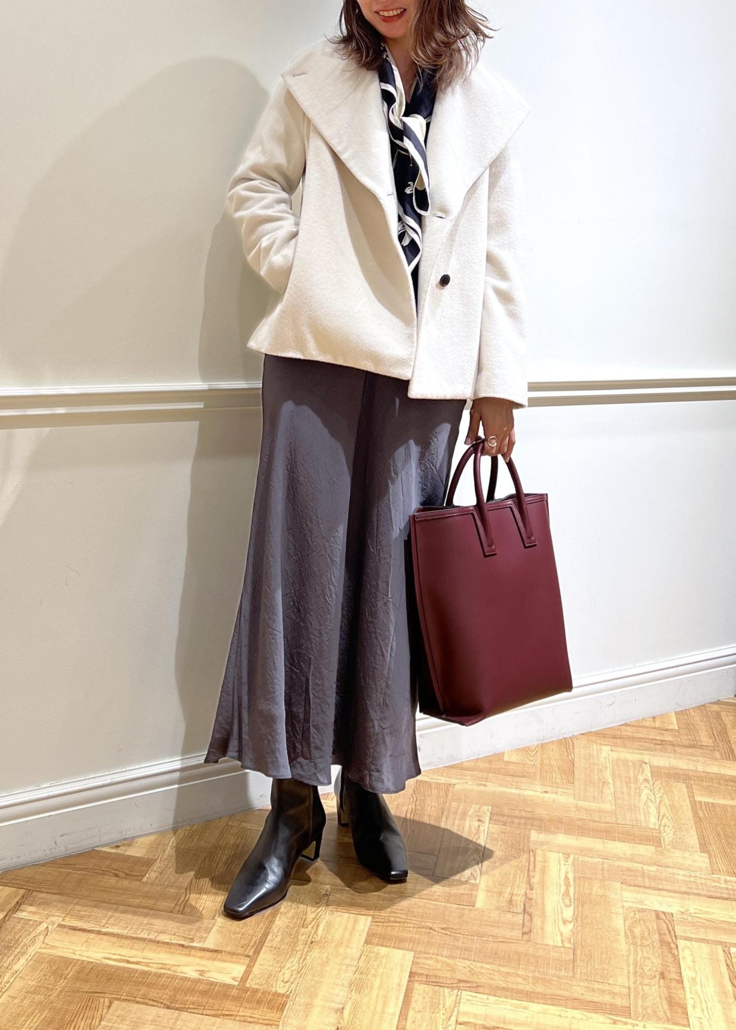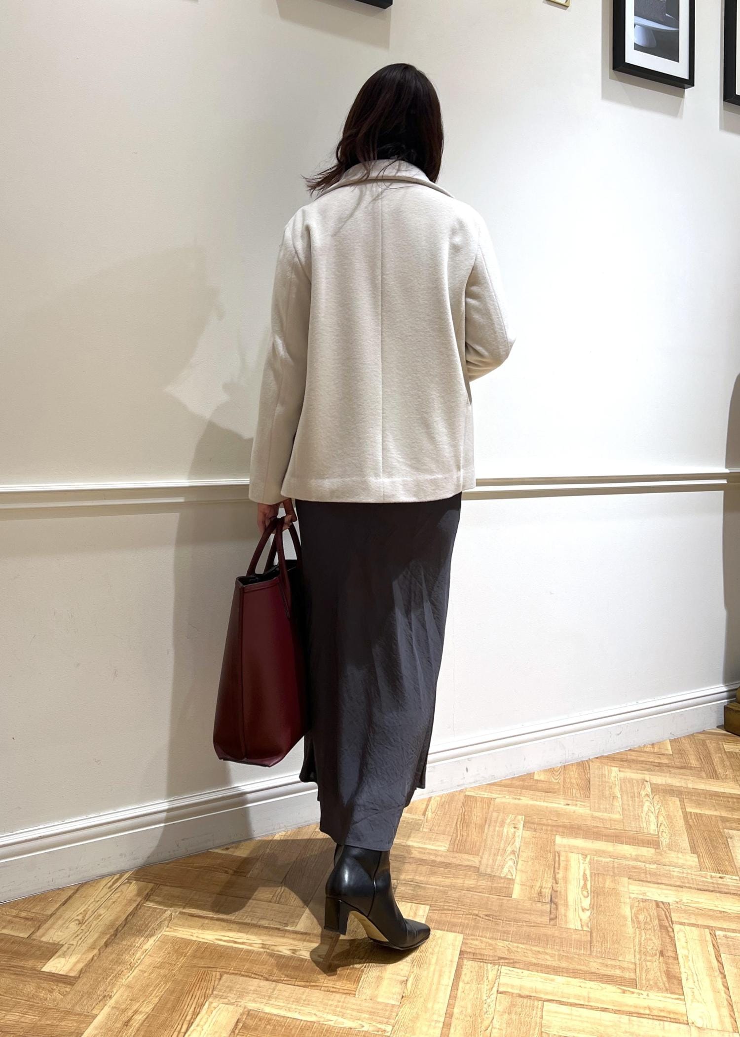 店頭でも大人気のプレミアムカシミヤショートを羽織ったスタイリング。