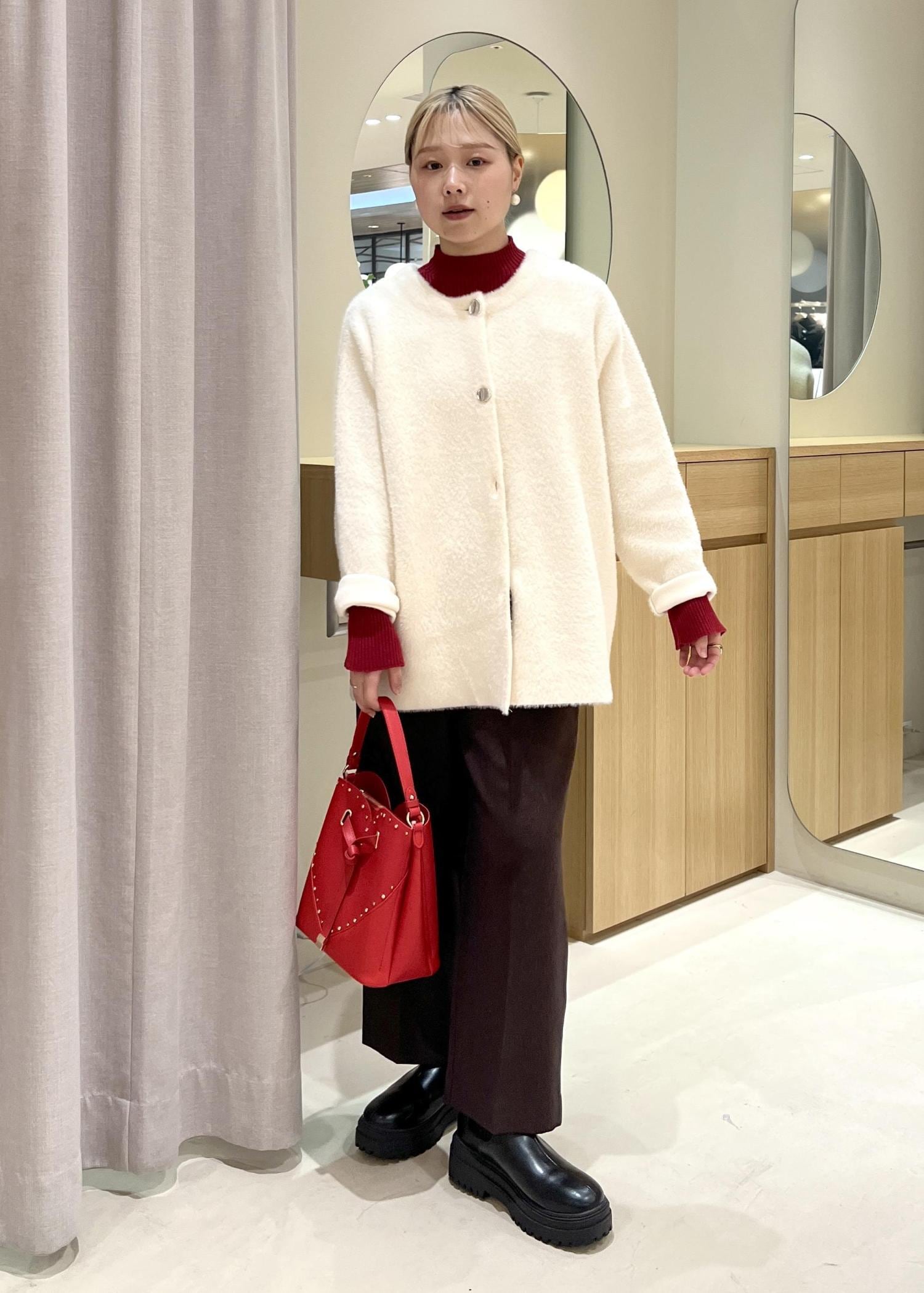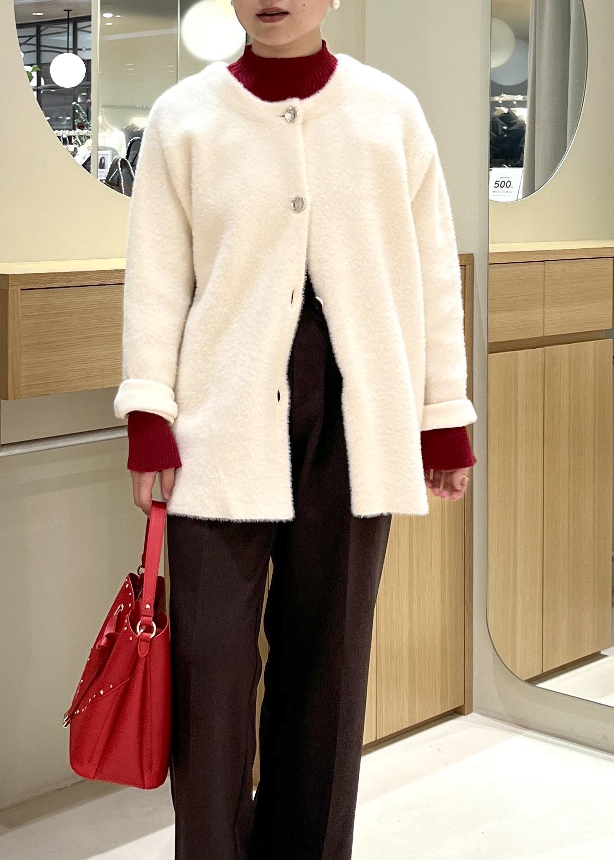 VIS接結メタルボタンミニフェザーニットコートオフホワイト / F¥9,999レビュー春秋や初冬のアウターとして、冬本番のカーディガンとしてお楽しみいただける1着です!