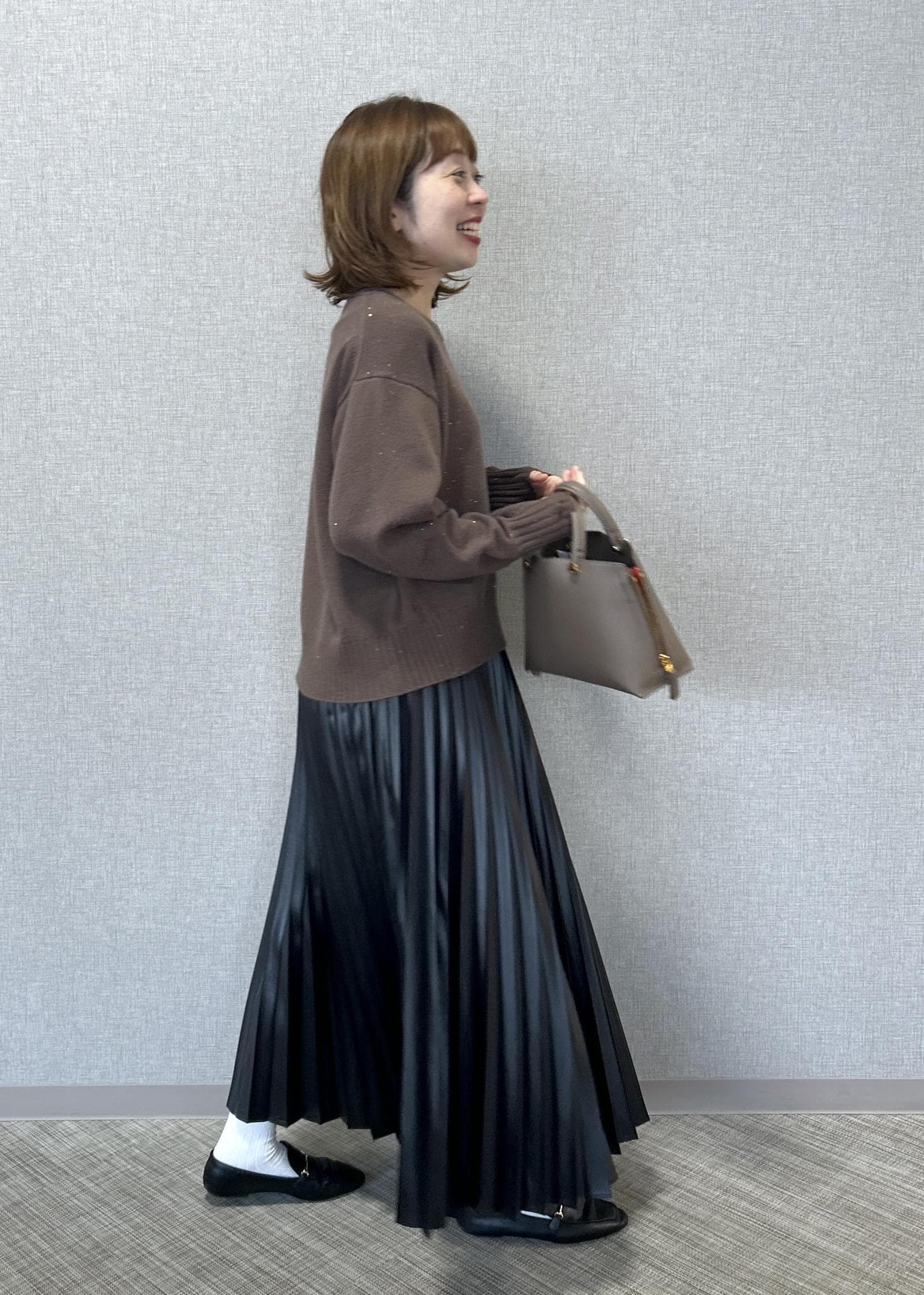ROPÉシャイニープリーツスカート/イージーケアブラック / F¥26,400レビュー丈感は踝から12〜13cm程上辺り迄の長さです。