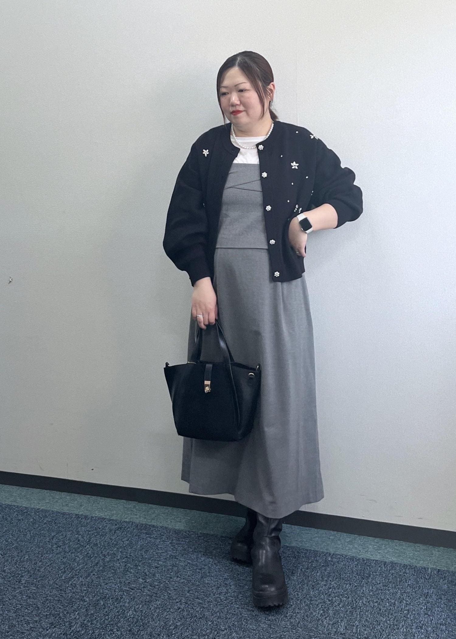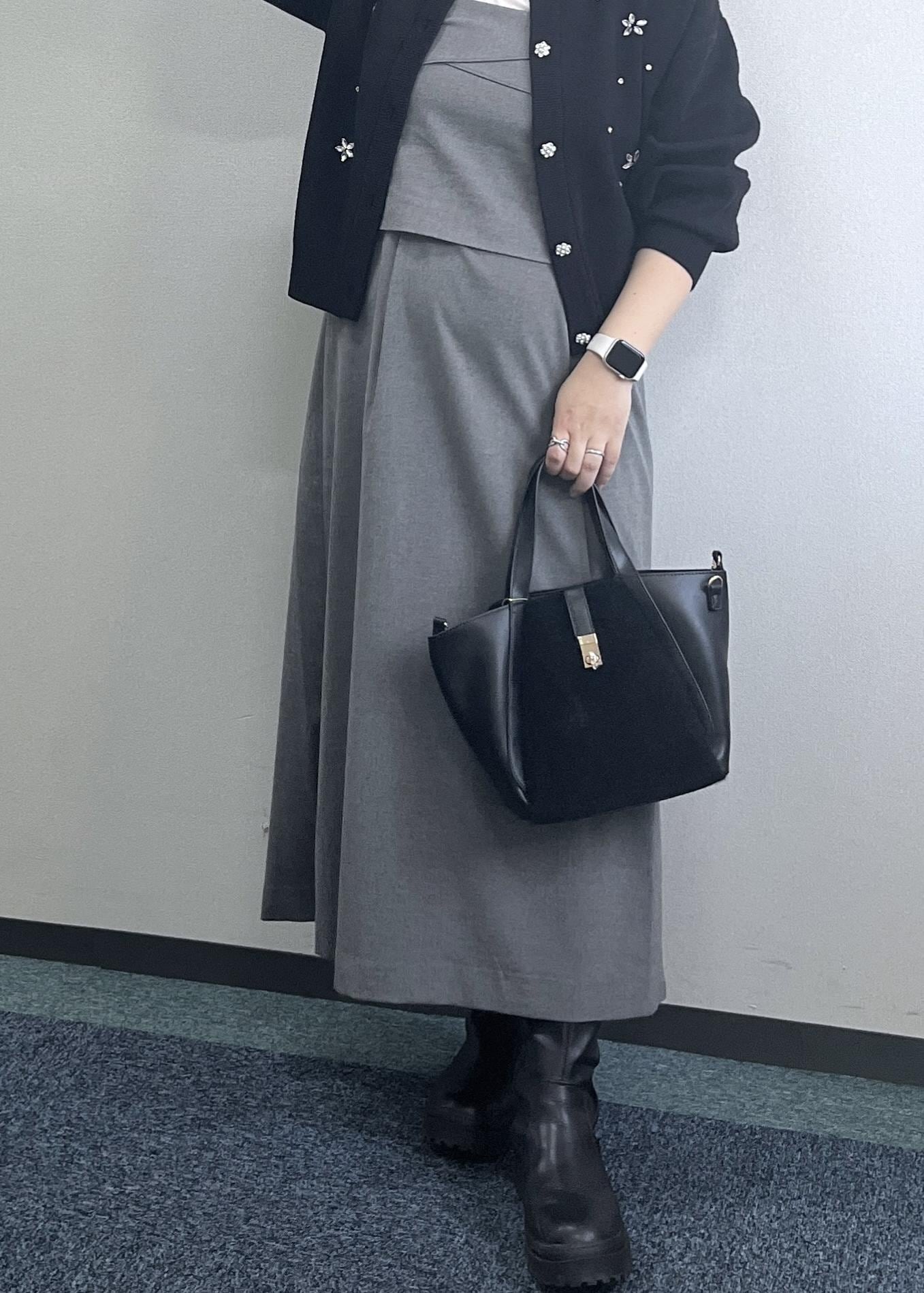 ブラック×グレーで合わせているので、甘くなりすぎず大人の方も着やすいです☺︎