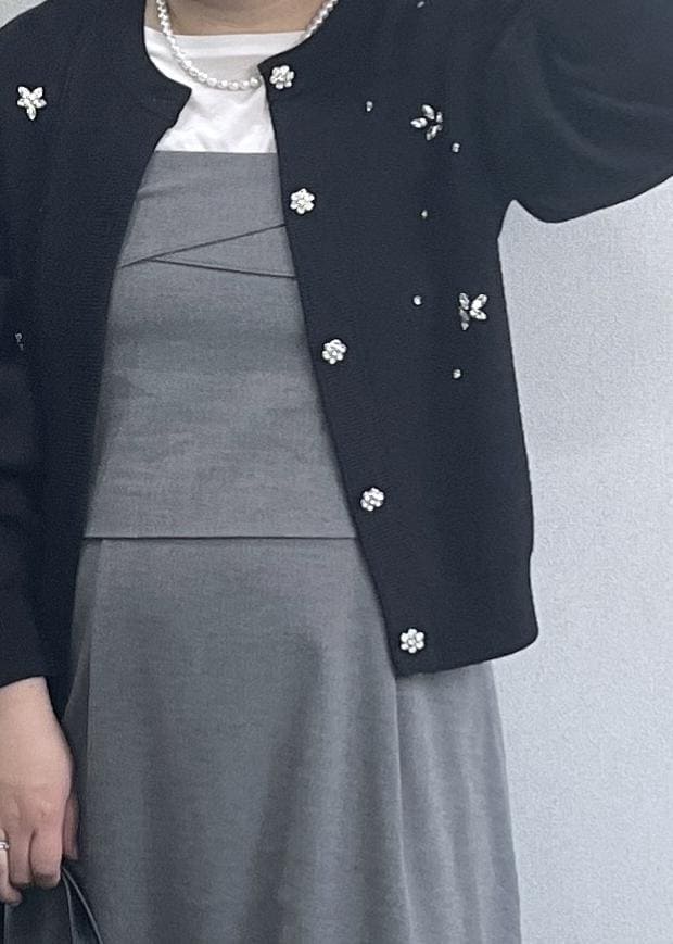 ビジューカーディガンの華やかコーデ