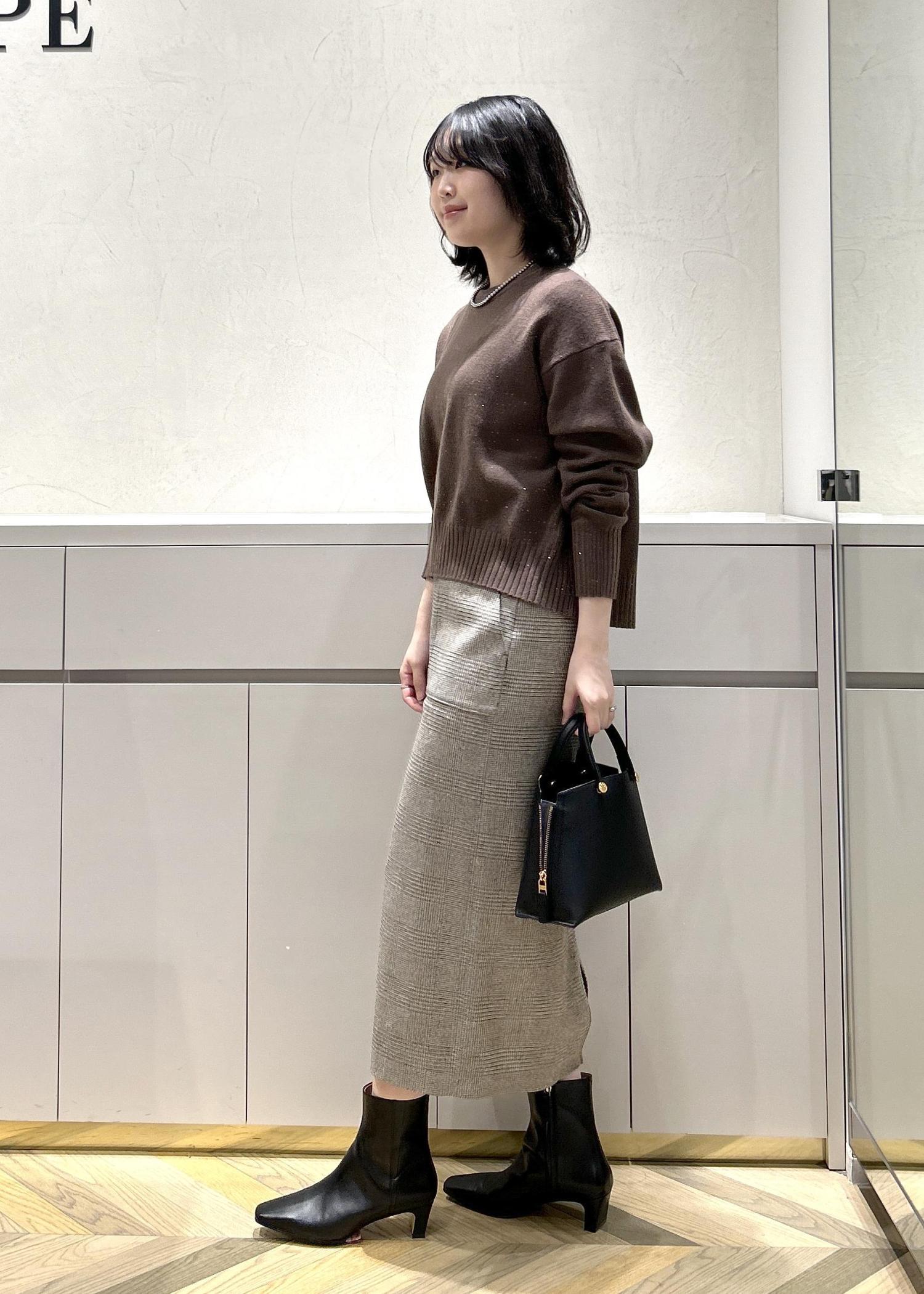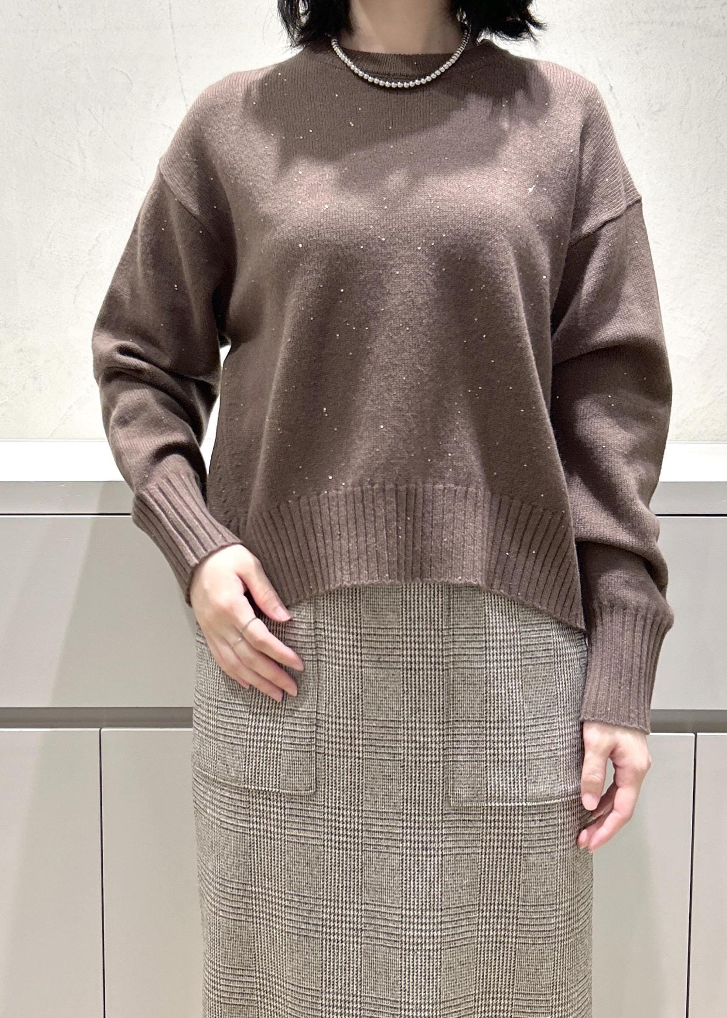 NEW!ROPÉスーパーファインメリノウールスパンコールニットブラウン / F¥25,300レビュー後ろの丈の方が長くなっていてヒップ隠れるくらいまでありました。柔らかいウールでしっかり暖かいです。身幅、袖周りにはゆとりがありました。