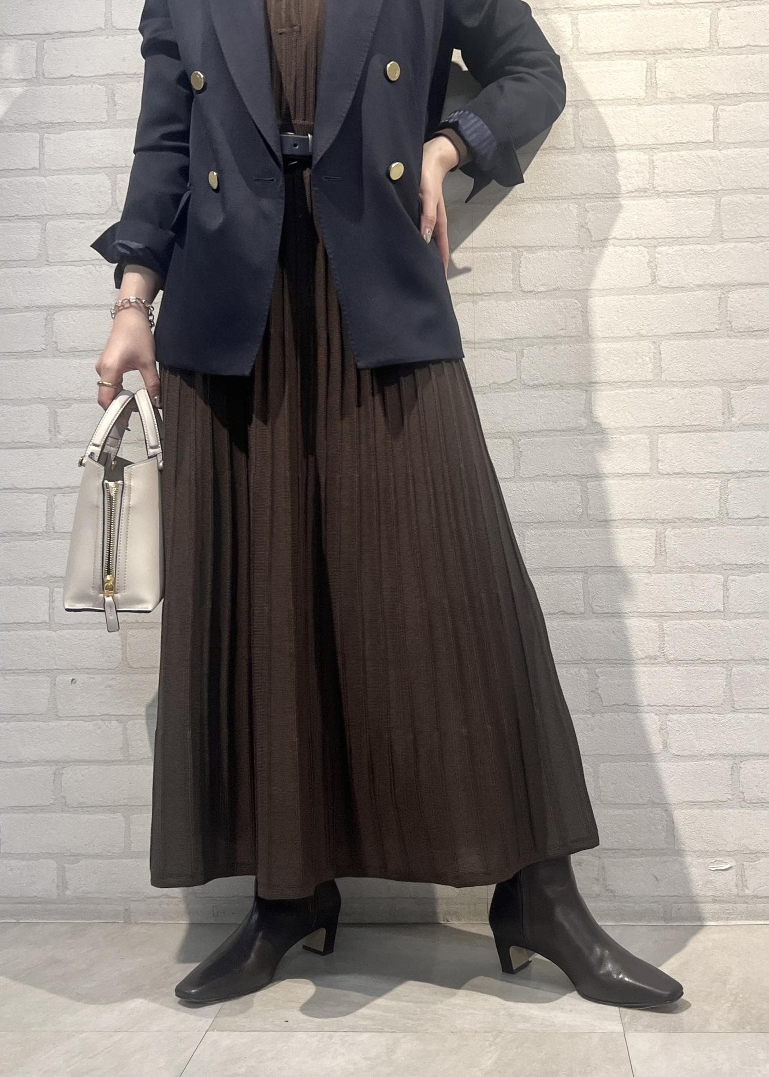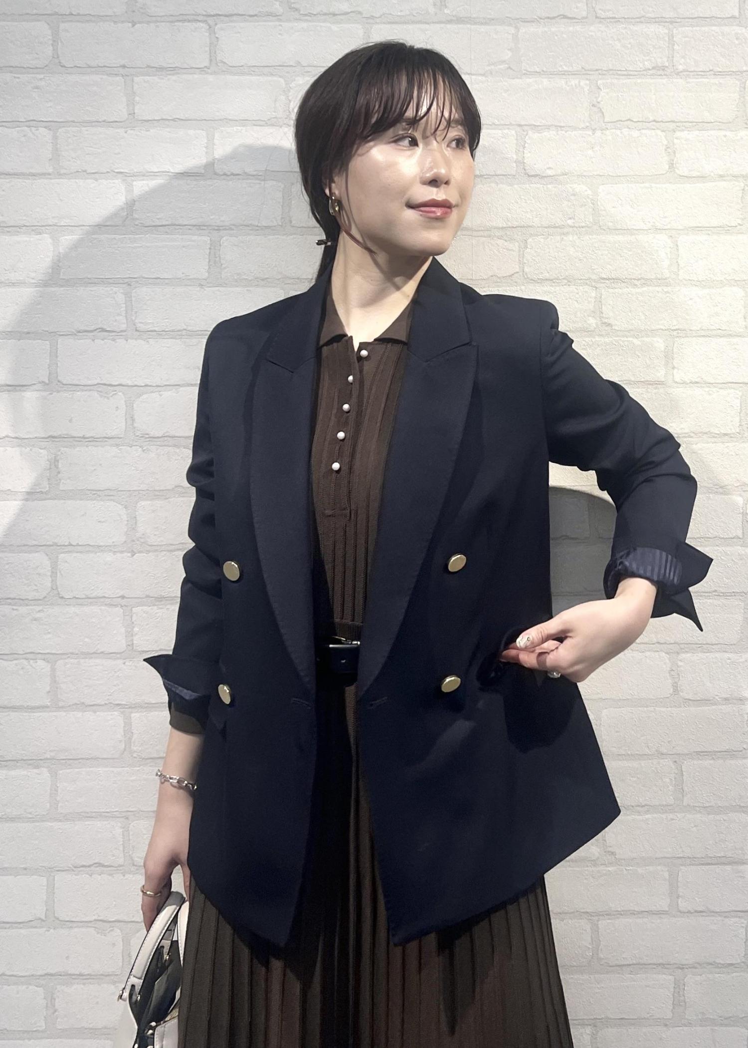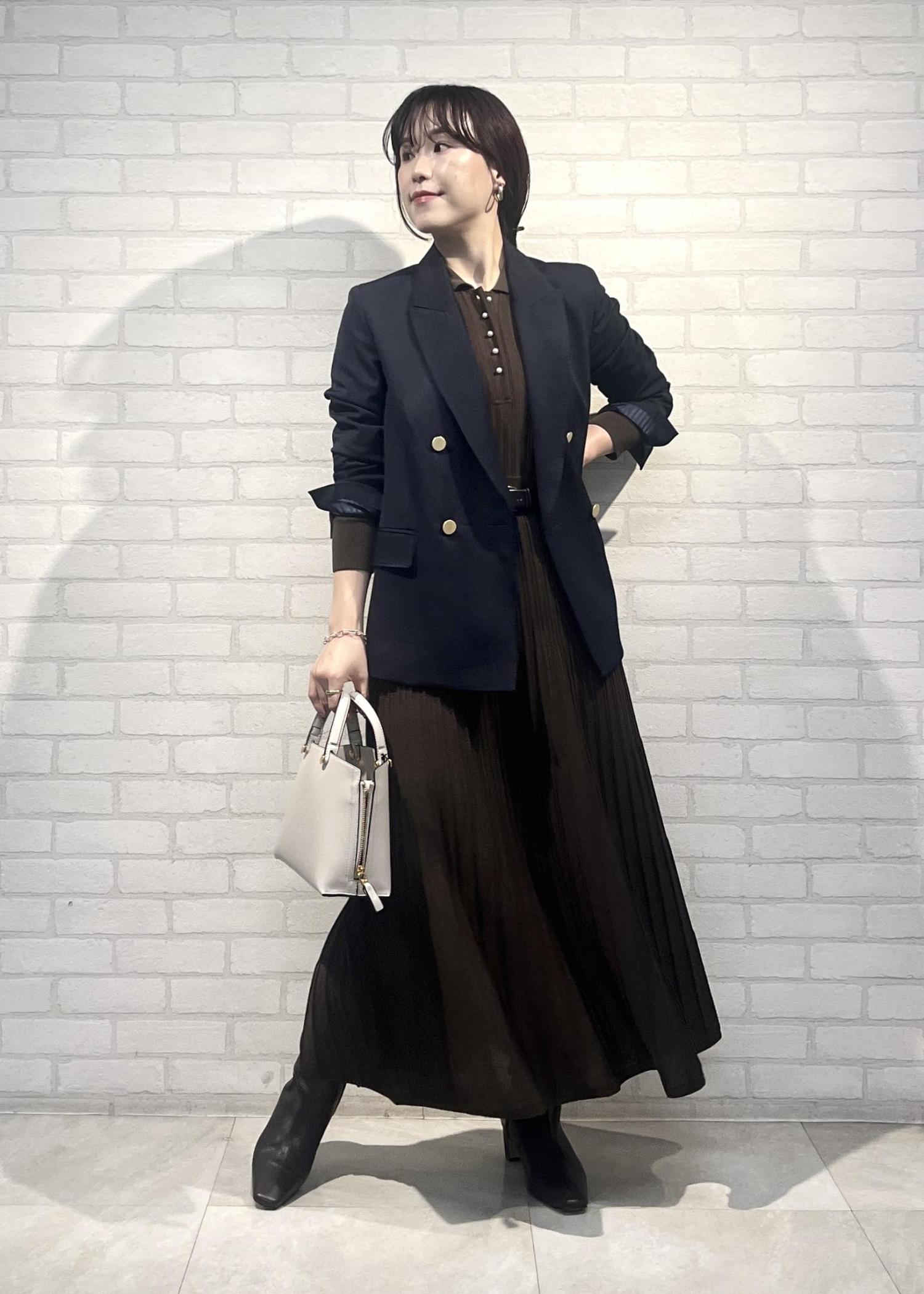 ロペで人気の紺ブレと新作のニットワンピースを合わせた
