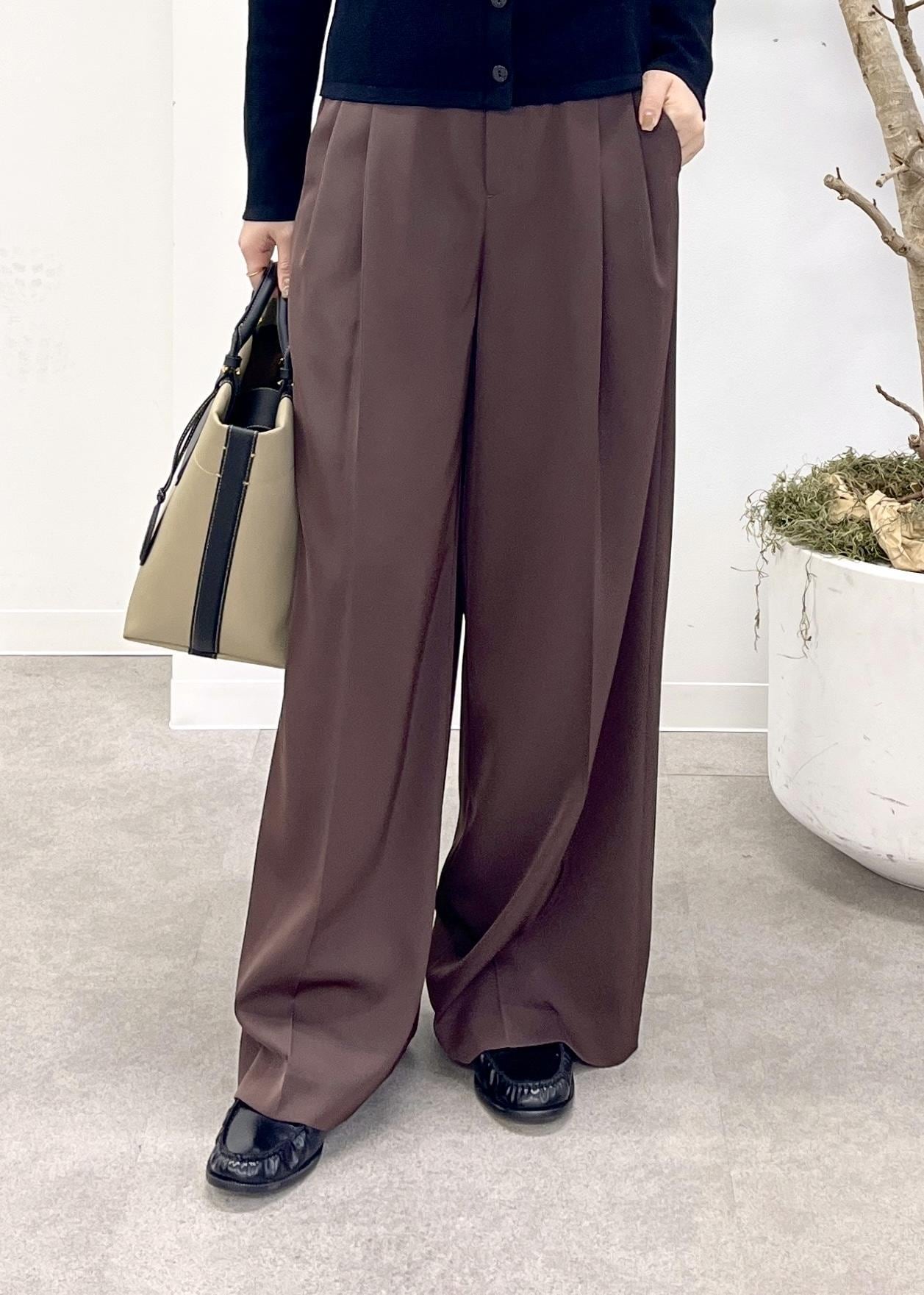 予約ROPÉイージータックワイドパンツ/セットアップ対応ダークブラウン / 36¥25,300レビューサンプルの38サイズを着用しています。