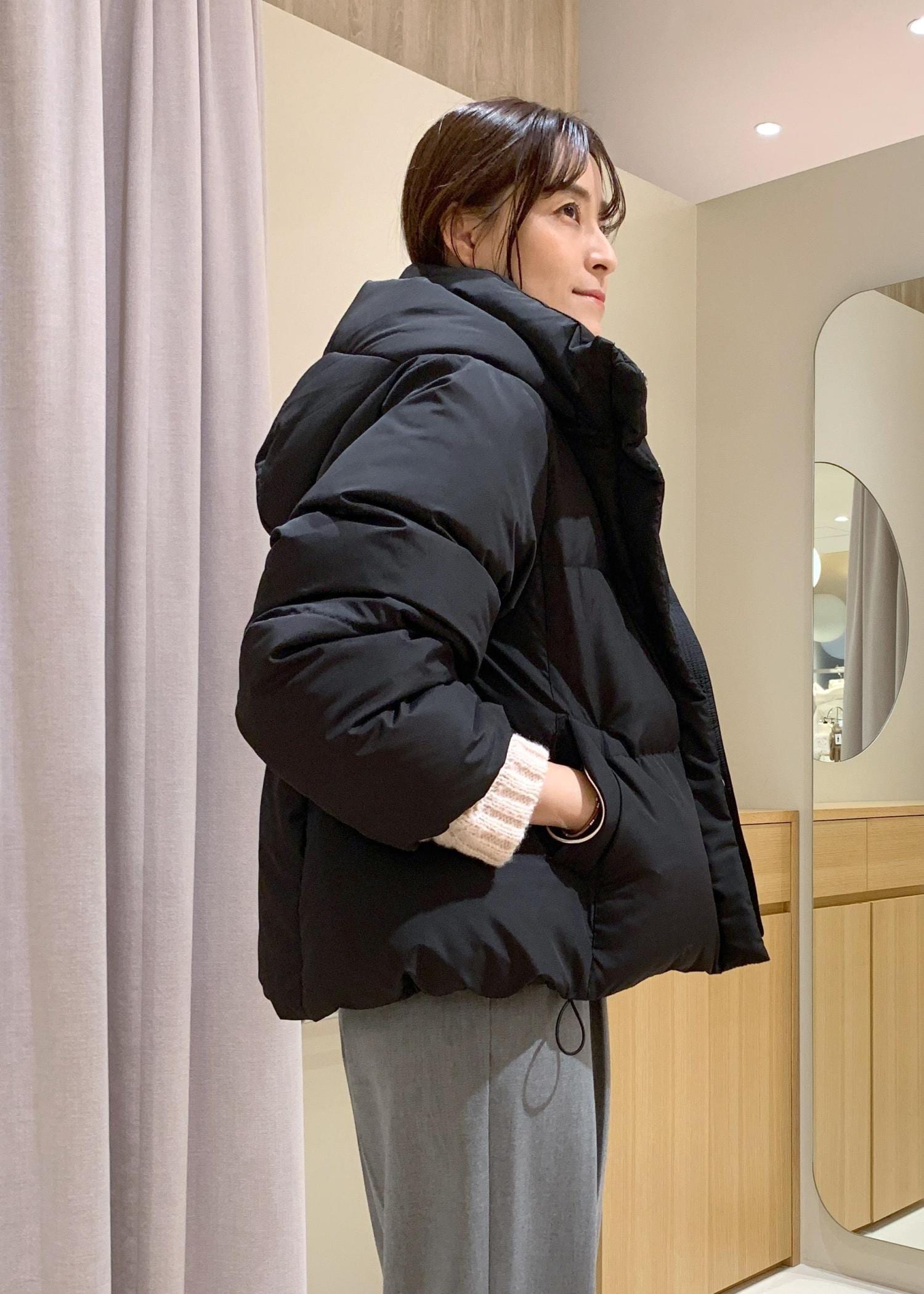 フード付きですし、スタンドネックなのでマフラーいらずでお出かけできますよ。