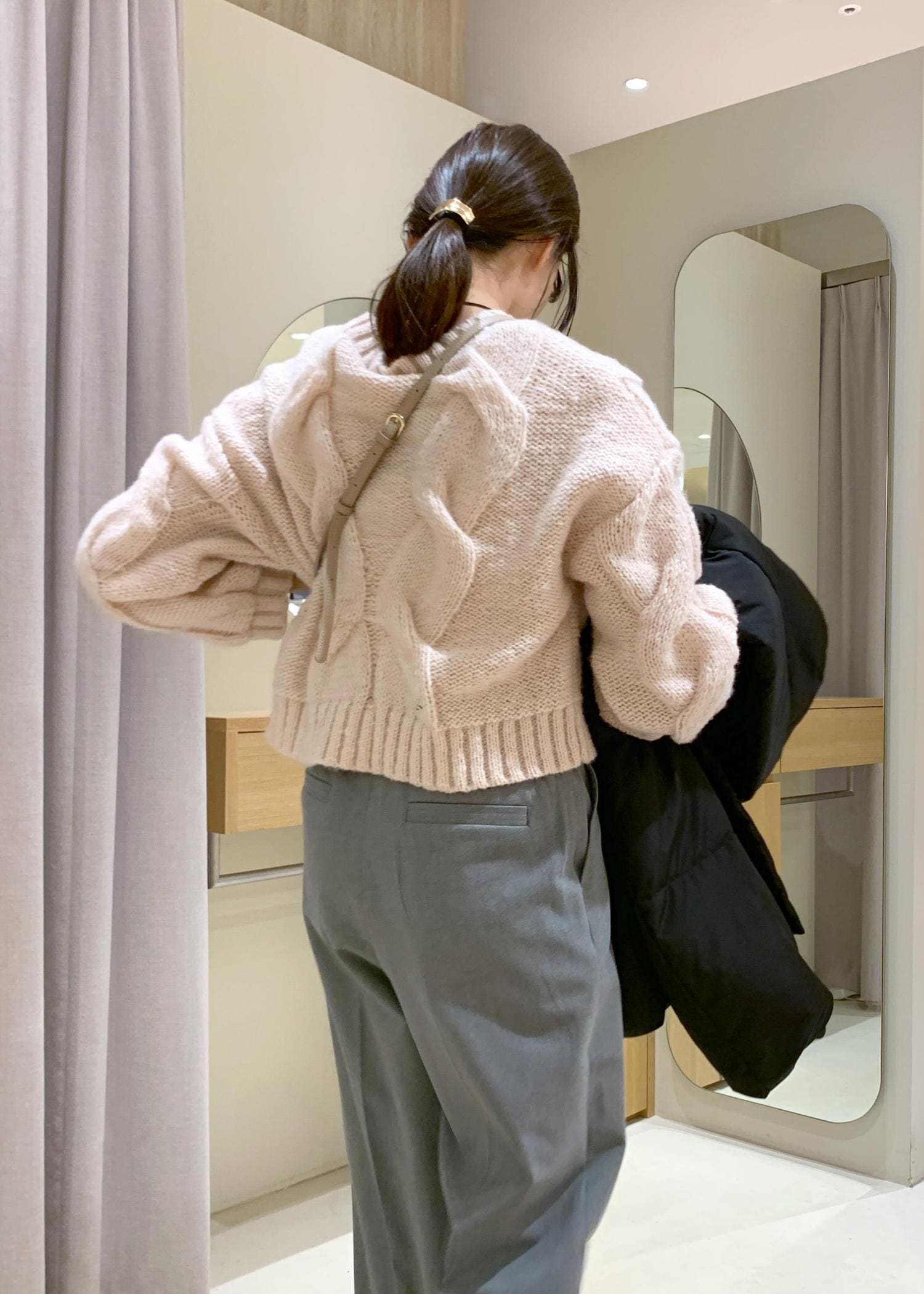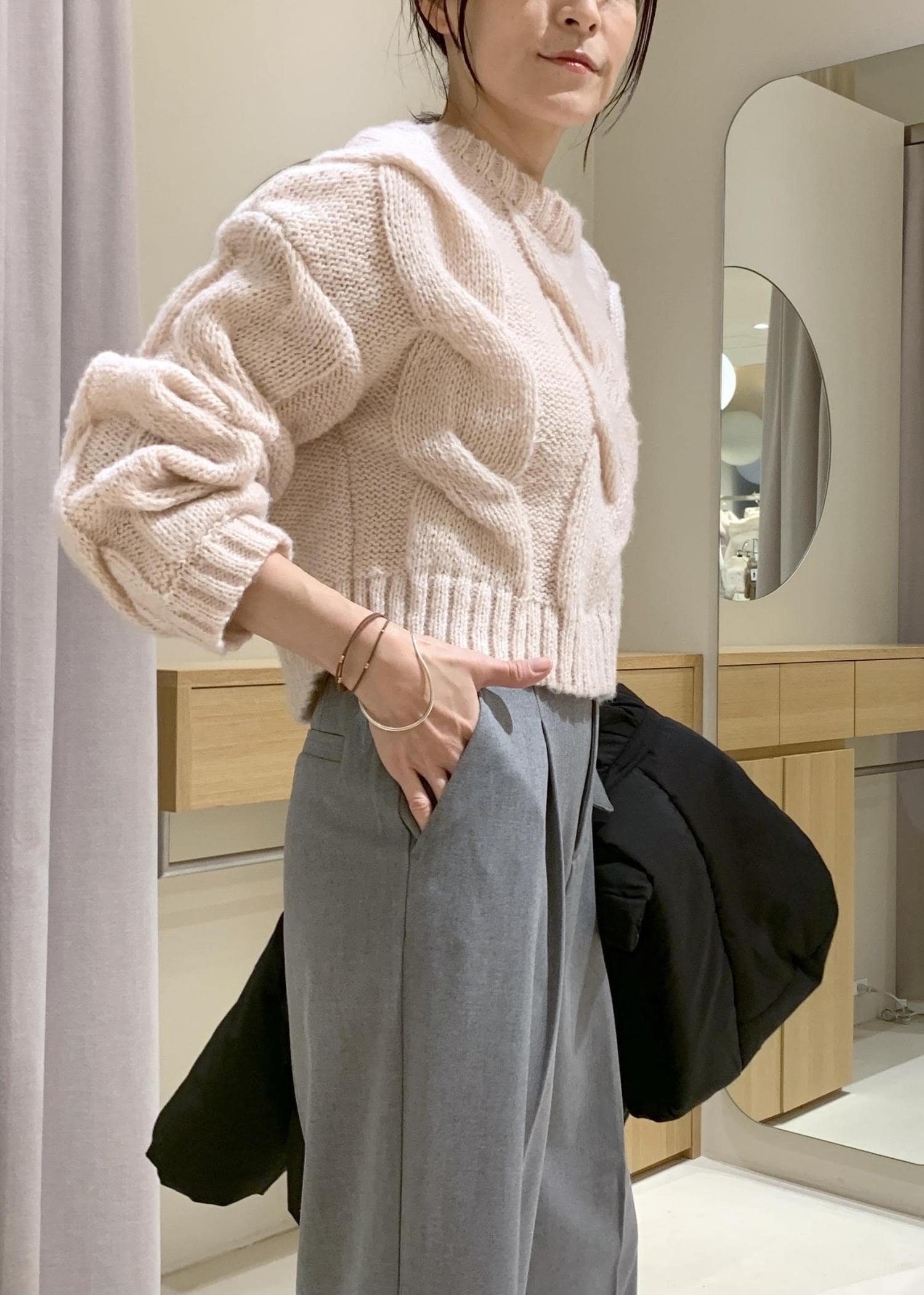 首周りは詰まりすぎていないので、タートルやシャツを重ねても嵩張らないです。 -