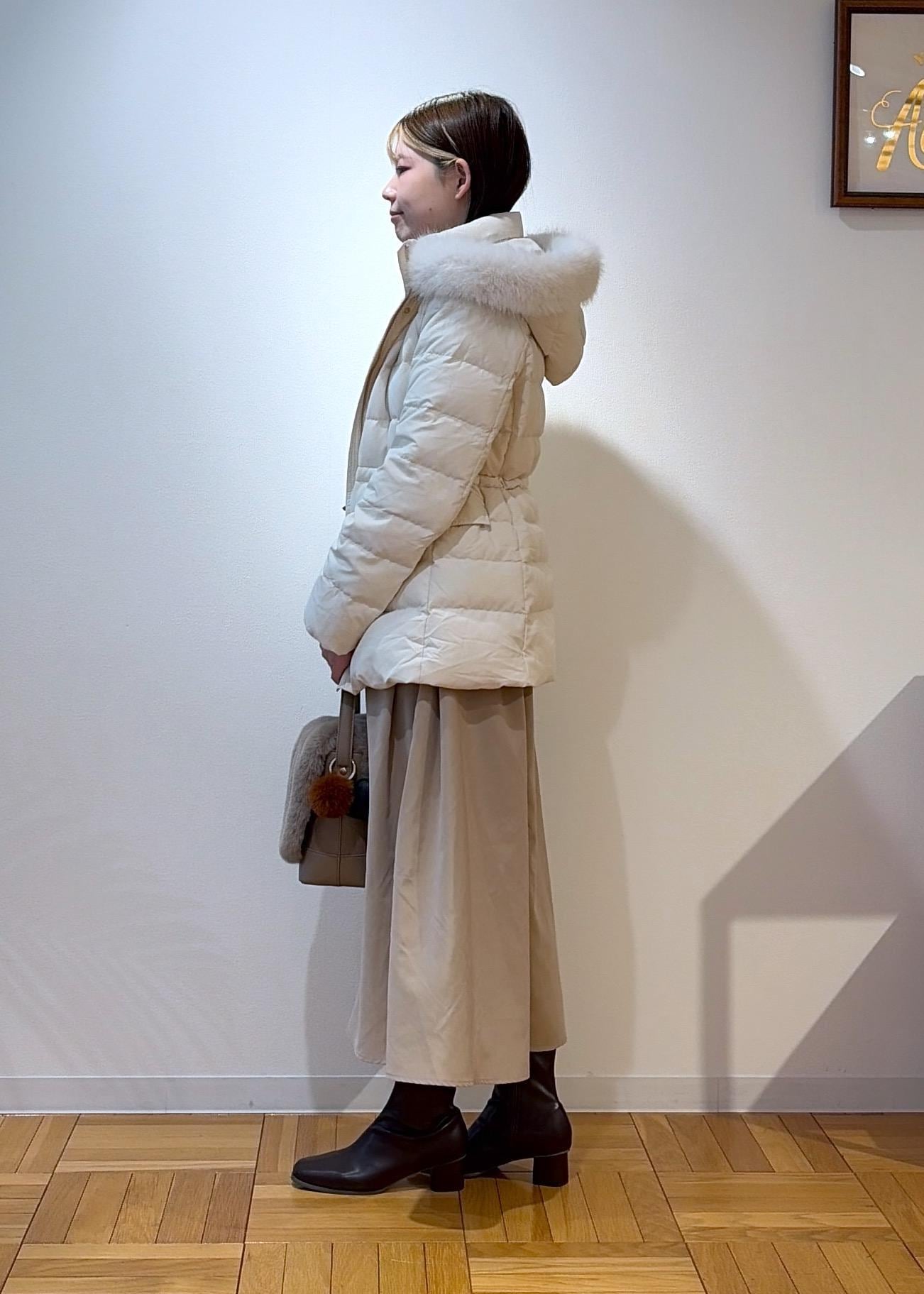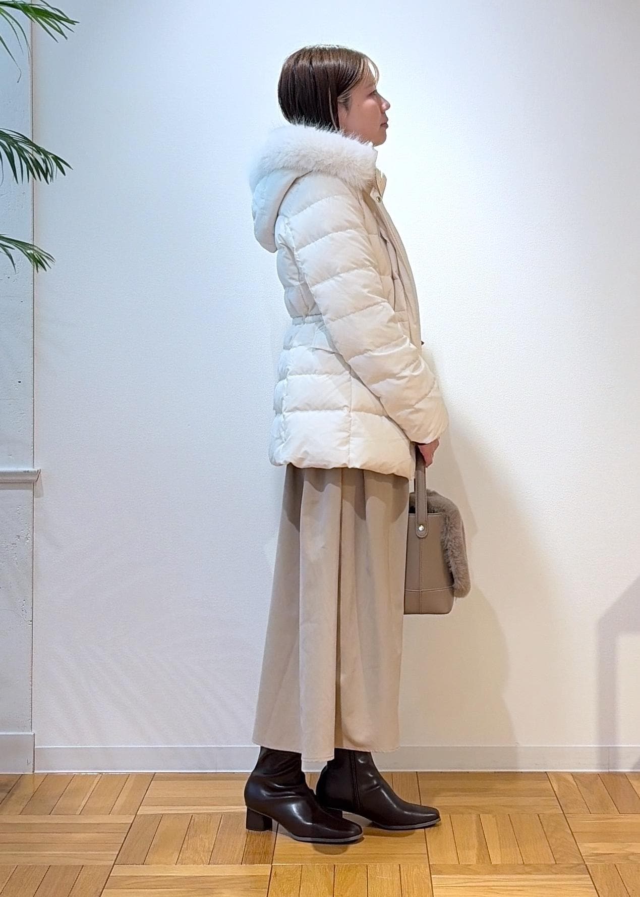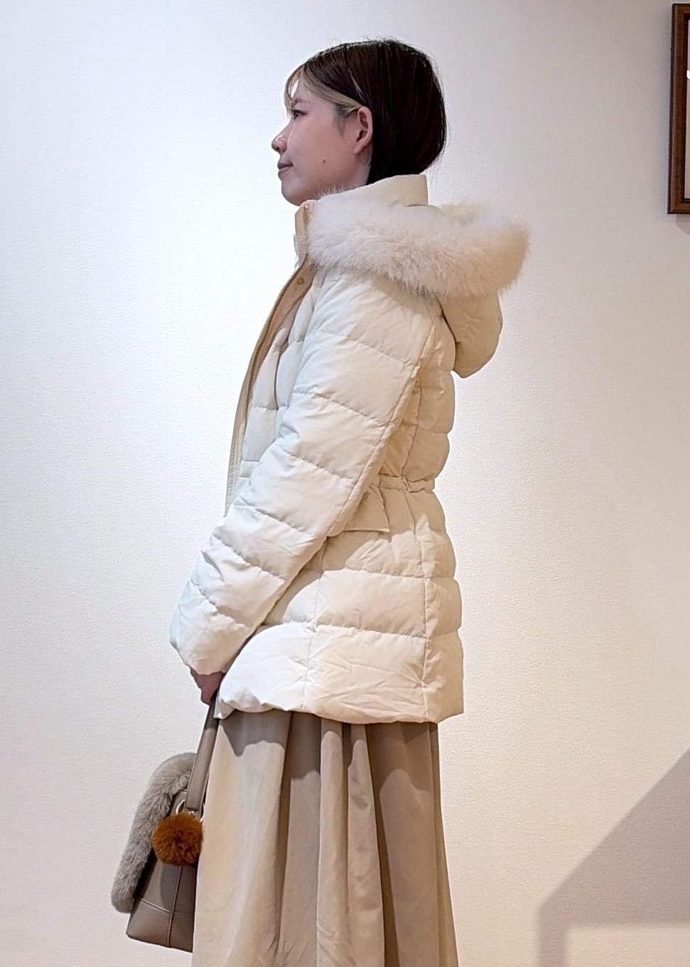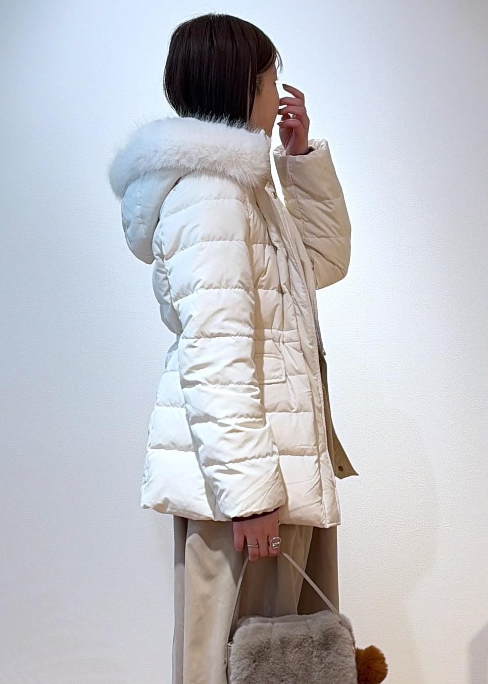 ROPÉ PICNIC【GREEN DOWN/グリーンダウン】ファー付きダウンミドル丈コート/リンクコーデオフホワイト / M¥18,700レビュー軽い羽織り心地で、外時間も安心の暖かさです◎
