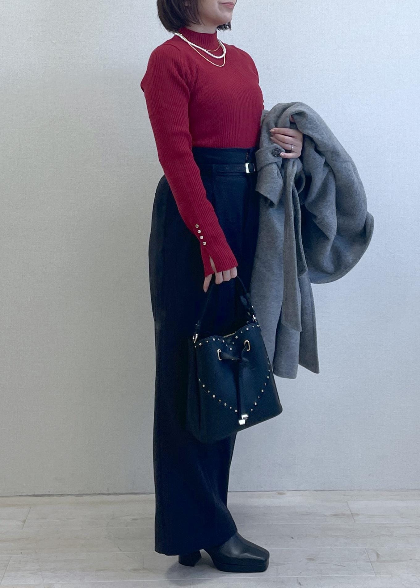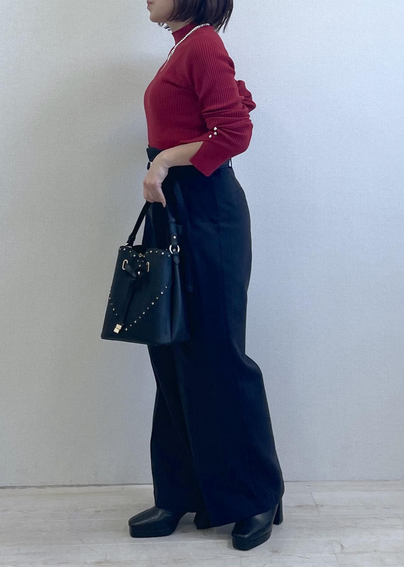 NEW!VISスリーブ釦アクセントリブニット/WEB限定FSサイズ・静電気防止レッド / F¥4,389レビュー150cmでFサイズ着用です。