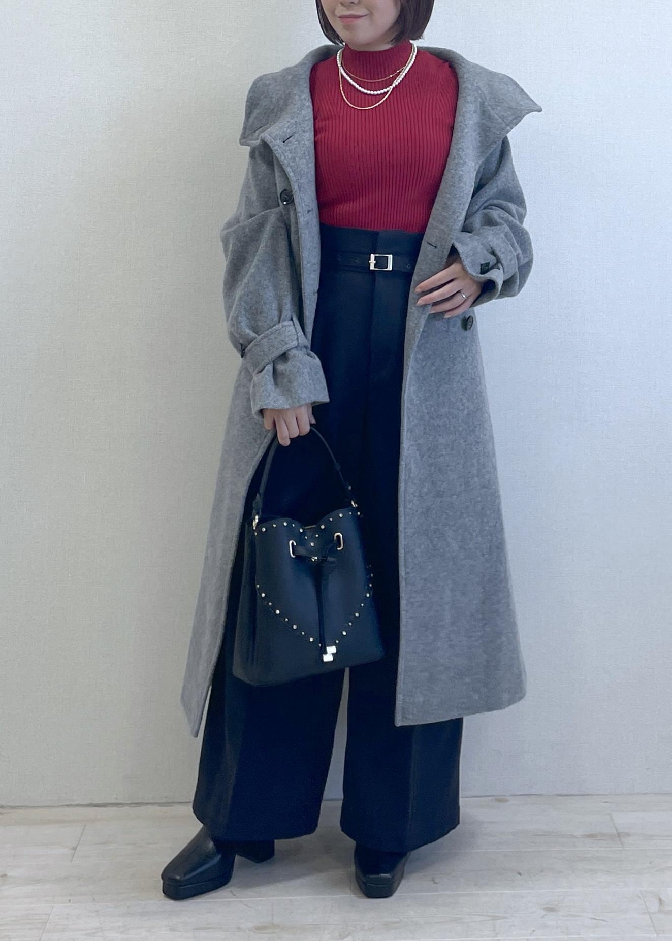 VIS尾州シャギースタンドカラーロングコート/静電気防止・WEB限定PS・TMサイズグレー系 / S¥21,890レビュー150cmでSサイズ着用です。