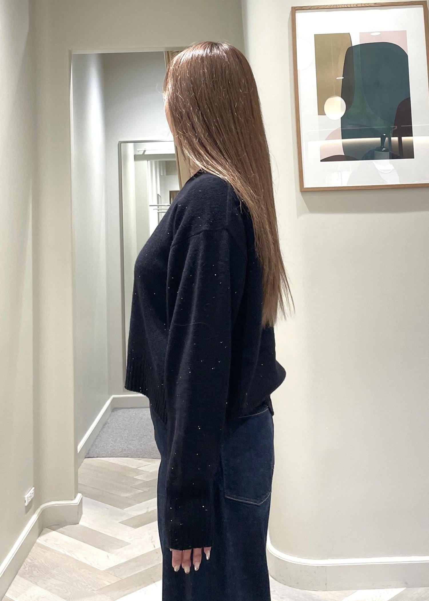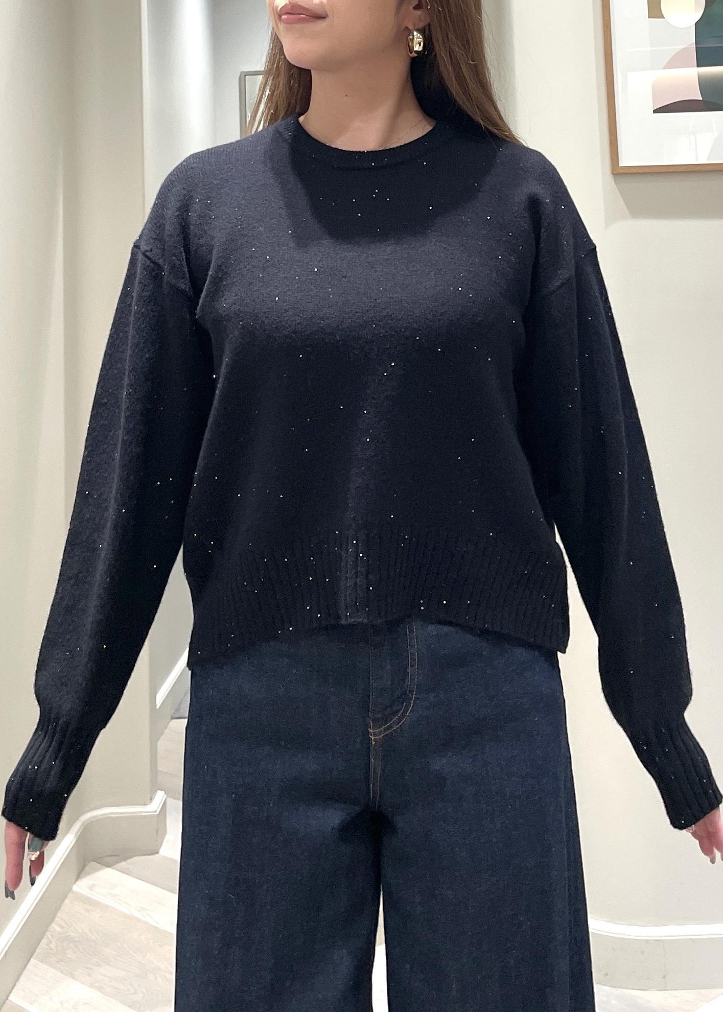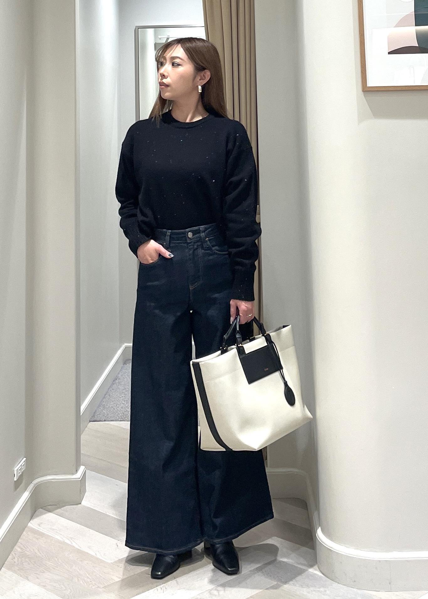NEW!ROPÉスーパーファインメリノウールスパンコールニットブラック / F¥25,300レビュー着丈は、160cmが着用で前はおへそ辺り。