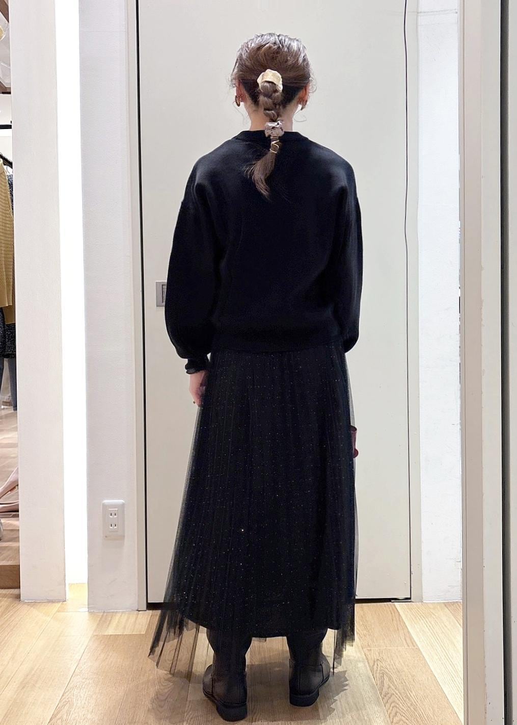 チュールもプリーツ加工が施してあり広がりにくいので甘くなりすぎず、大人っぽく着こなせるところが気に入っています。