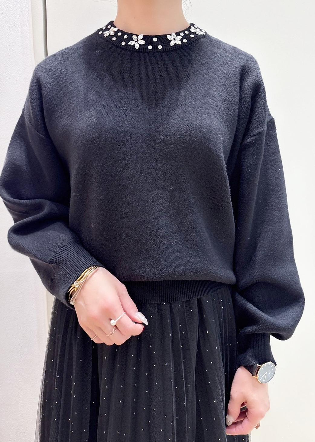 今季トレンドのビジューがキラキラ輝く可愛いニットです。