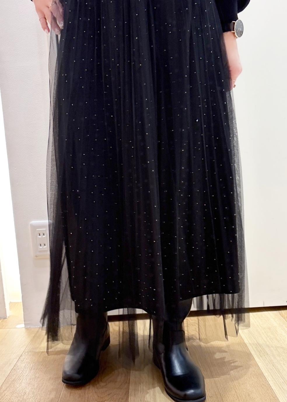 ROPÉ PICNICキラキラチュールプリーツスカート/着丈が選べるブラック / MT¥6,490レビュー身長:157cm