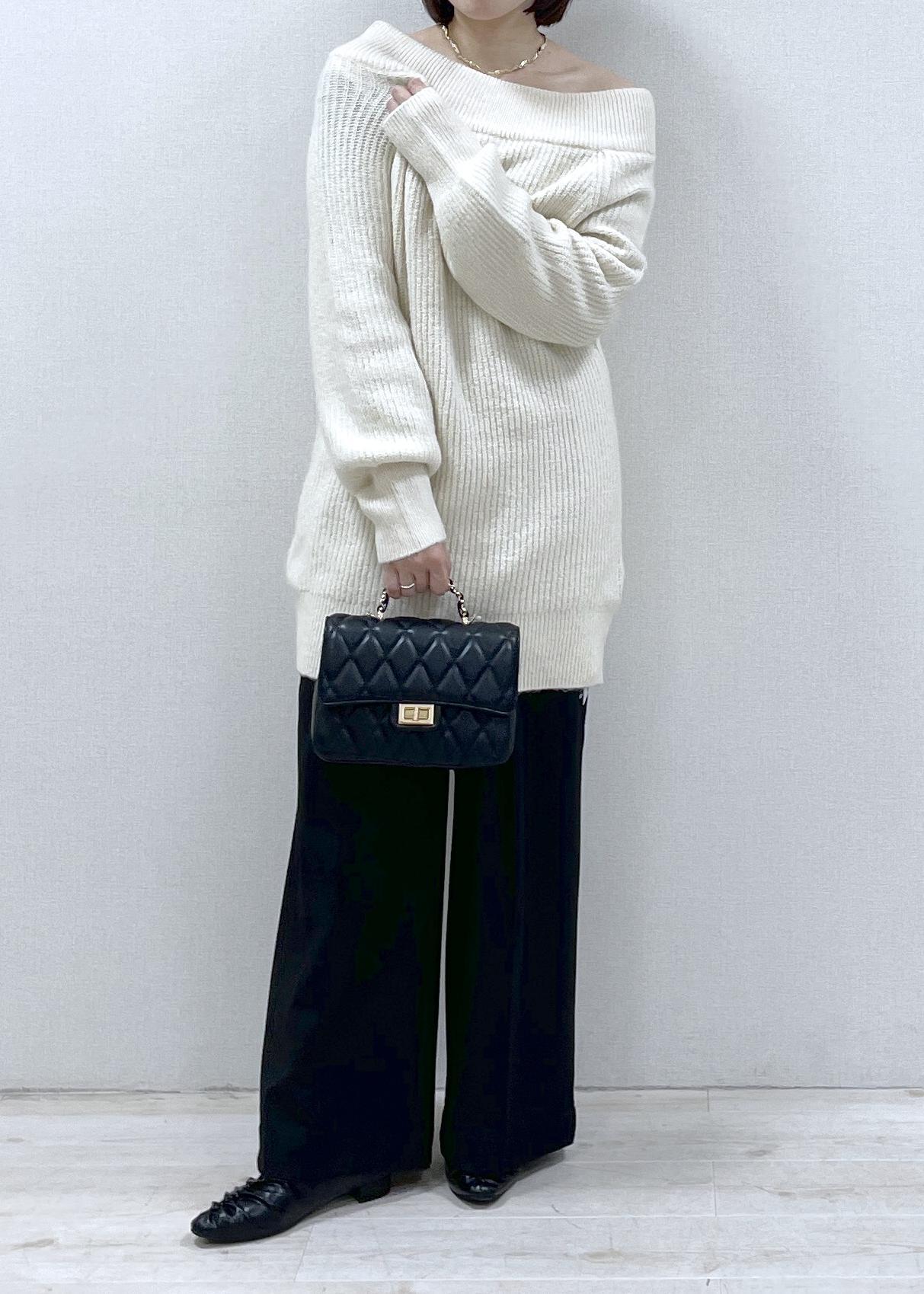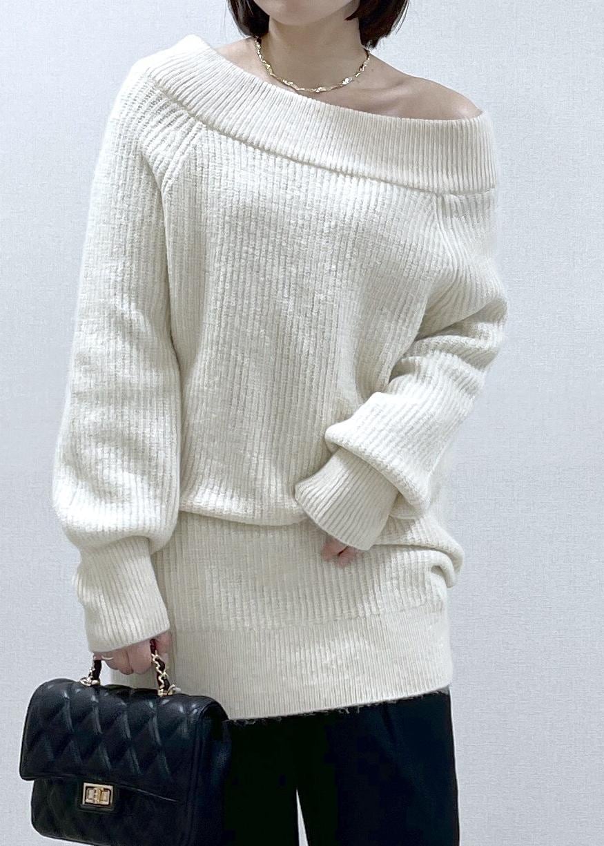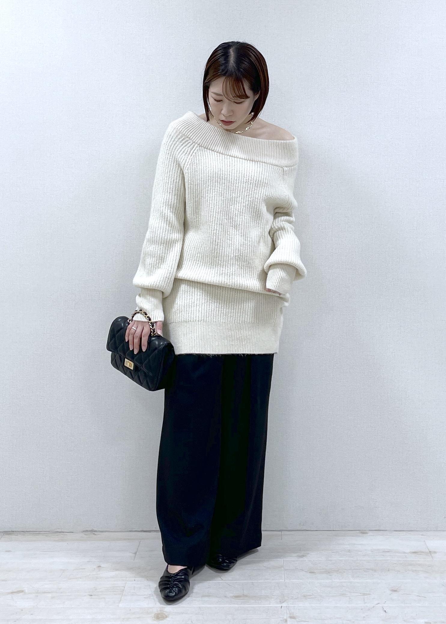 パンツやスカートを下に重ねて、チュニック丈のニットとしても着用できます。 -