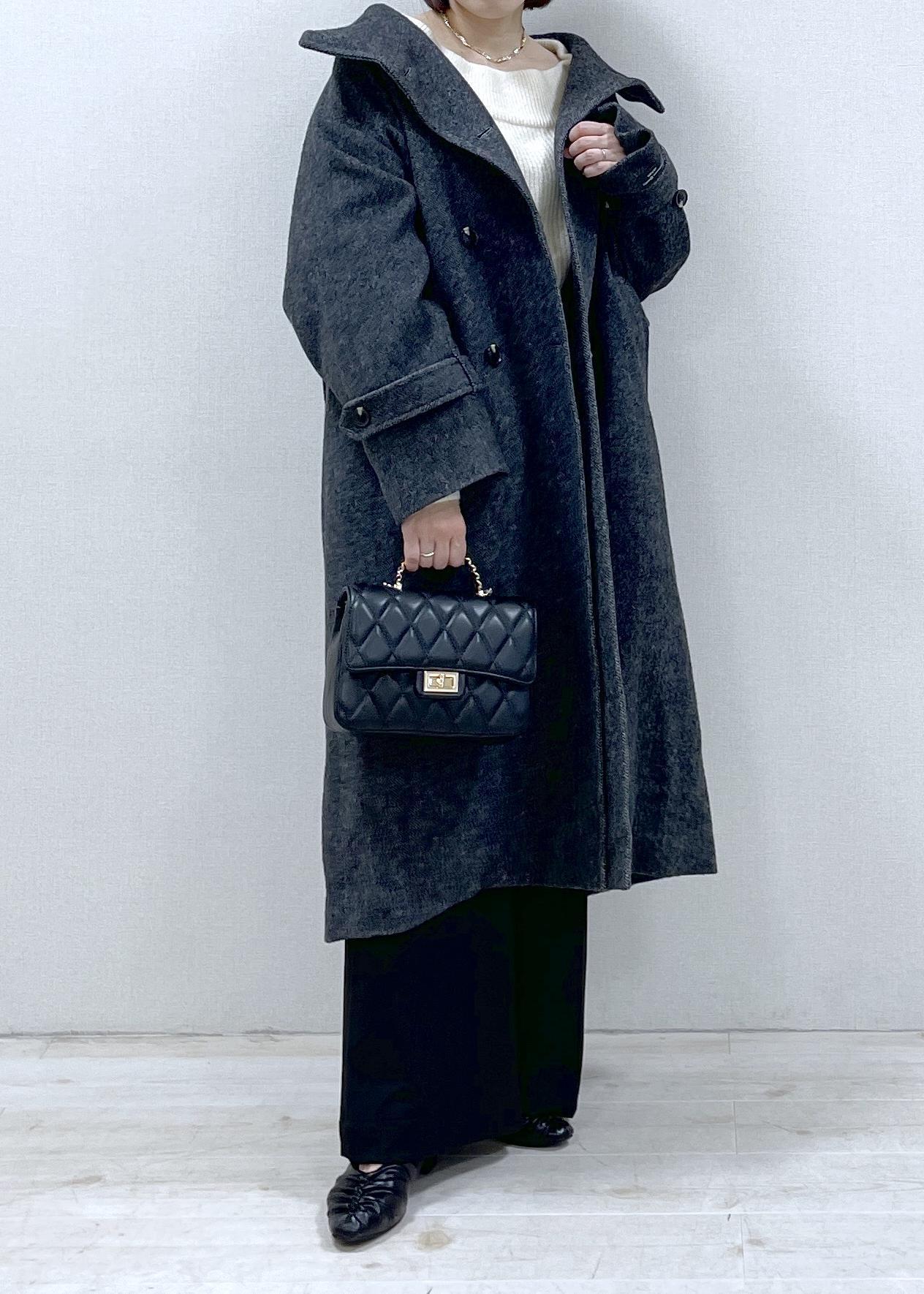 スタンドカラーにもなるので、マフラーいらず、大きめな襟は小顔効果もあります◎ -